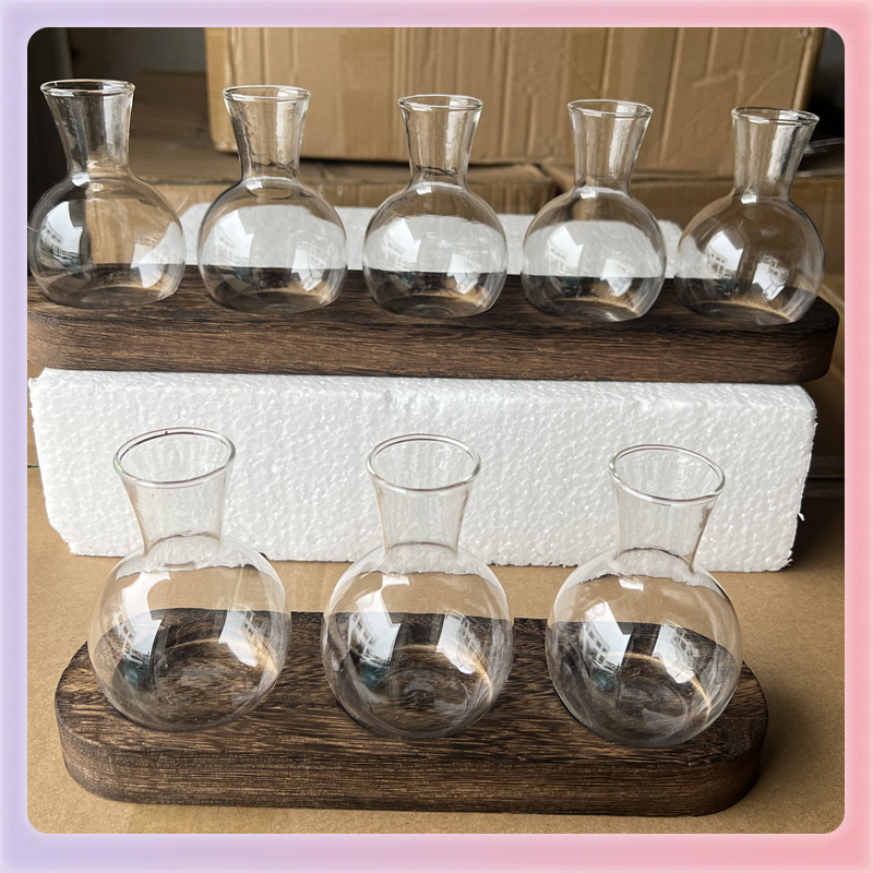 ✅창조적 인 물 올리는 녹색 장미 식물 꽃병 나무베이스 수경 투명 유리 꽃 ware 사무실 거실 데스크탑 진자