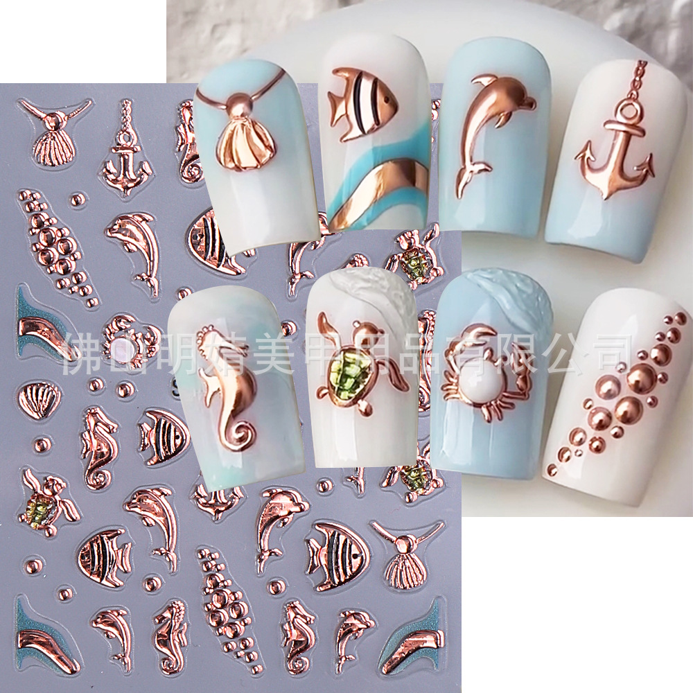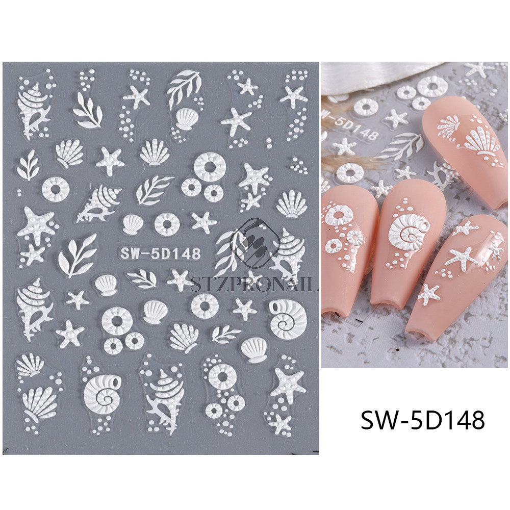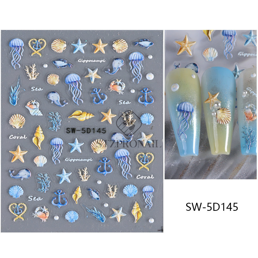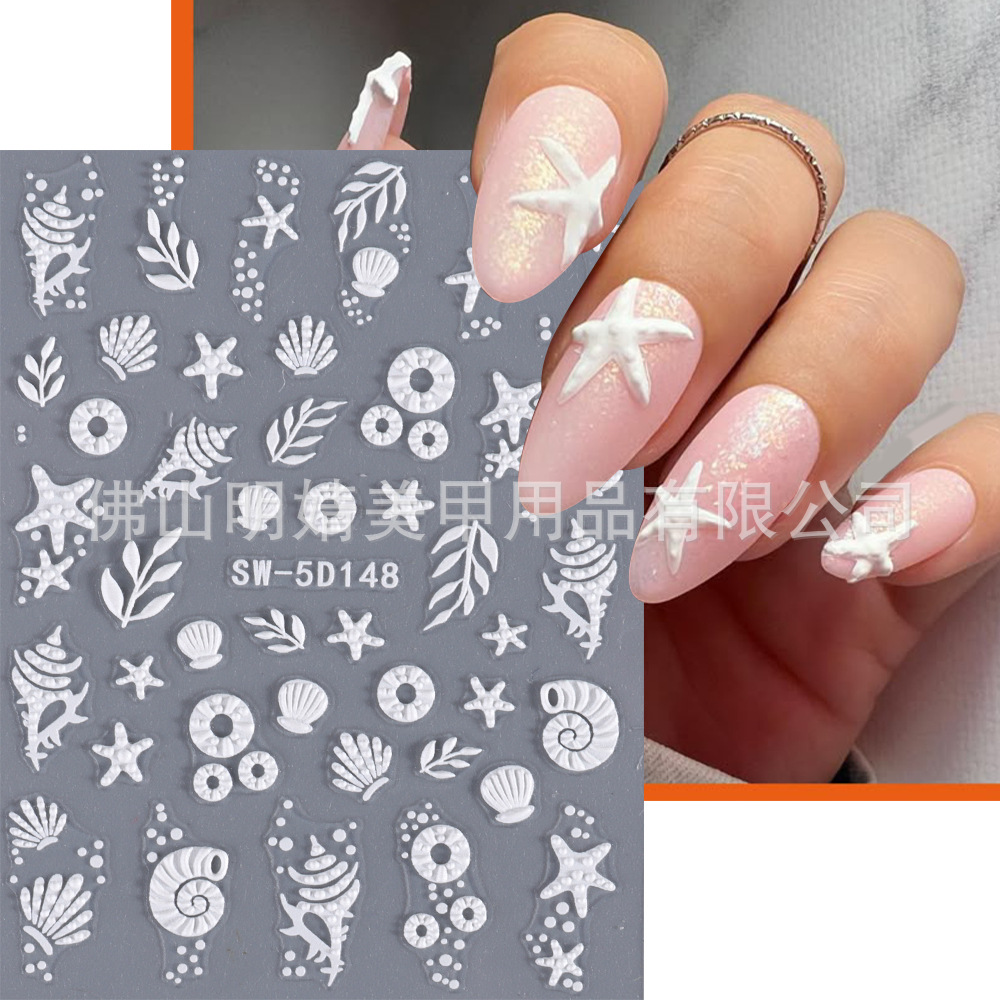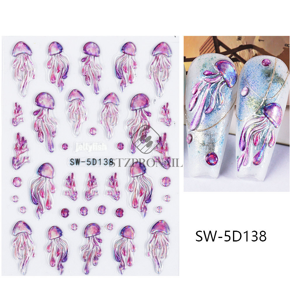 새로운 양각 네일 아트 스티커 여름 3 차원 바다 껍질 해파리 5D 국경 못 스티커