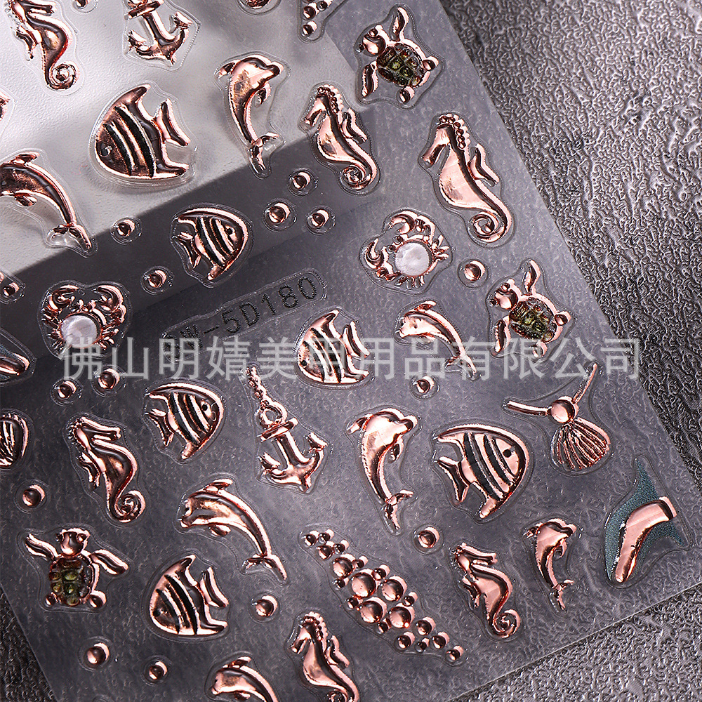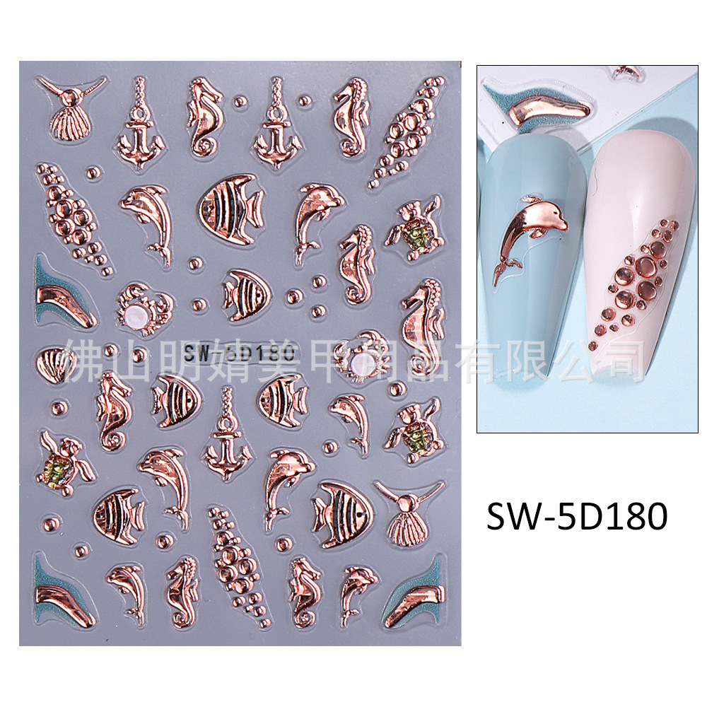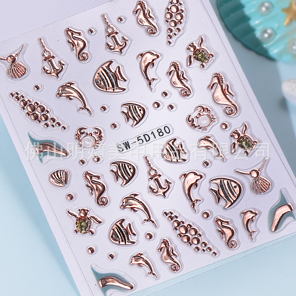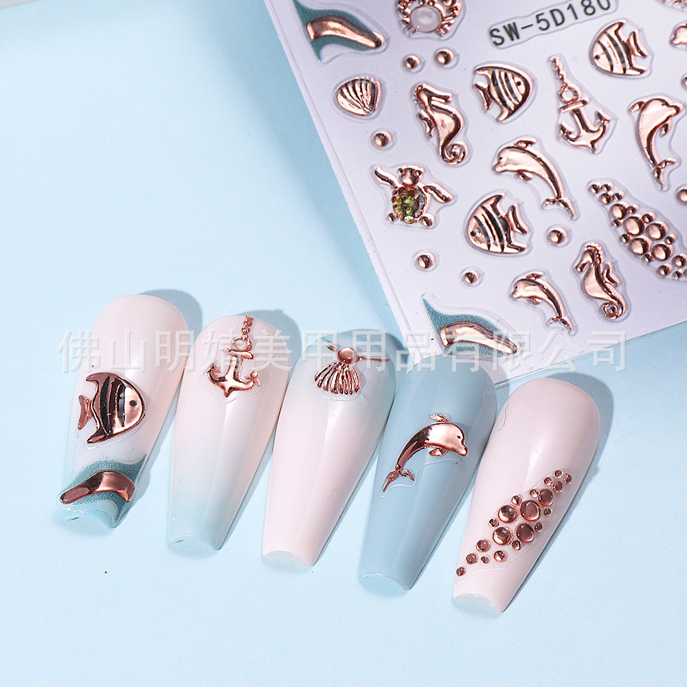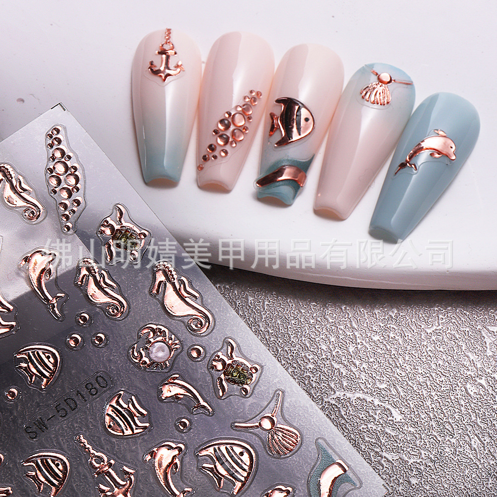새로운 양각 네일 아트 스티커 여름 3 차원 바다 껍질 해파리 5D 국경 못 스티커