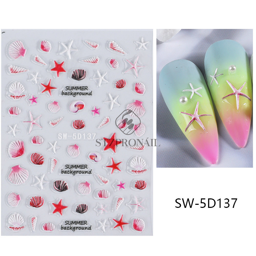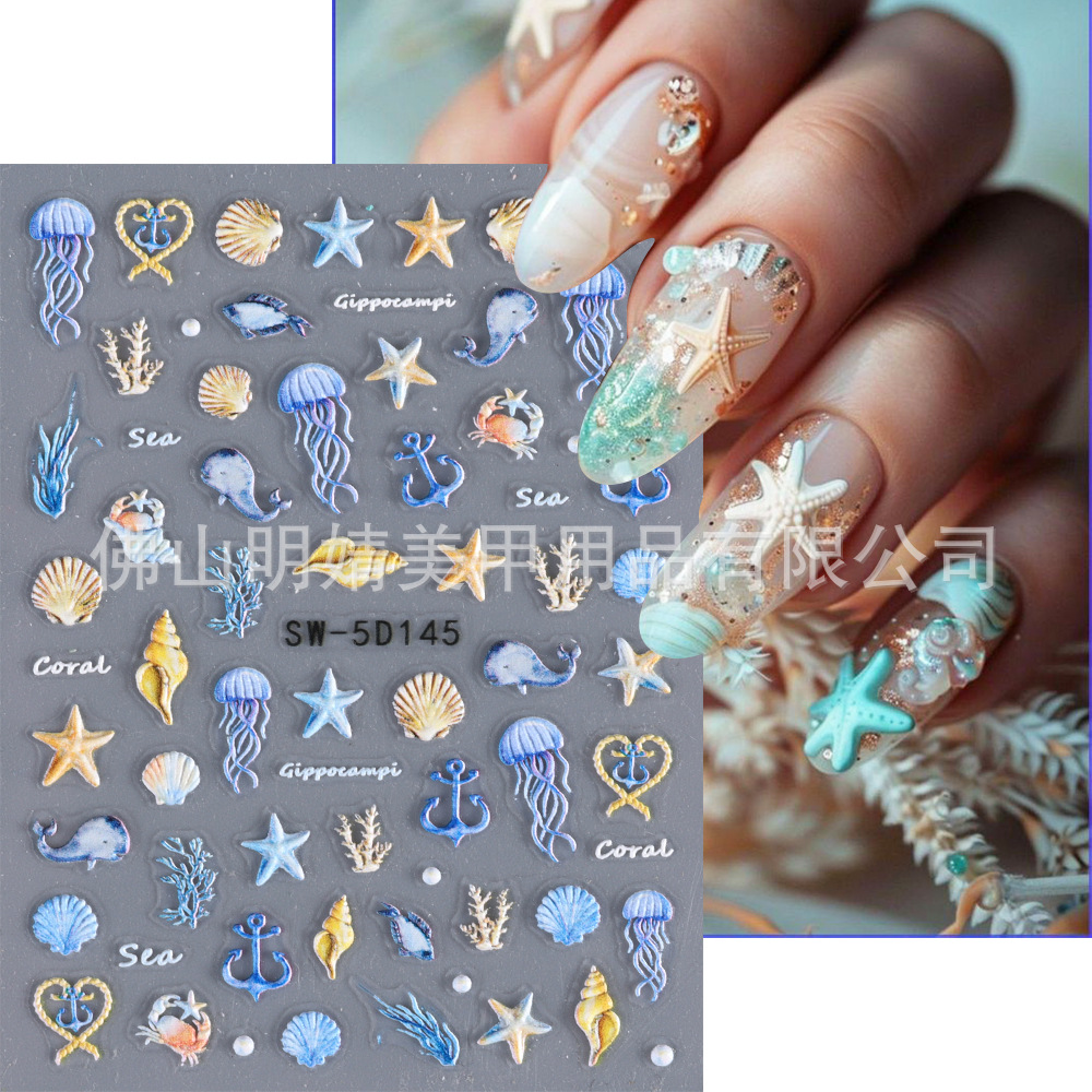 새로운 양각 네일 아트 스티커 여름 3 차원 바다 껍질 해파리 5D 국경 못 스티커스토어 가기