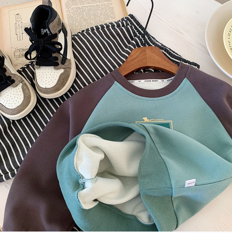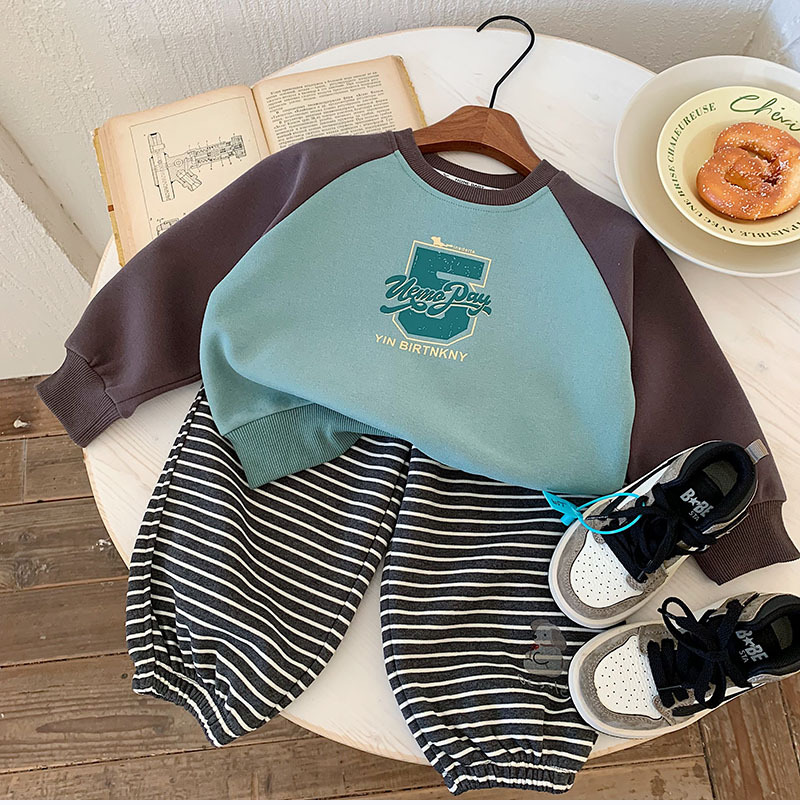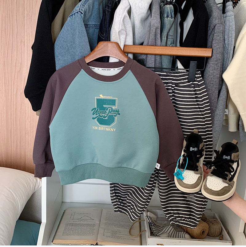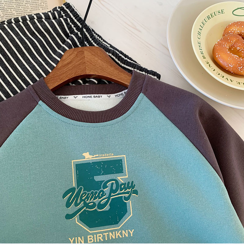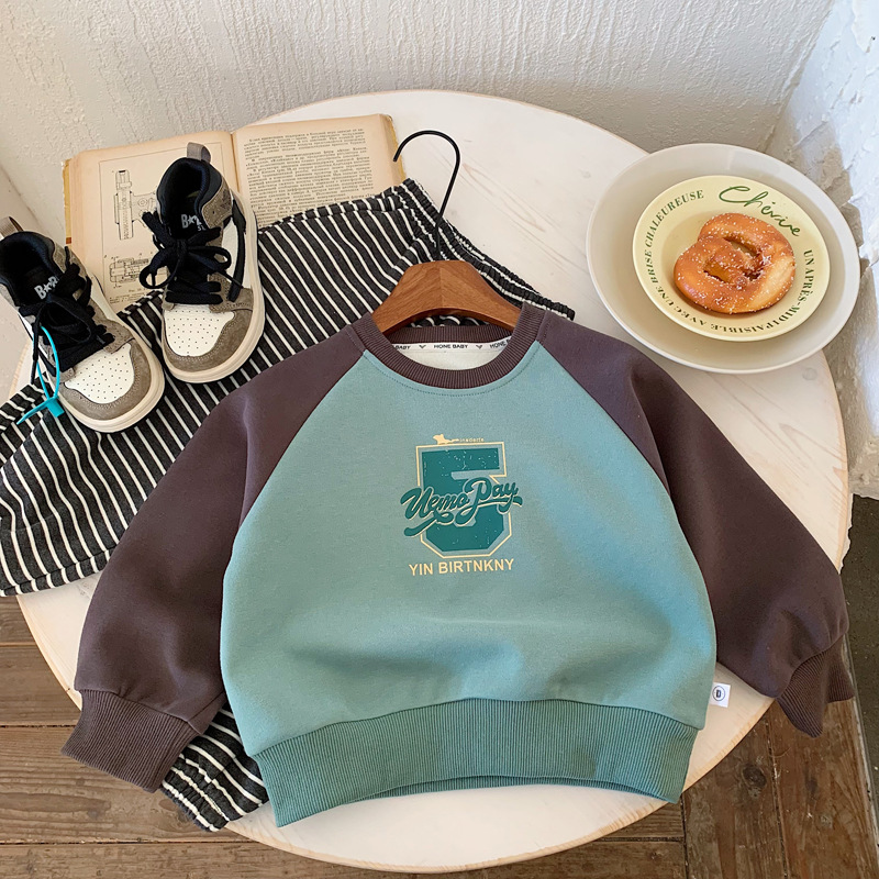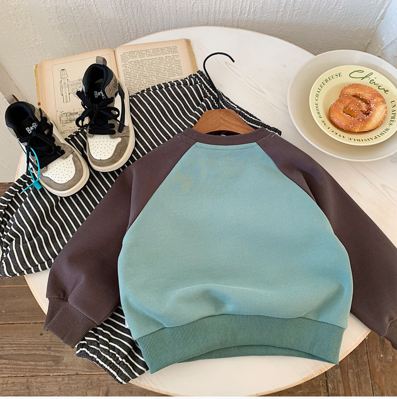 소년 소녀 캐주얼 스웨터 2025 봄 새로운 어린이 분할 슬리브 컬러 대비 캐주얼 올 매치 패션 풀오버 탑