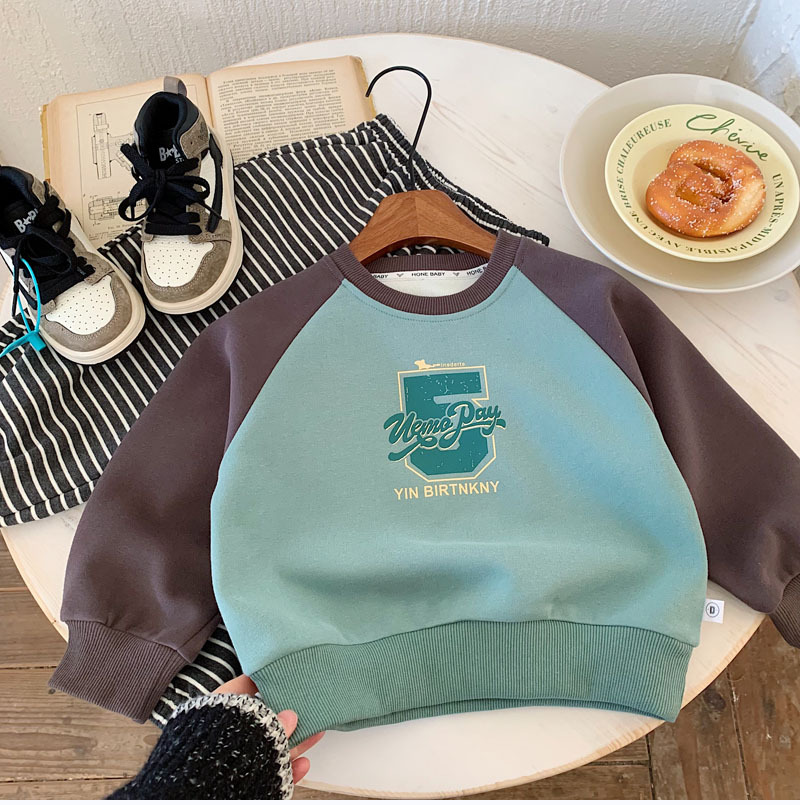 소년 소녀 캐주얼 스웨터 2025 봄 새로운 어린이 분할 슬리브 컬러 대비 캐주얼 올 매치 패션 풀오버 탑스토어 가기