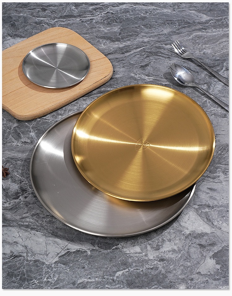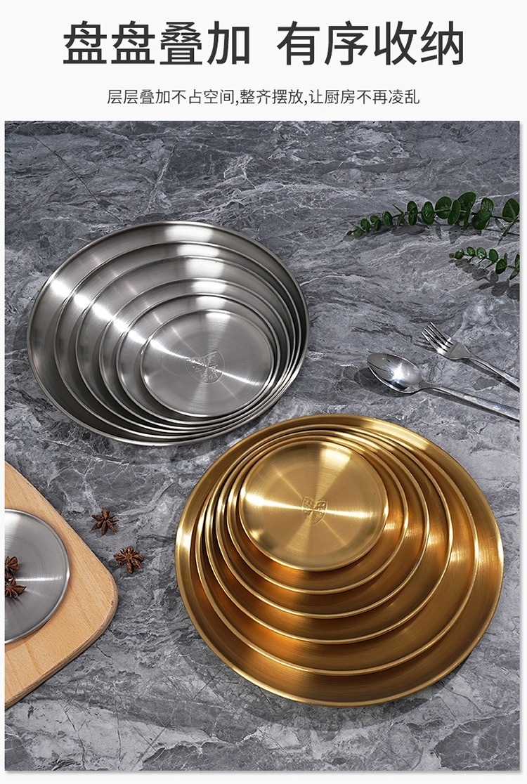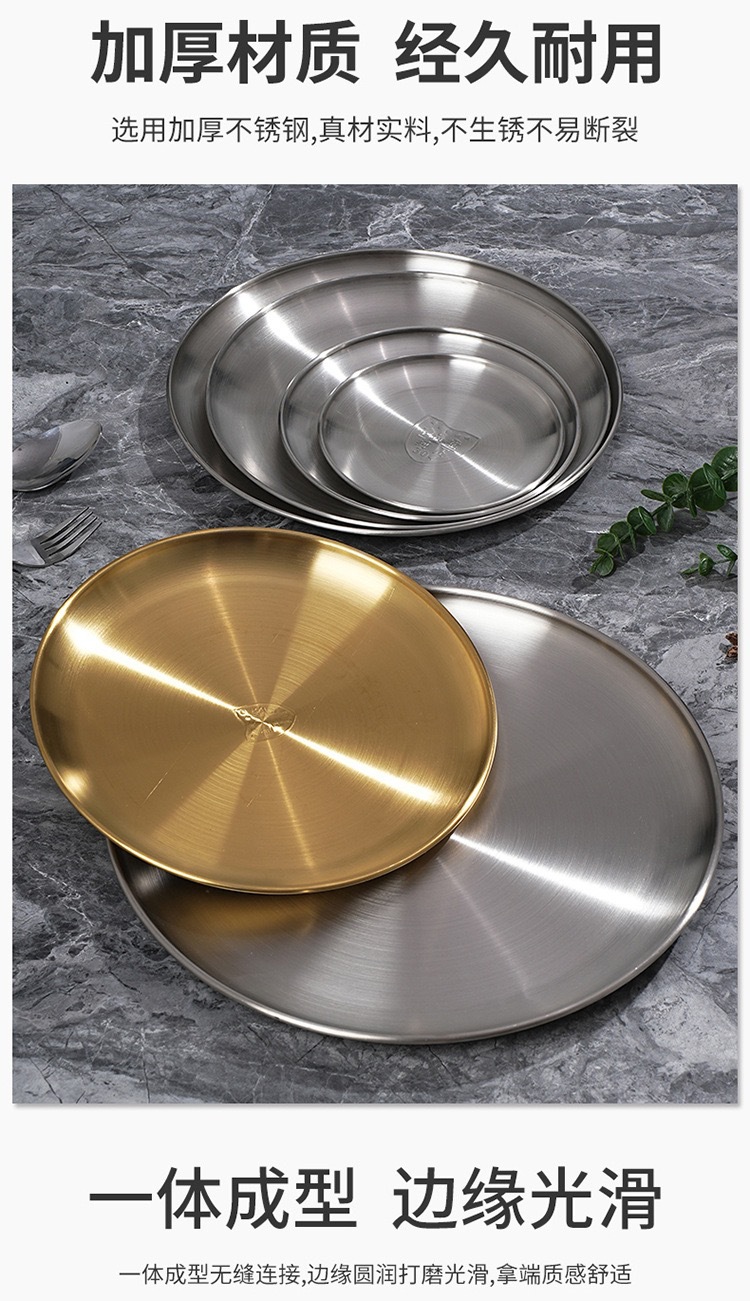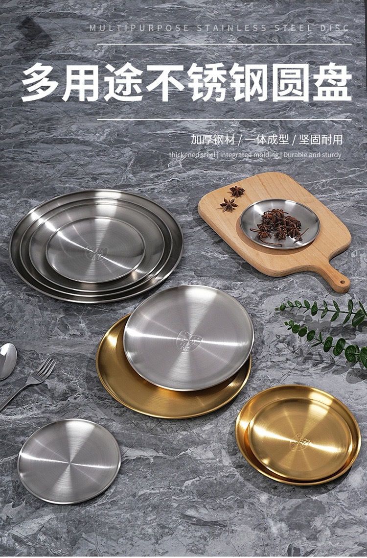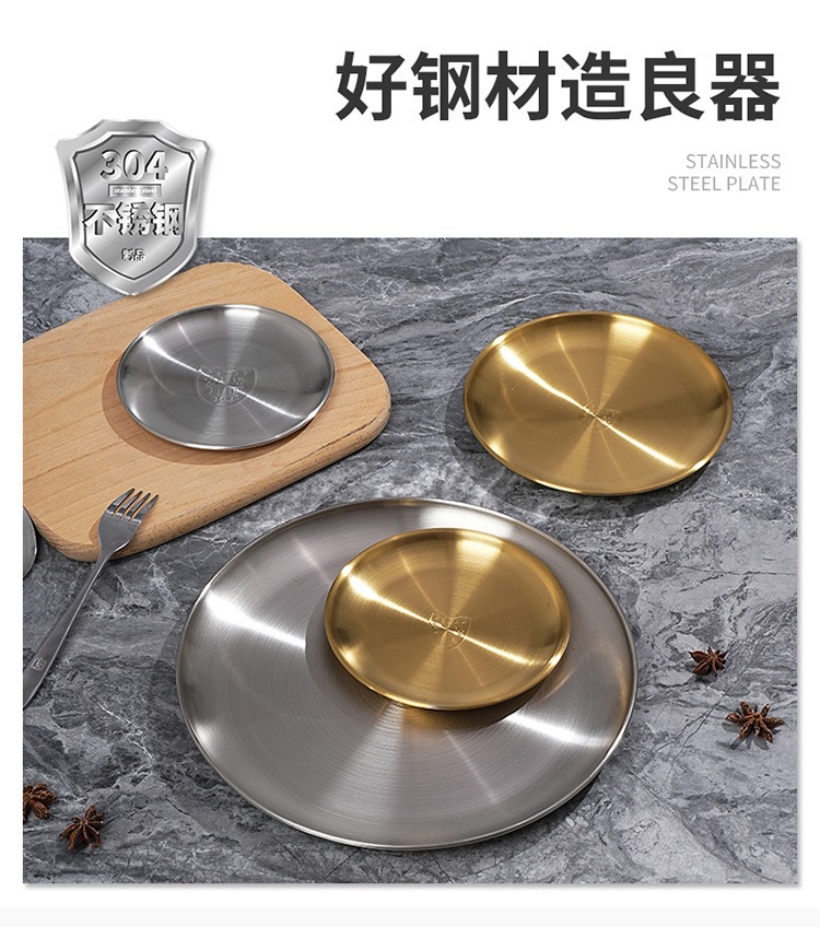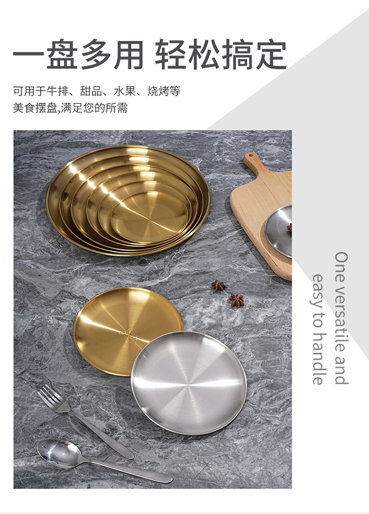 바베큐 전문점 한국식 바베큐 플레이트 라운드 스낵 플레이트 과일 디스크 스핏 뼈 나비 304 스테인레스 스틸 골든 바베큐 플레이트