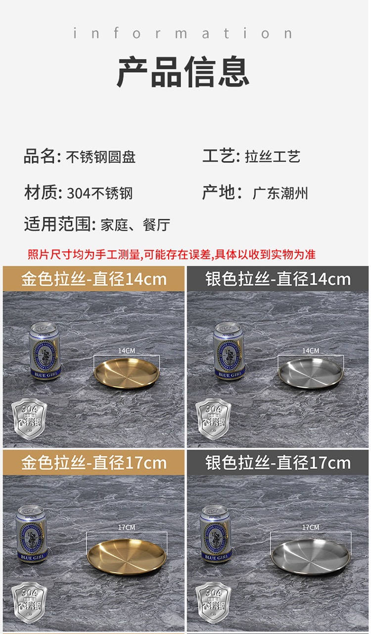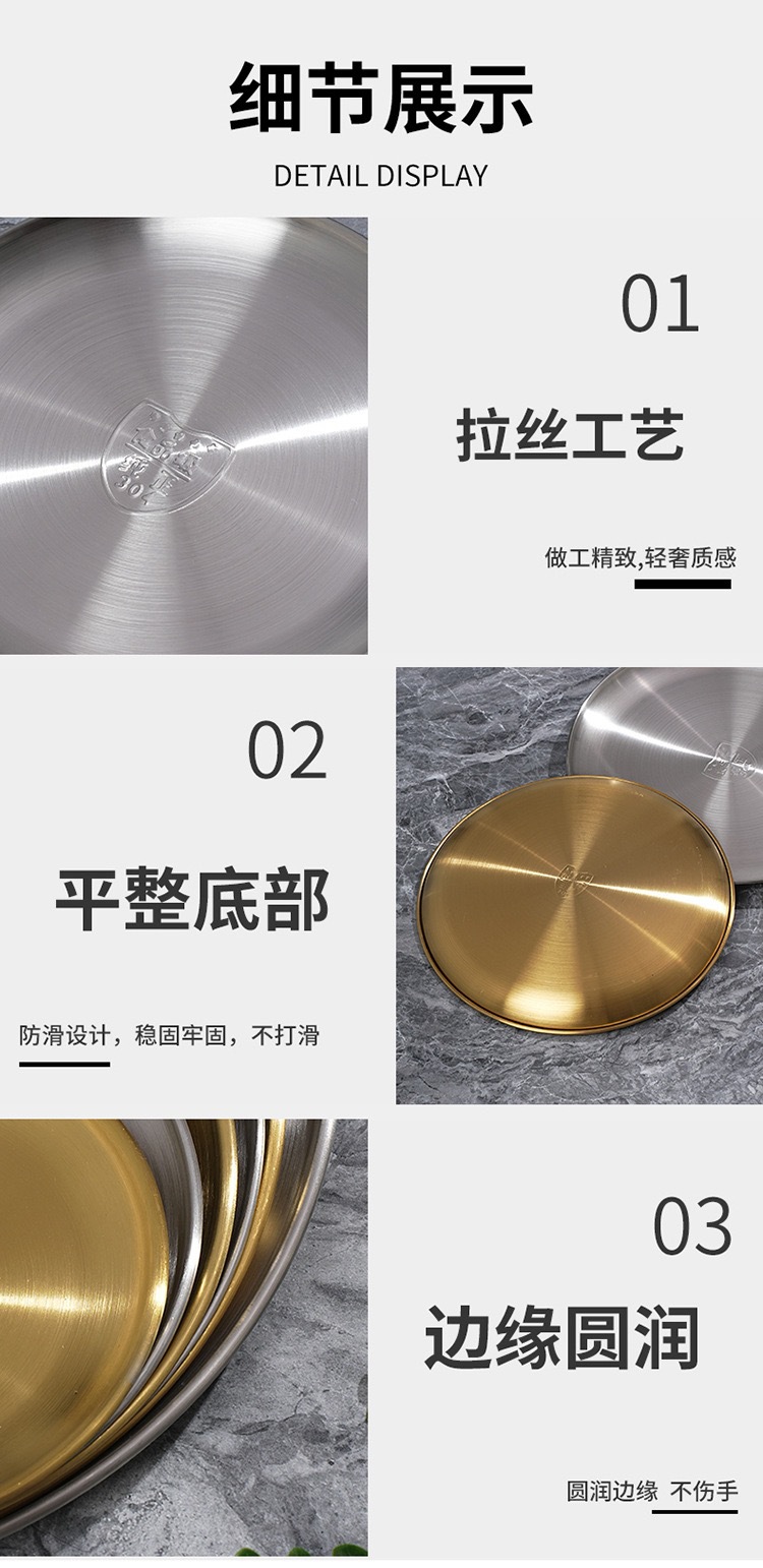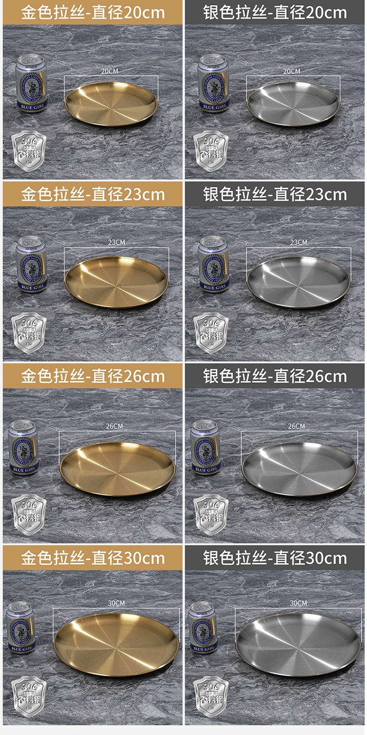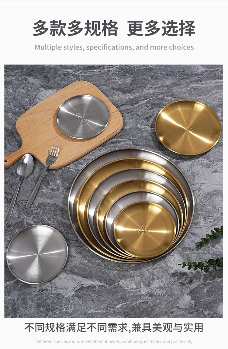 바베큐 전문점 한국식 바베큐 플레이트 라운드 스낵 플레이트 과일 디스크 스핏 뼈 나비 304 스테인레스 스틸 골든 바베큐 플레이트