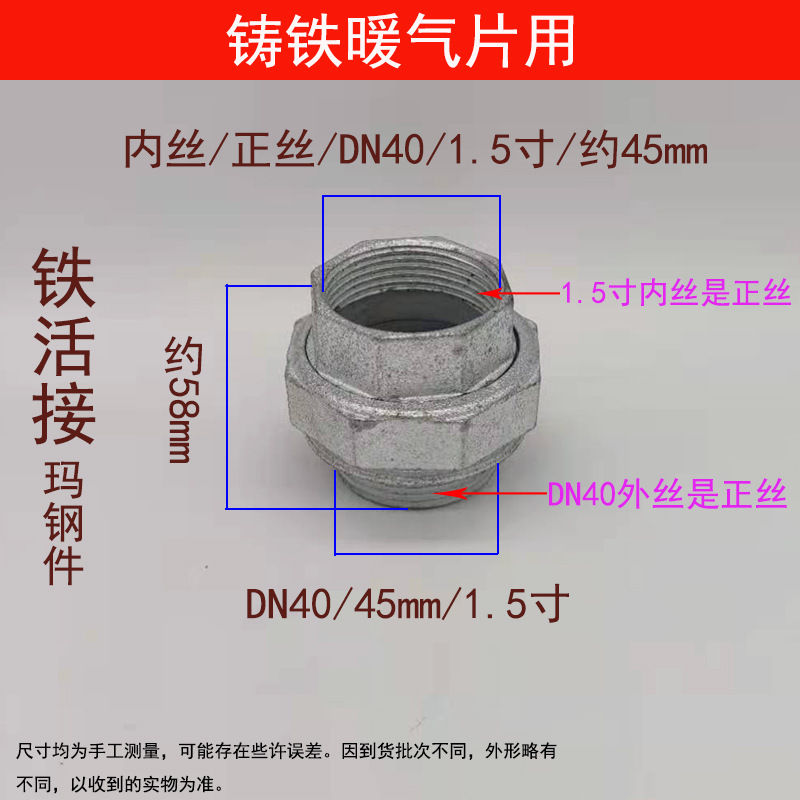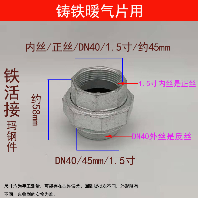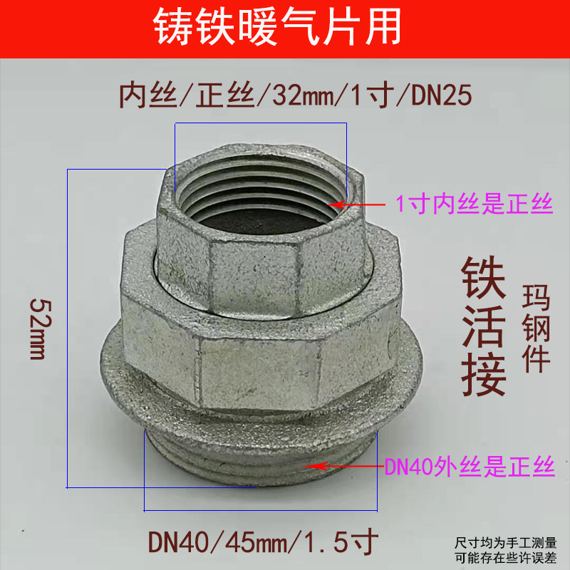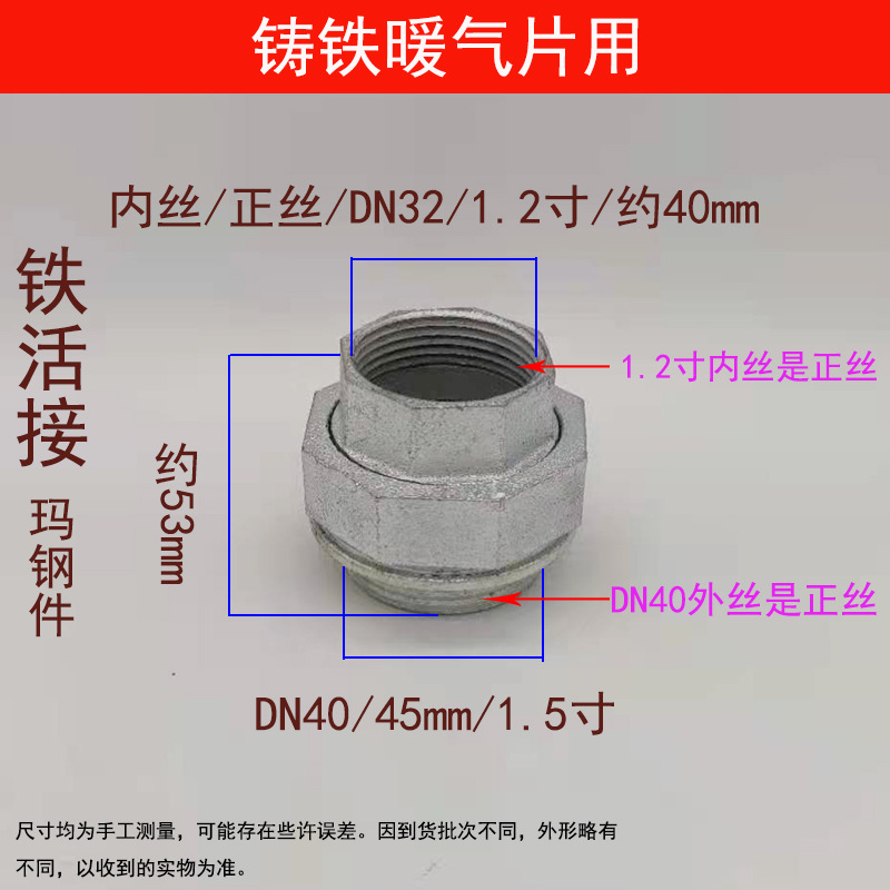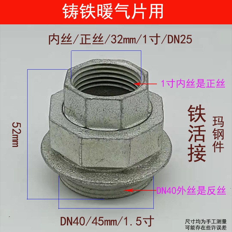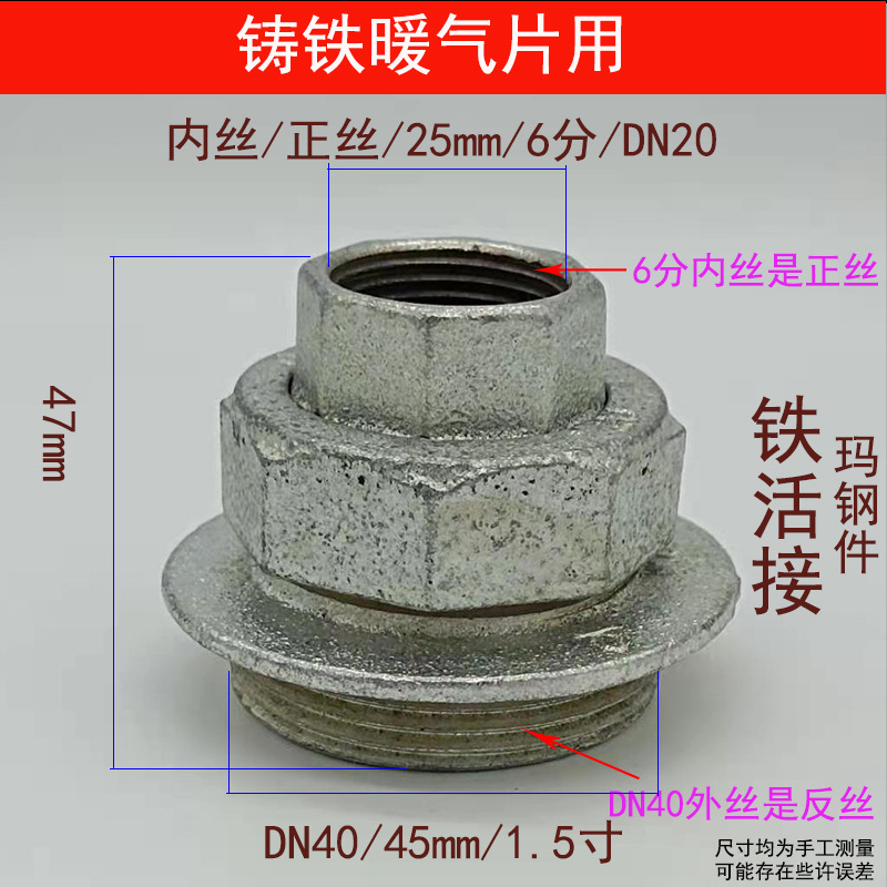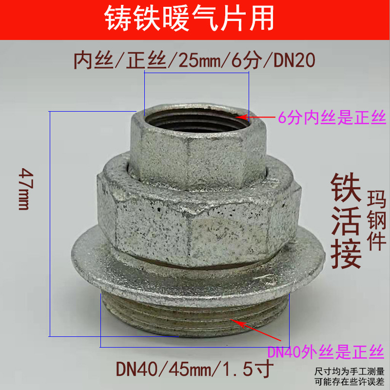 6 분 1 인치 더블 외부 와이어 유니온 공동 바닥 난방 물 분리기 DN25 주철 난방 1.5 인치 조인트 말랑 파이프 피팅스토어 가기