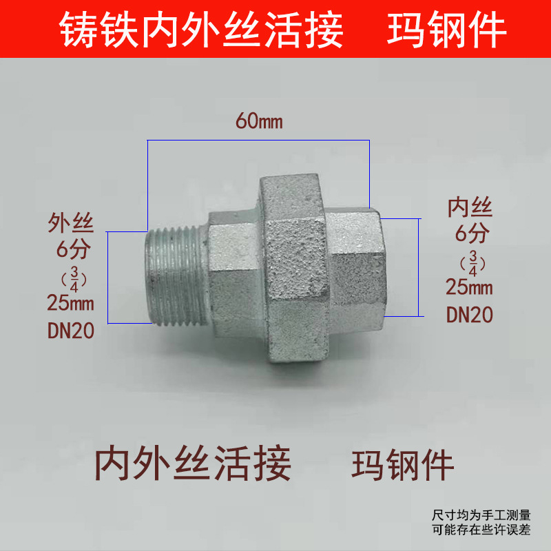 6 분 1 인치 더블 외부 와이어 유니온 공동 바닥 난방 물 분리기 DN25 주철 난방 1.5 인치 조인트 말랑 파이프 피팅
