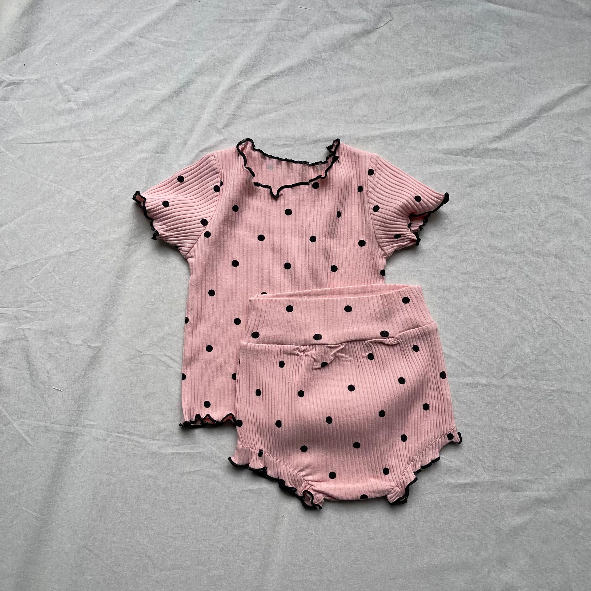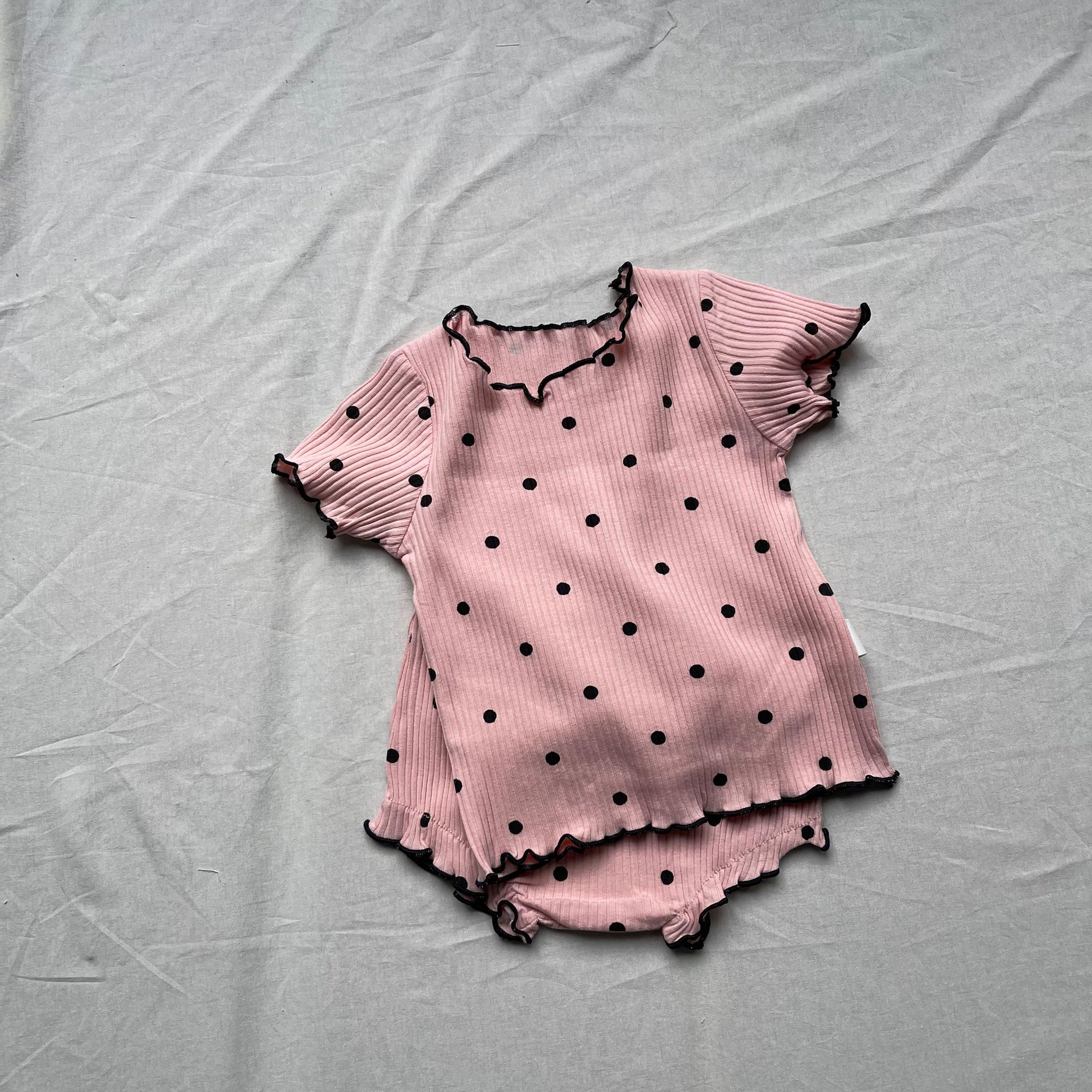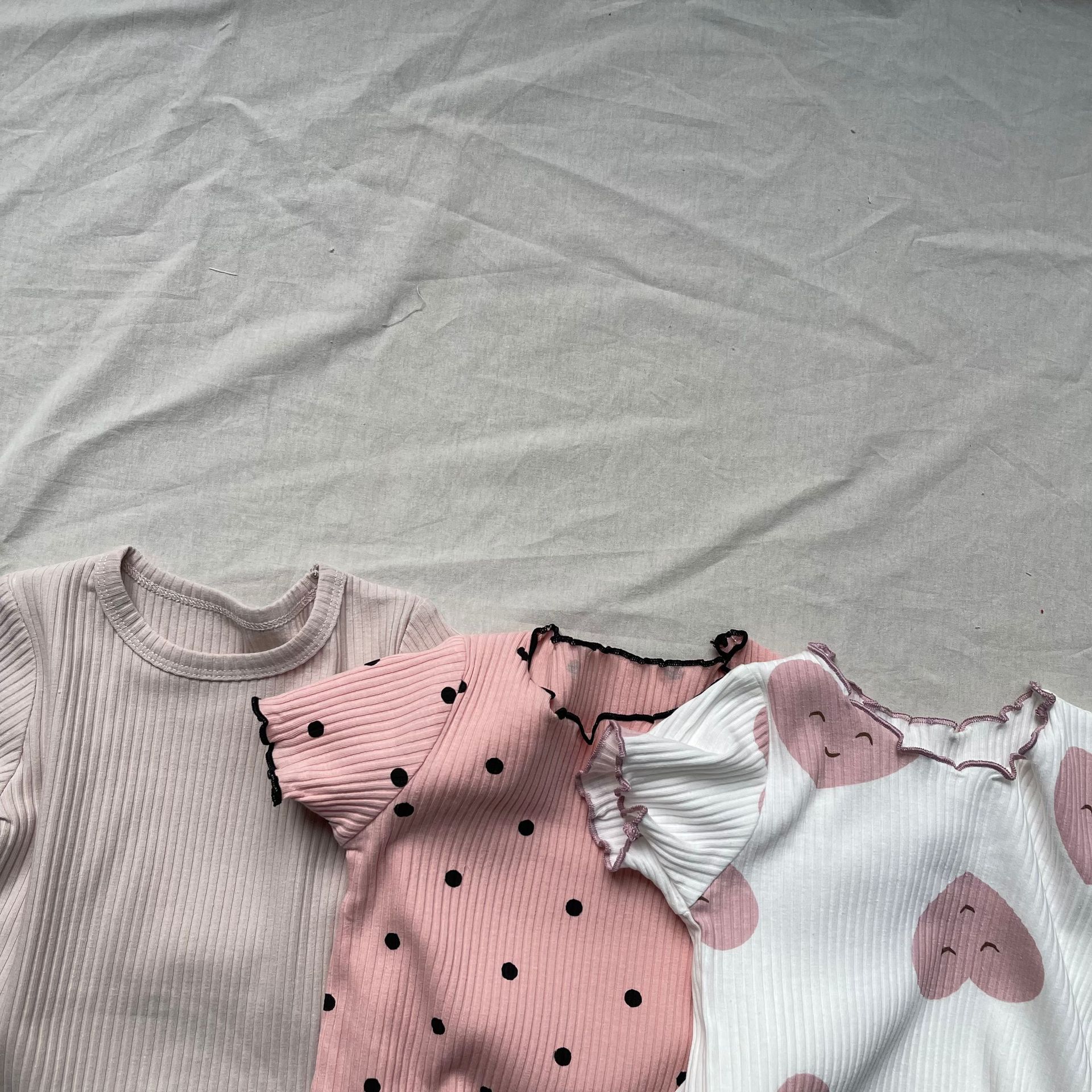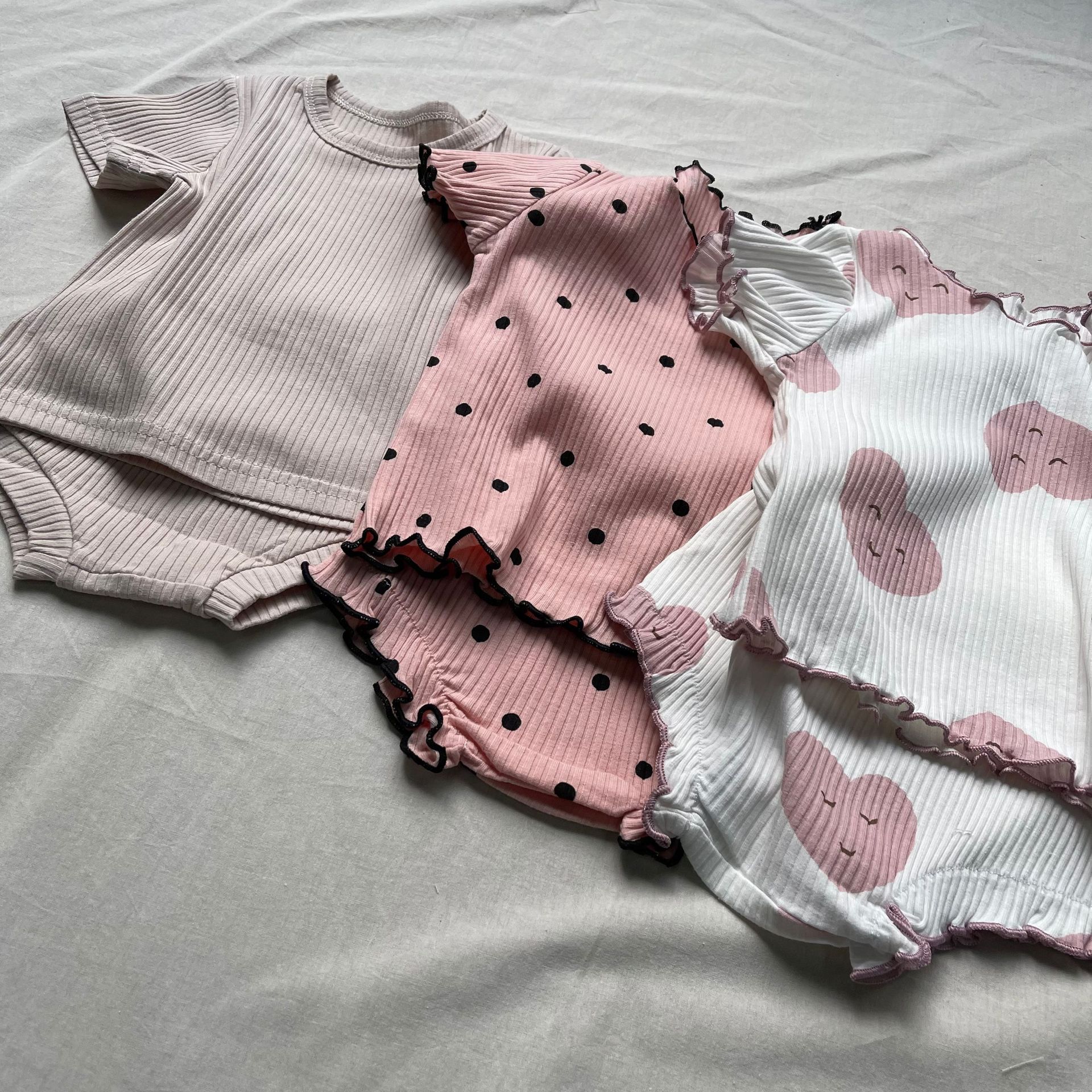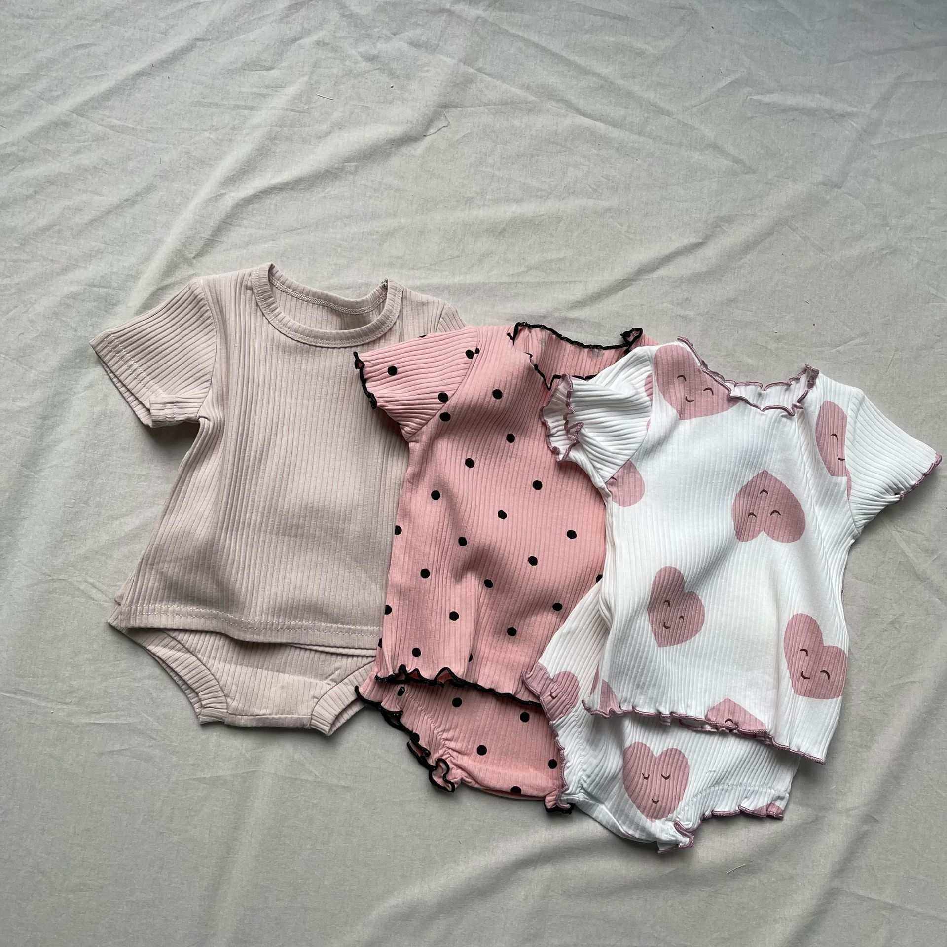 한국 버전의 ins4 색 짧은 소매 컬링 사랑 폴카 도트 단색 패턴 브리프 세트 소년 소녀 아기 여름 통기성