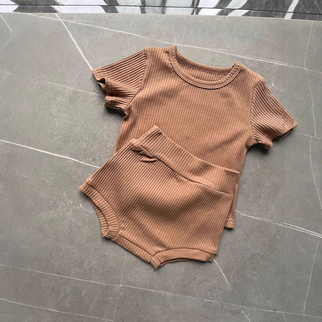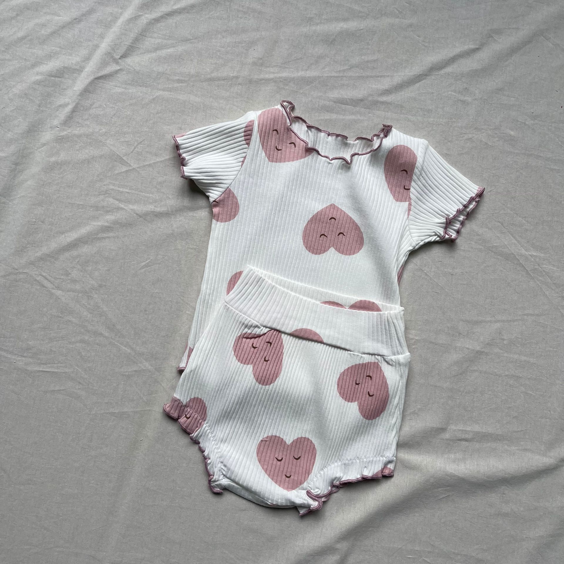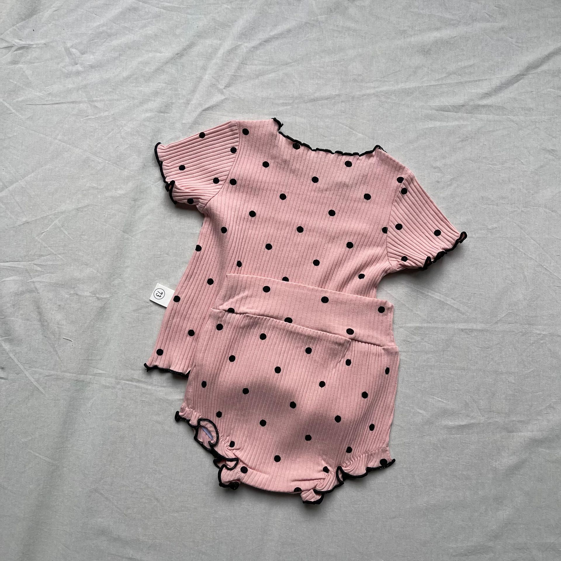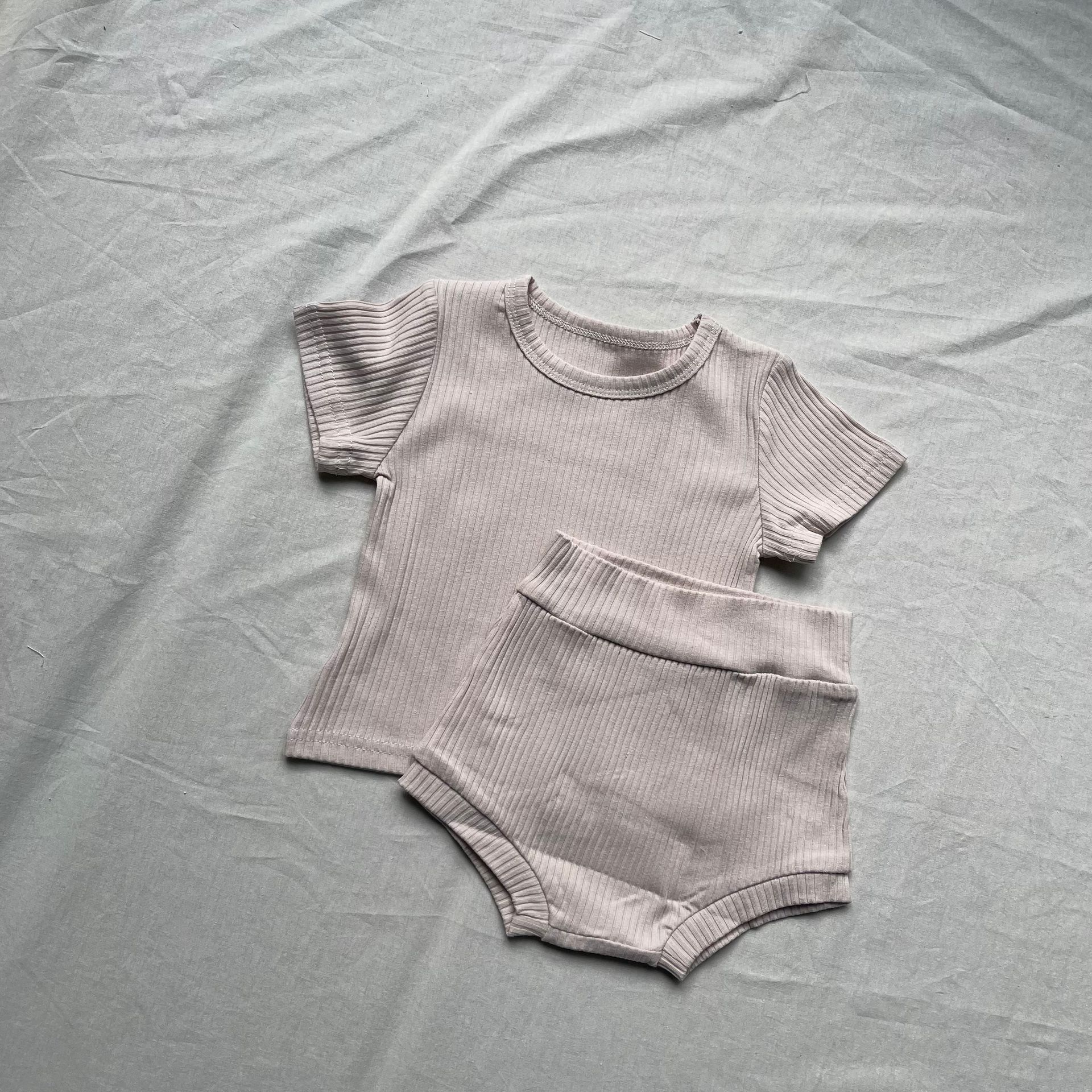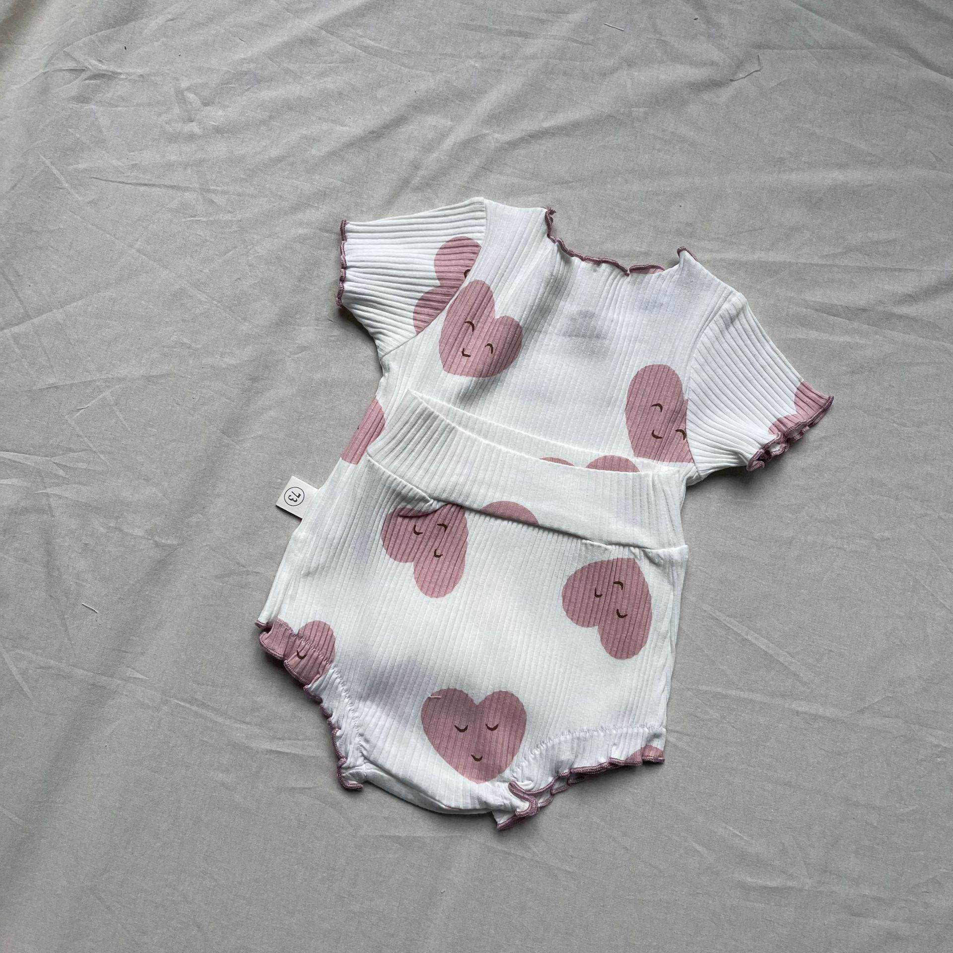 한국 버전의 ins4 색 짧은 소매 컬링 사랑 폴카 도트 단색 패턴 브리프 세트 소년 소녀 아기 여름 통기성