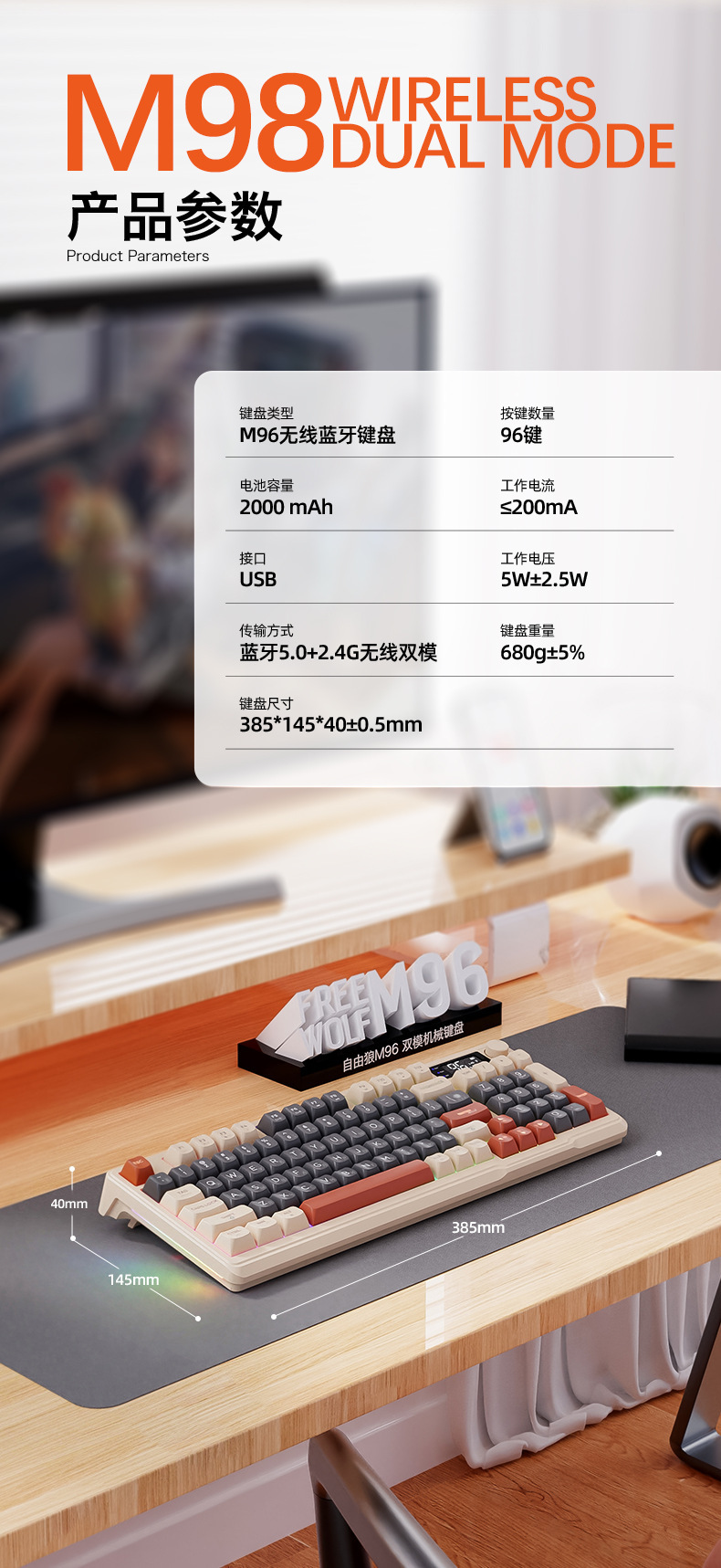 自由狼M96俄文无线蓝牙双模键盘(薄膜键盘)