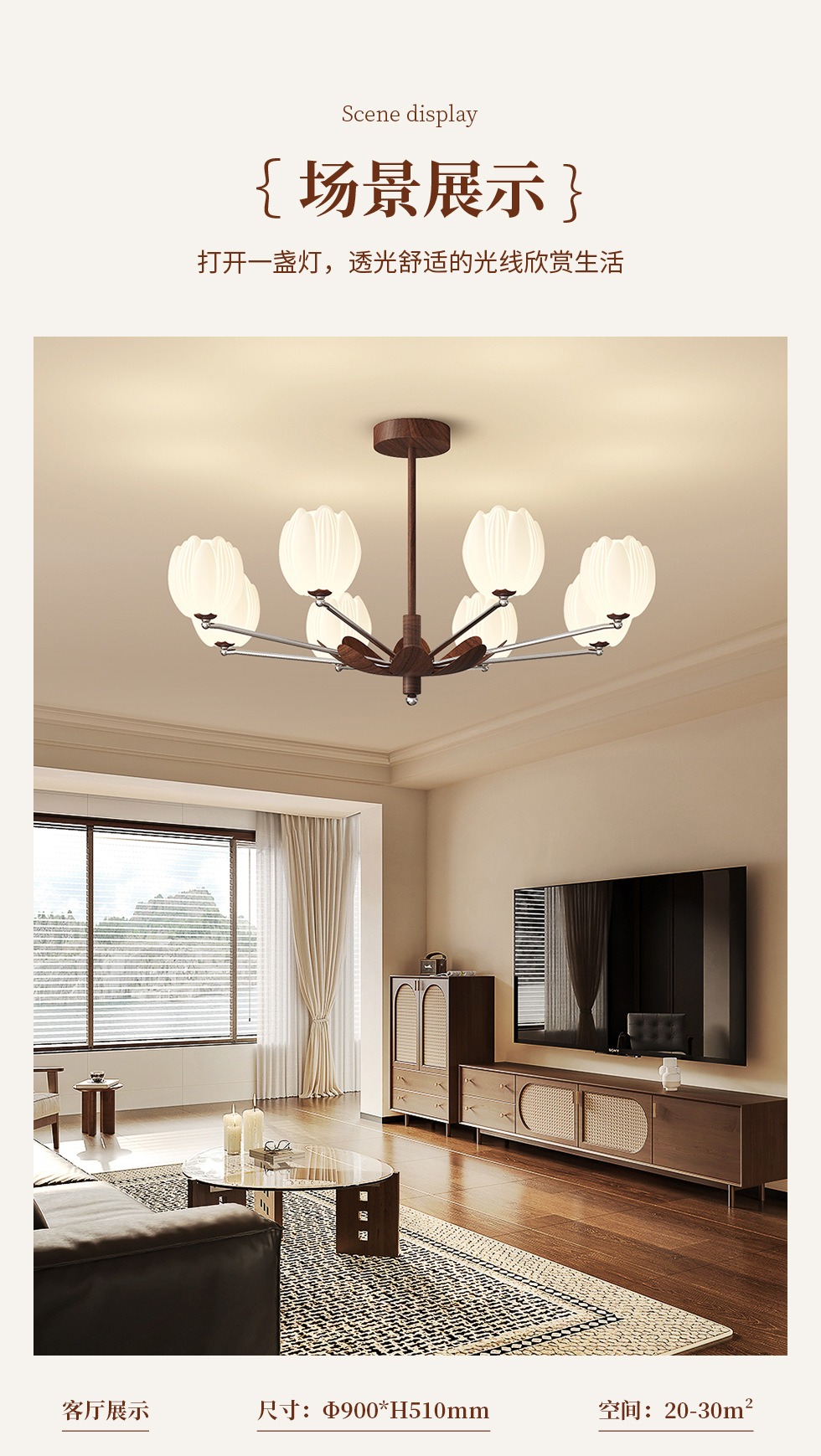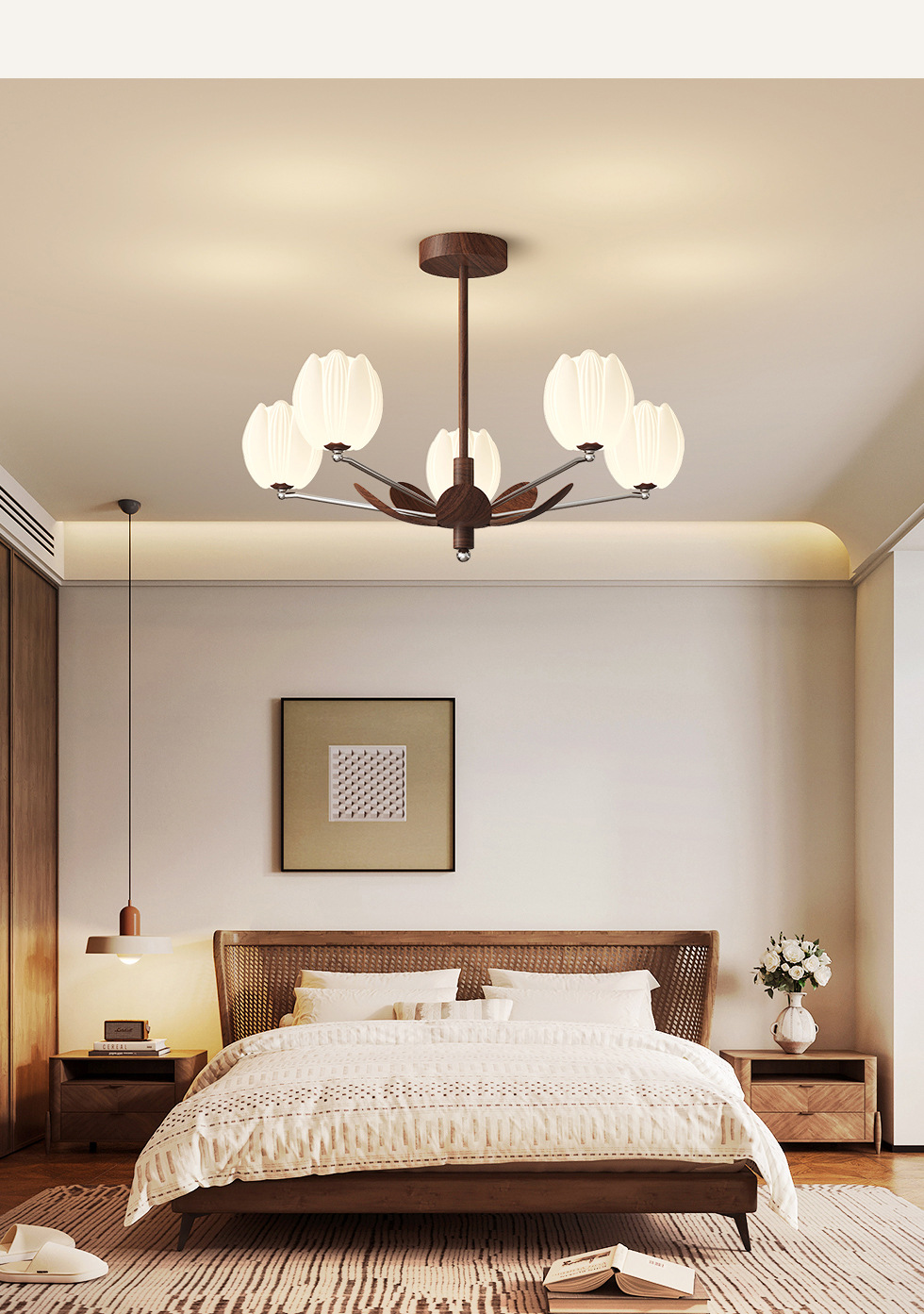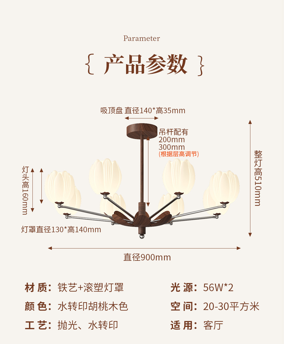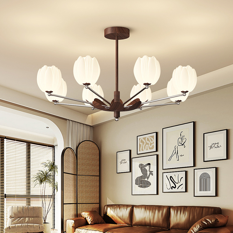 아메리칸 스타일 거실 샹들리에 레트로 디자이너 홀 메인 라이트 골동품 하이 엔드 대기 간단한 호두 곡물 조명