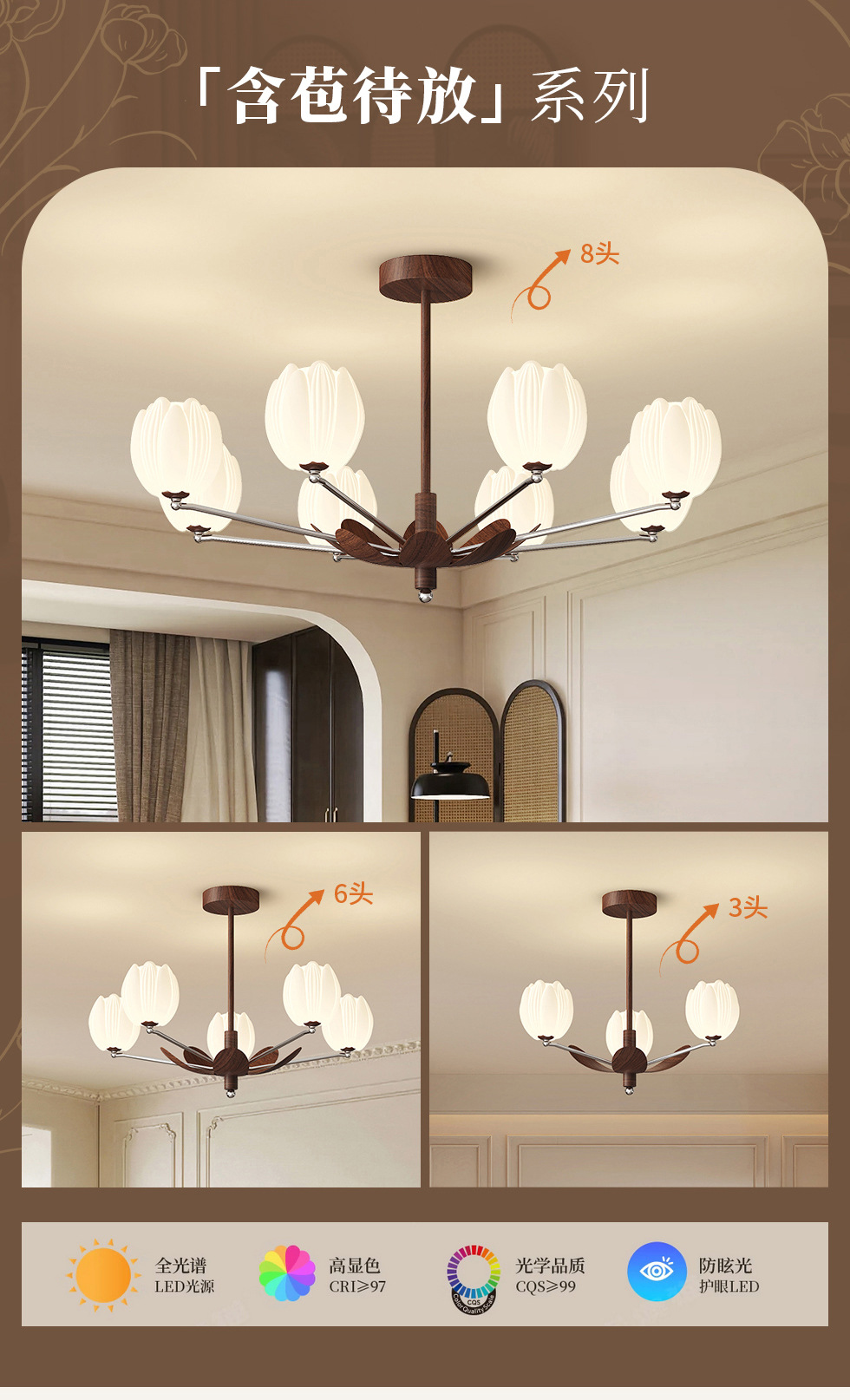 • [전체 스펙트럼 광원] 호두색 + 흰색 - 8개 헤드