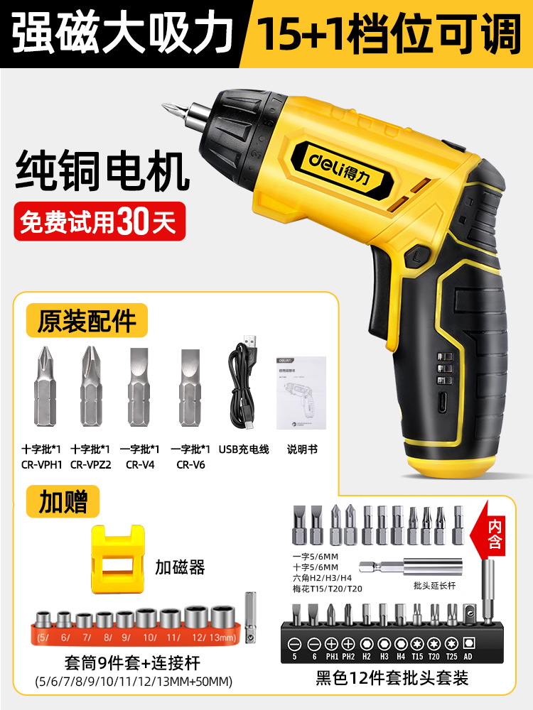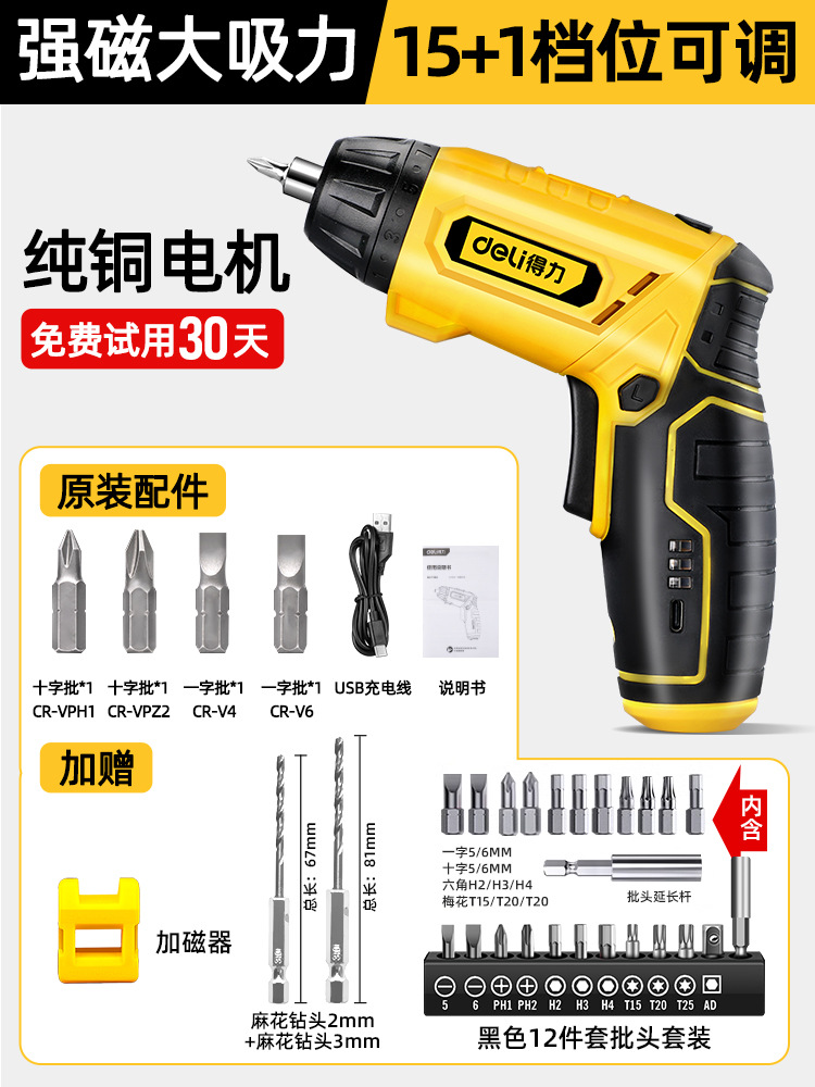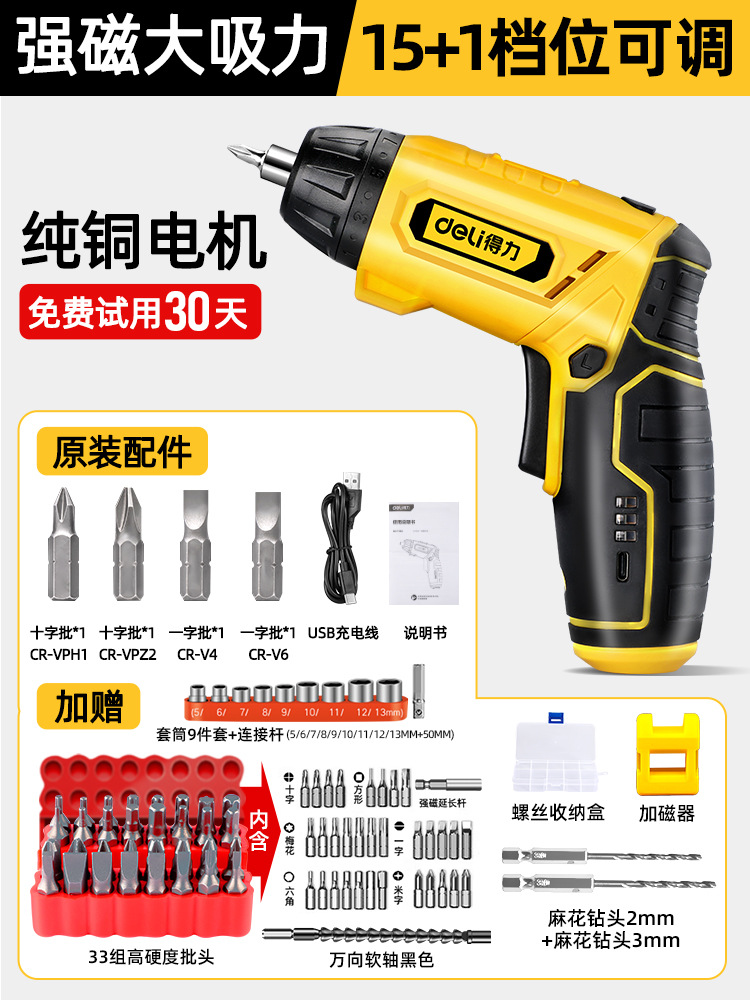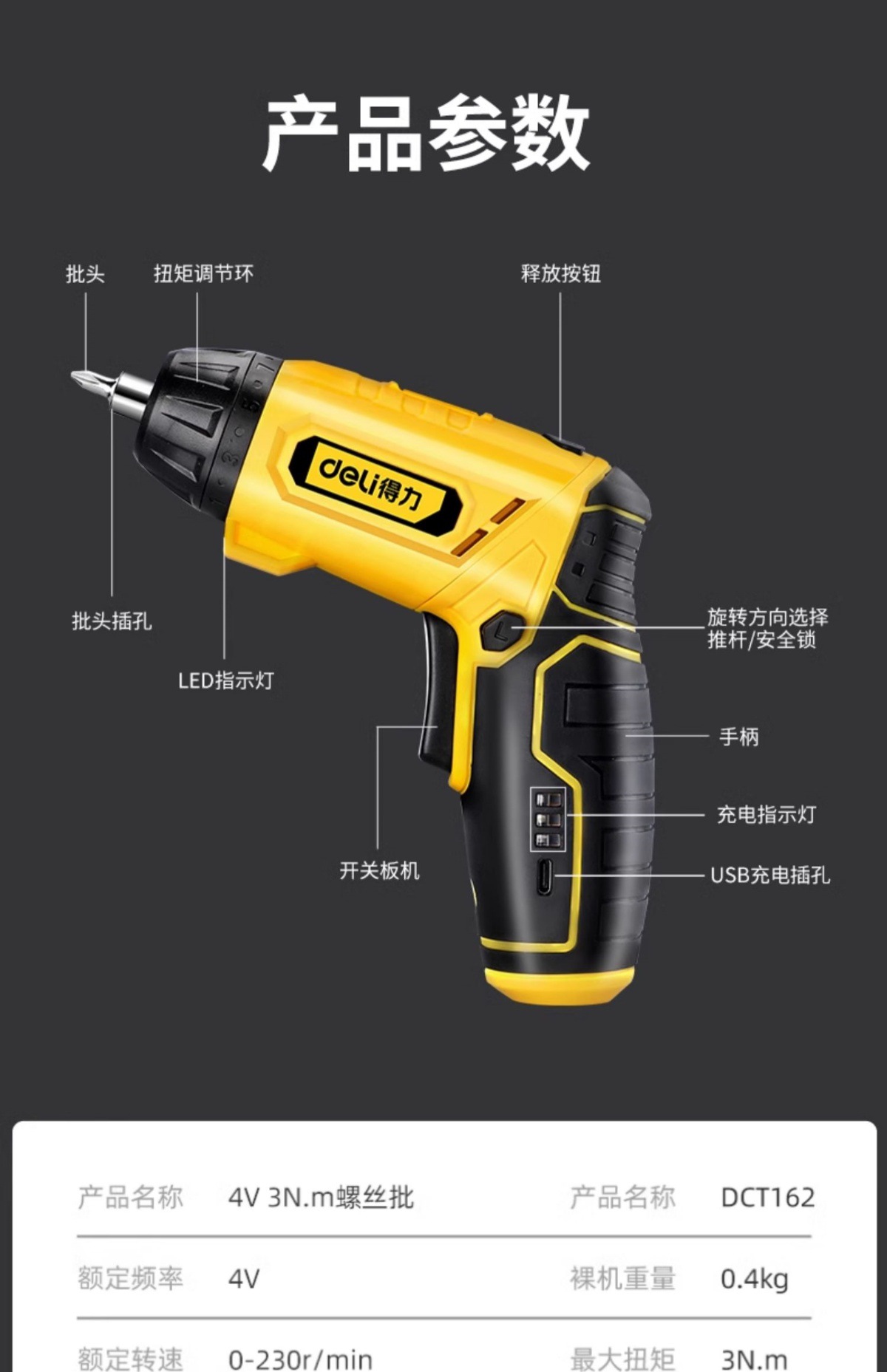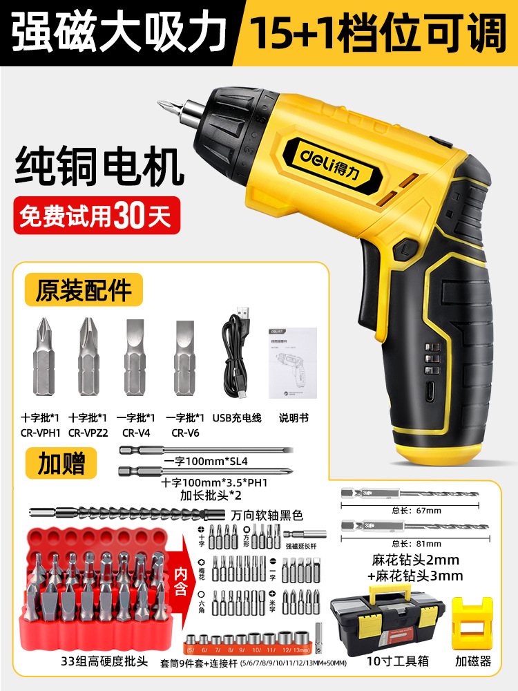 델리 전기 드라이버 충전식 가정용 소형 드라이버 미니 전기 배치 리튬 배터리 자동 드릴링 도구 세트스토어 가기