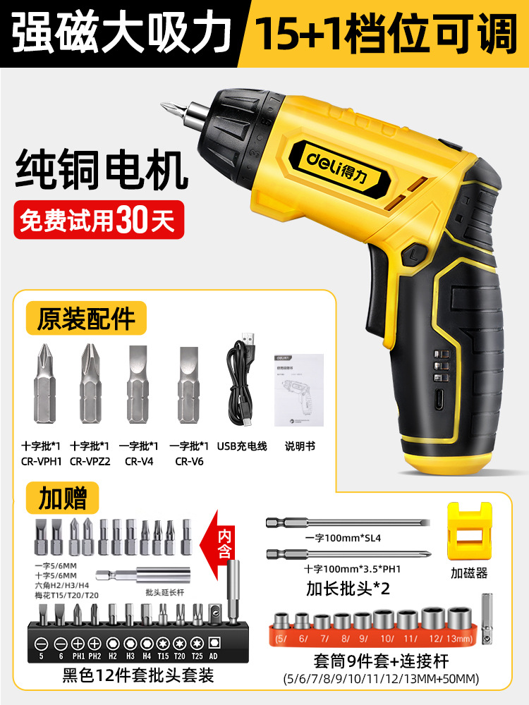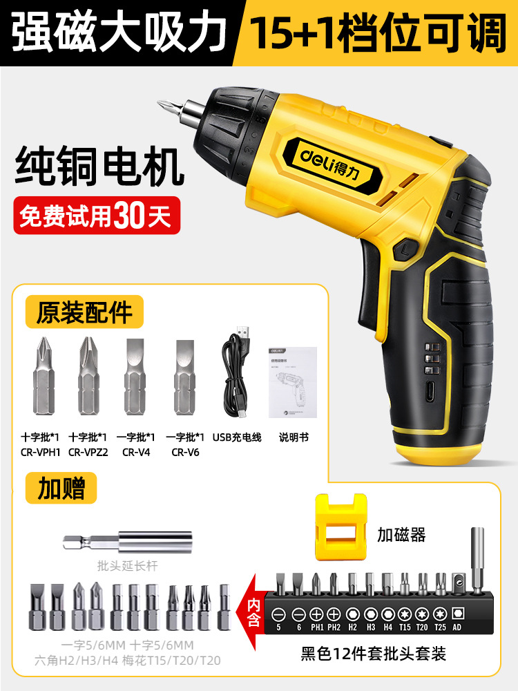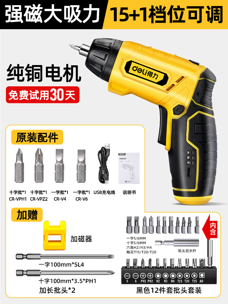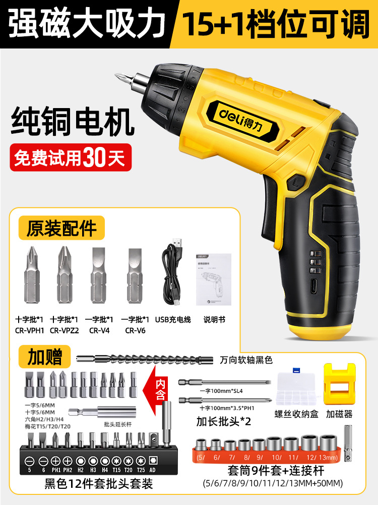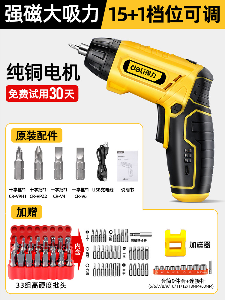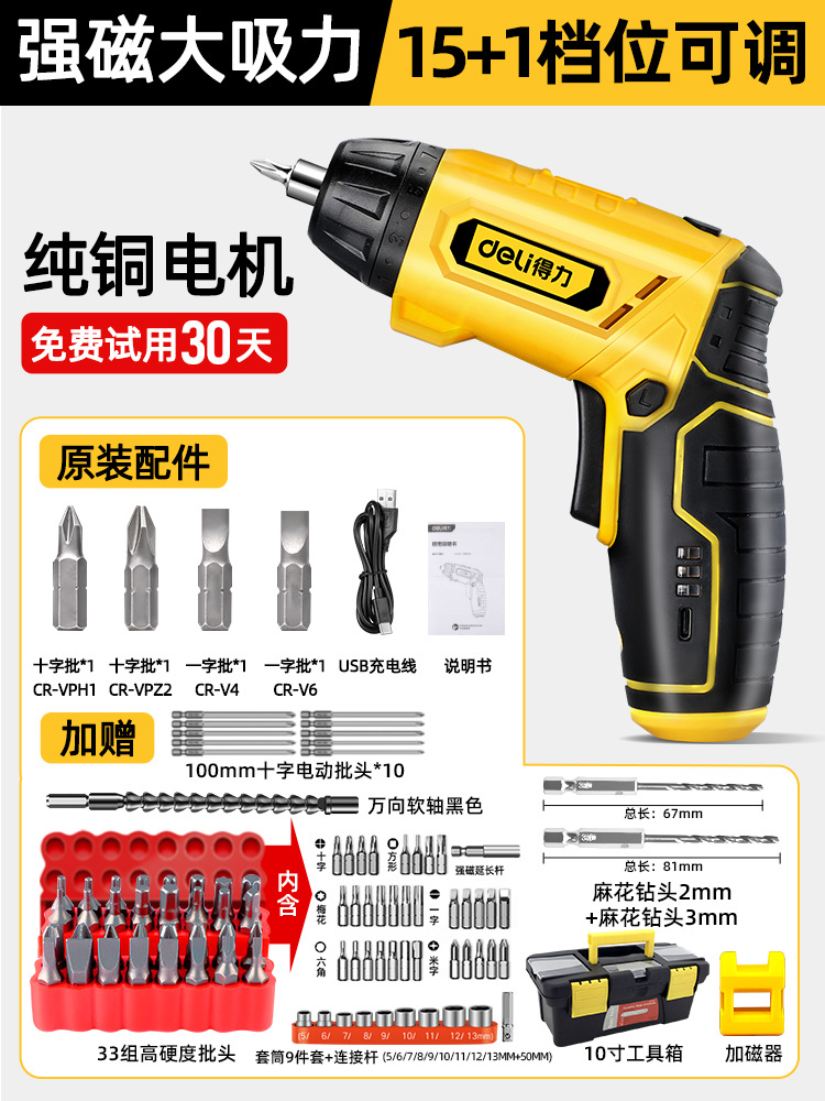 델리 전기 드라이버 충전식 가정용 소형 드라이버 미니 전기 배치 리튬 배터리 자동 드릴링 도구 세트스토어 가기