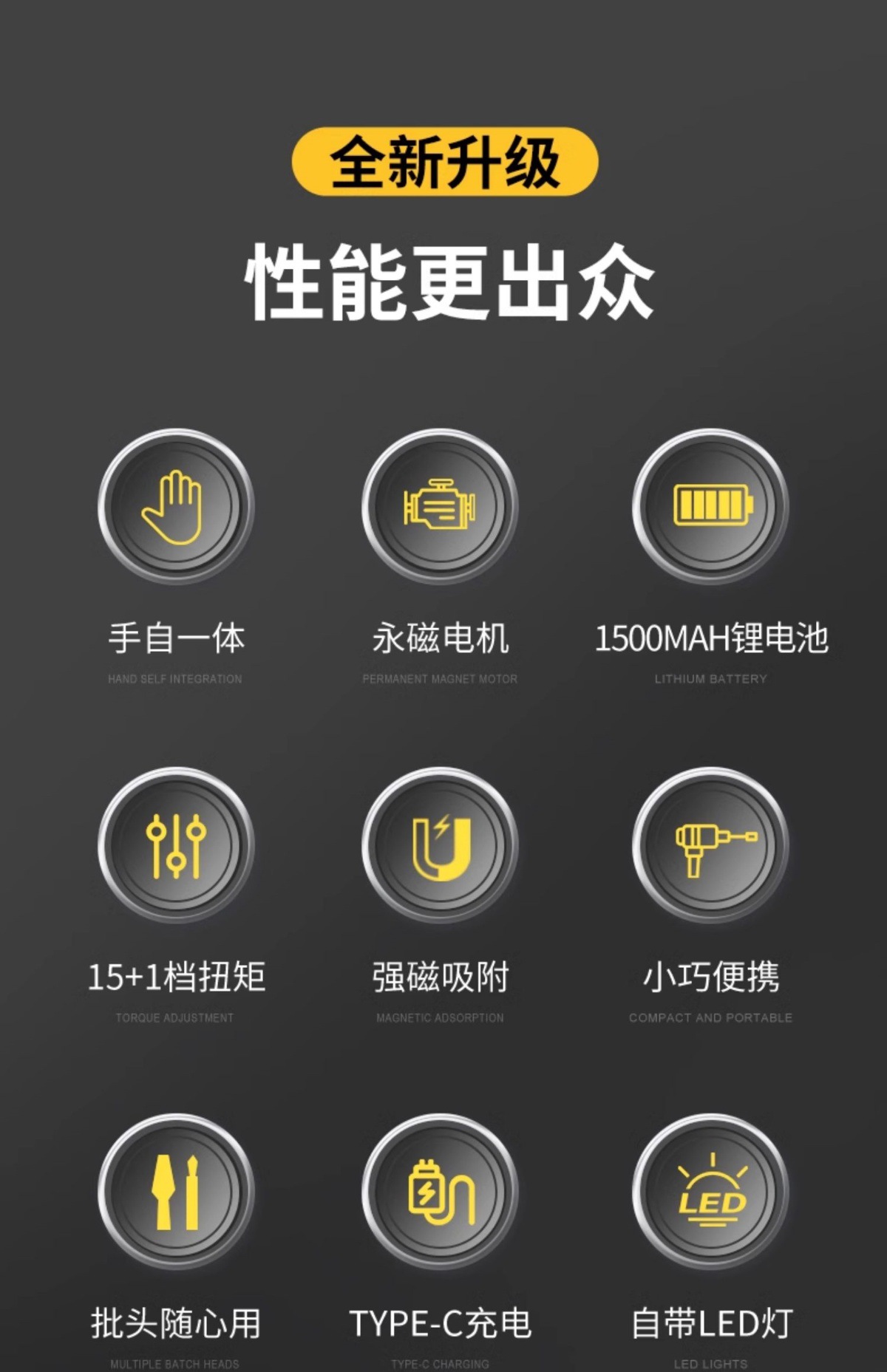• 15+1 기어 토크 조정, 강력한 자석 및 높은 흡입력, 빠른 비틀림 시작