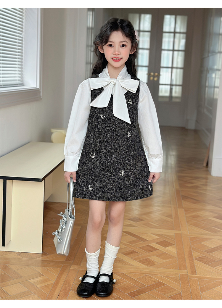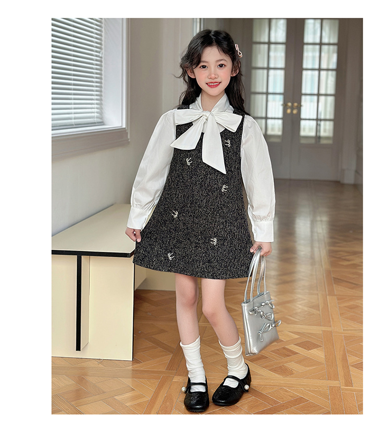 소녀 조끼 스커트 봄 2025 새로운 어린이 활 셔츠 작은 향기로운 스타일 한국 원피스 투피스 패션