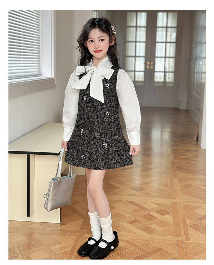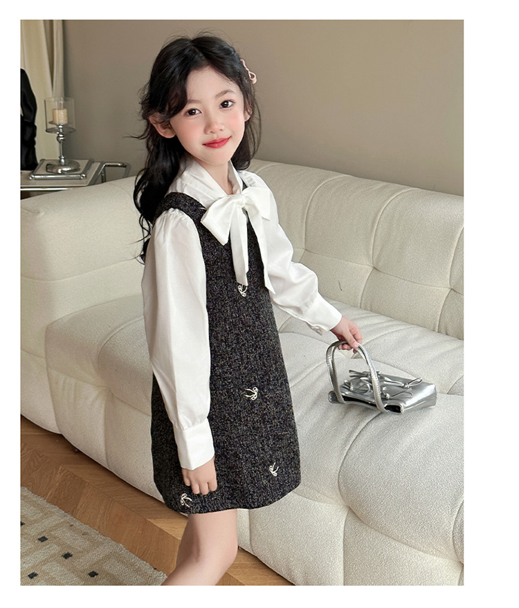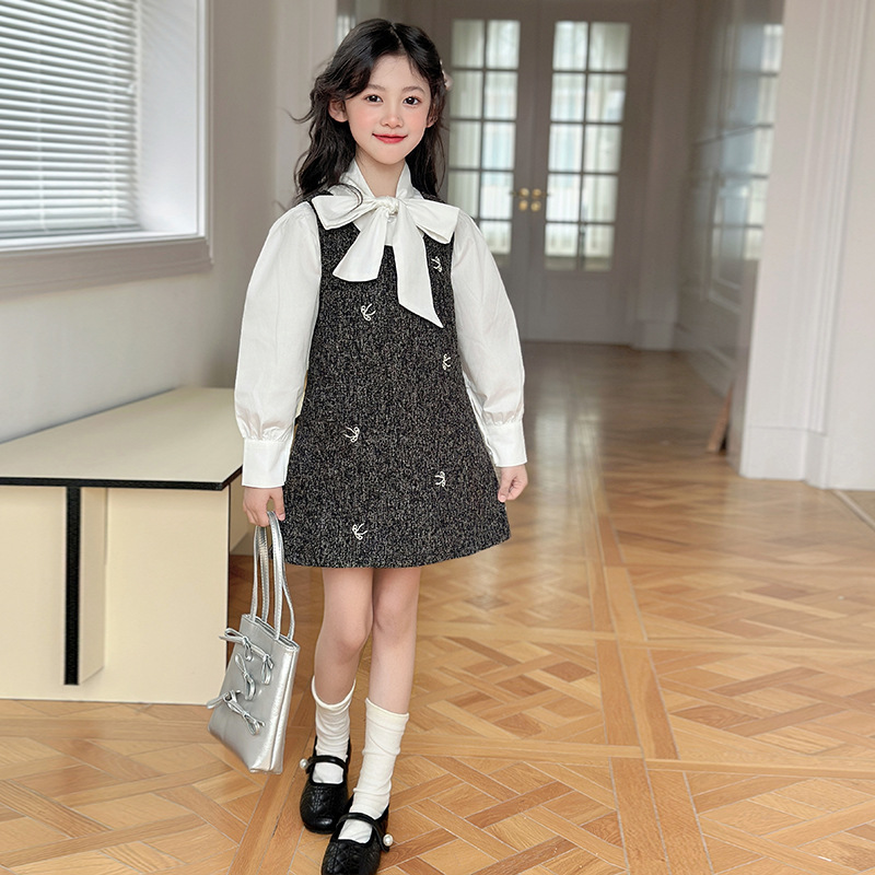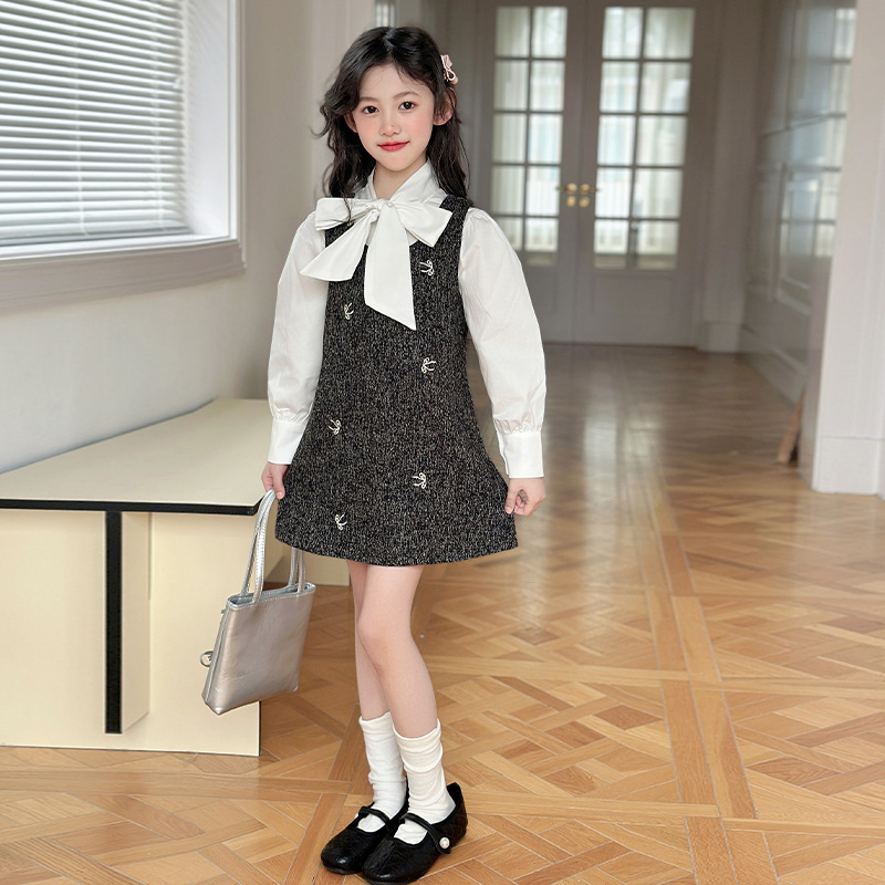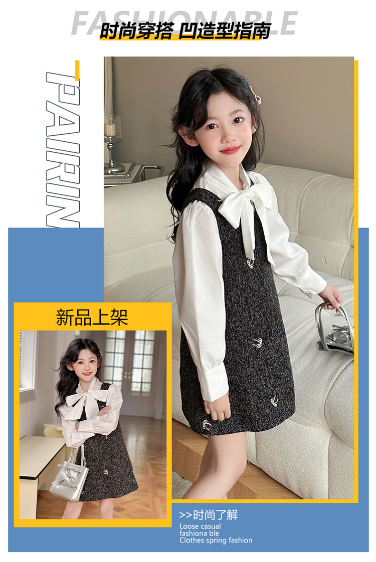 소녀 조끼 스커트 봄 2025 새로운 어린이 활 셔츠 작은 향기로운 스타일 한국 원피스 투피스 패션스토어 가기