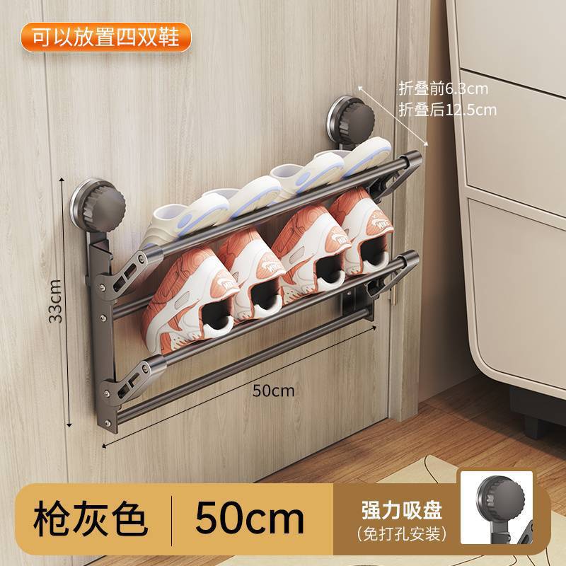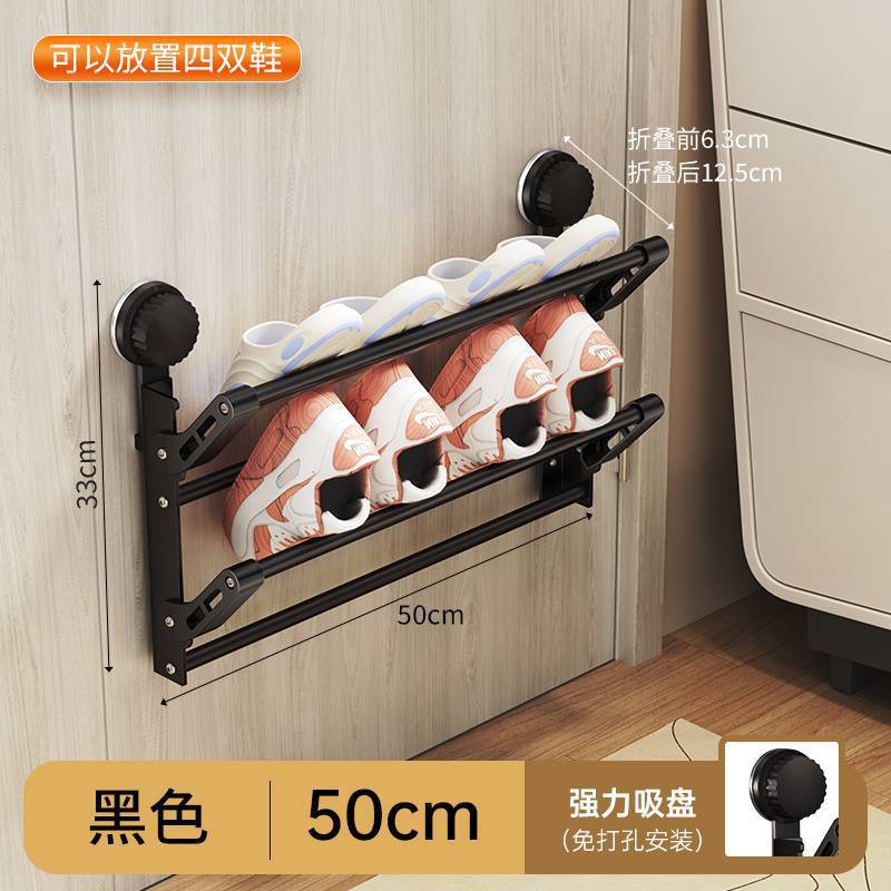 더블 도어 후면 신발 랙 접이식 흡입 컵 타입 슬리퍼 랙 욕실 신발 랙 욕실 천공 벽 장착 다층