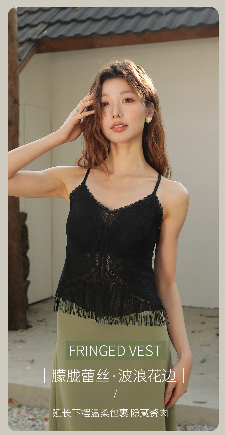 새로운 프린지 레이스 캐미솔 여성용 봄 여름 슬림핏 다용도 속옷 짧은 스타일 외출용 타이트 얇은 스타일스토어 가기