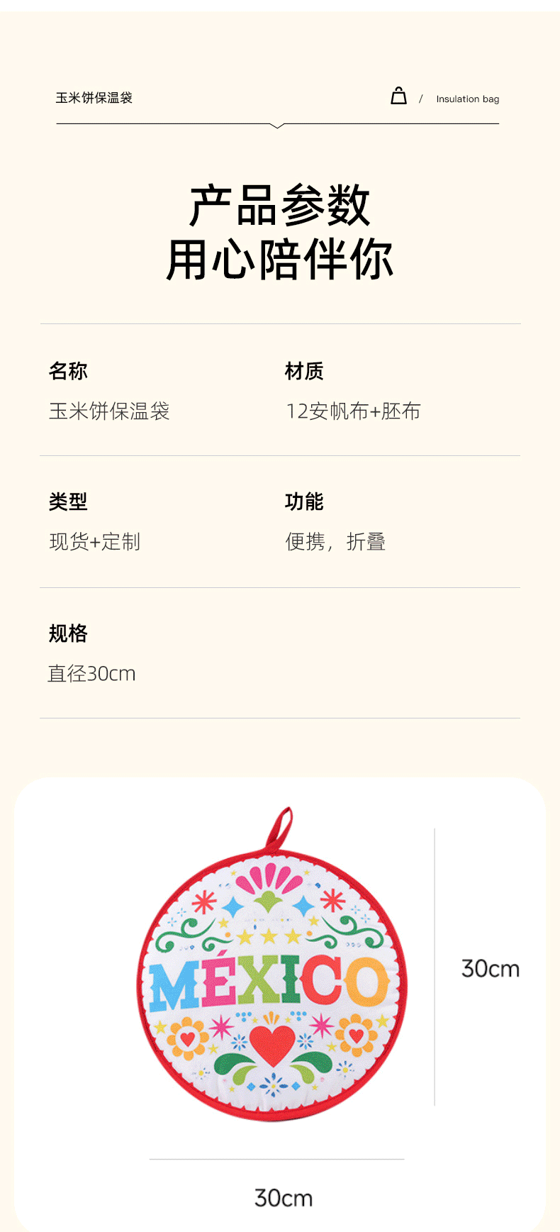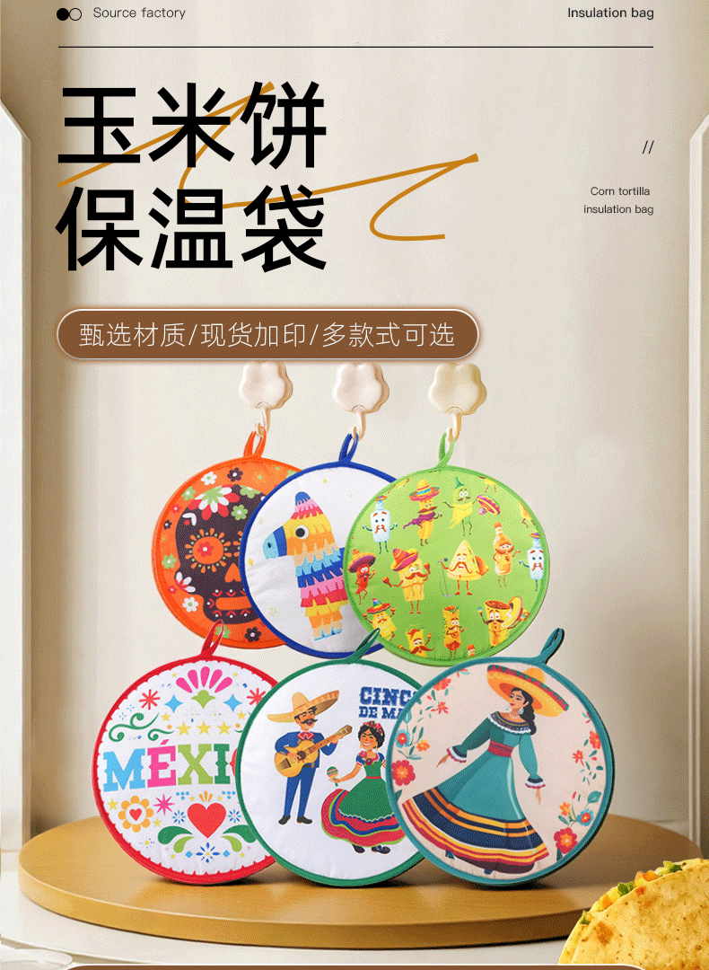 멕시코식 타코 보온 가방 단열 원형 도시락 가방 점심 가방 보온 가방 피크닉 가방 식품 등급 해외 배송스토어 가기