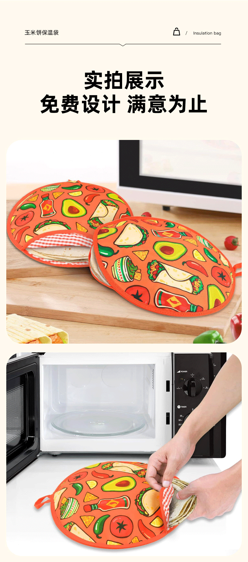 멕시코식 타코 보온 가방 단열 원형 도시락 가방 점심 가방 보온 가방 피크닉 가방 식품 등급 해외 배송