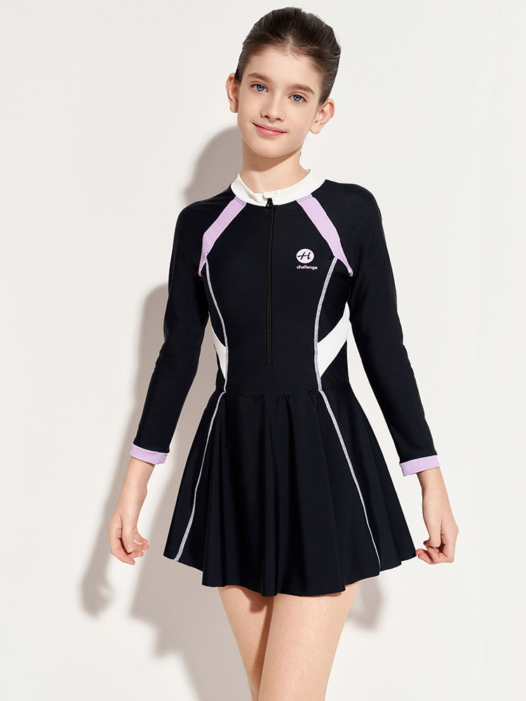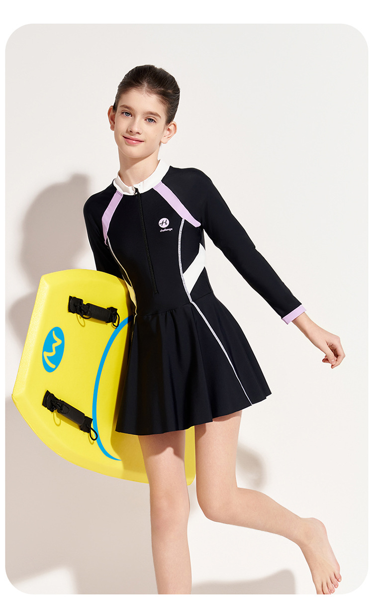 대학 스타일 여자 수영복 플러스 사이즈 청소년과 학생 수영복 약간의 뚱뚱한 여자 긴 소매 태양 보호 2025 새로운