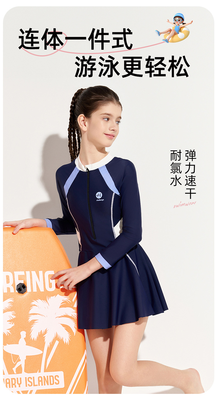 대학 스타일 여자 수영복 플러스 사이즈 청소년과 학생 수영복 약간의 뚱뚱한 여자 긴 소매 태양 보호 2025 새로운스토어 가기