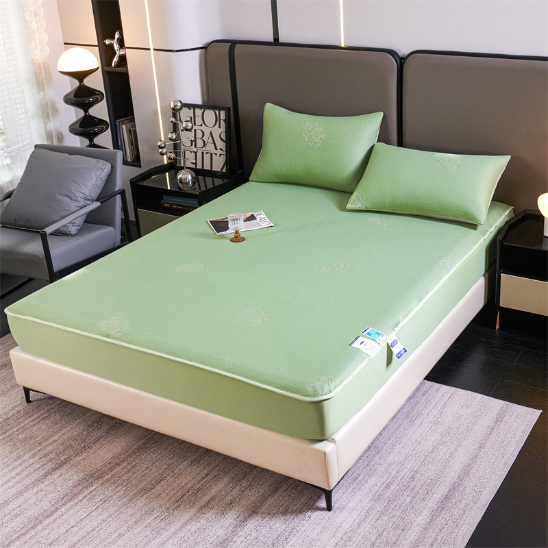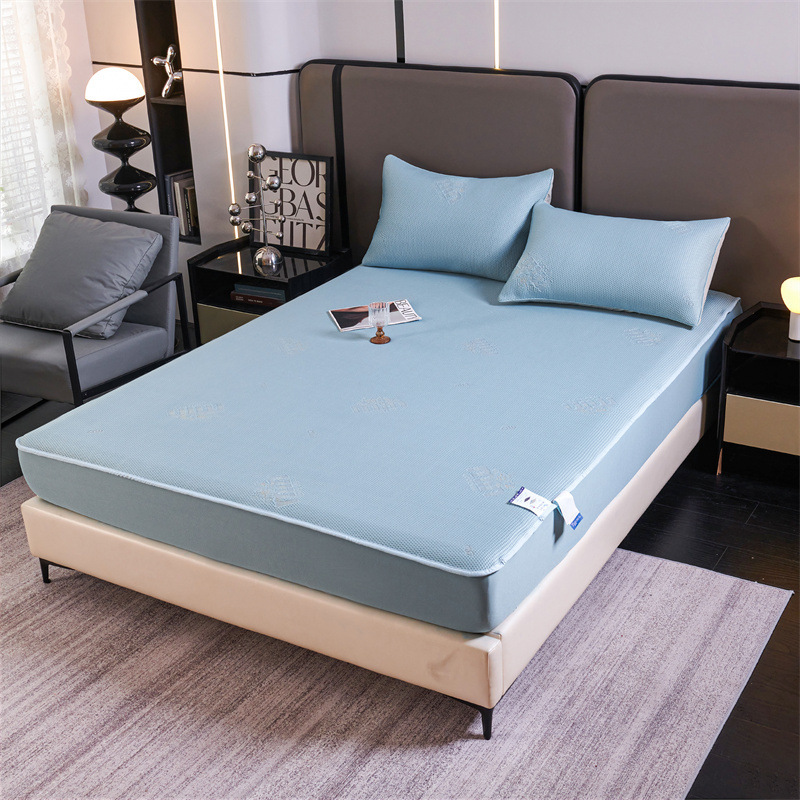 카테고리 세탁 가능한 냉각 느낌 비니 아이스 실크 방수 콩 퀼트 침대 모자 매트리스 프로텍터 세트 침대보 감 올 인