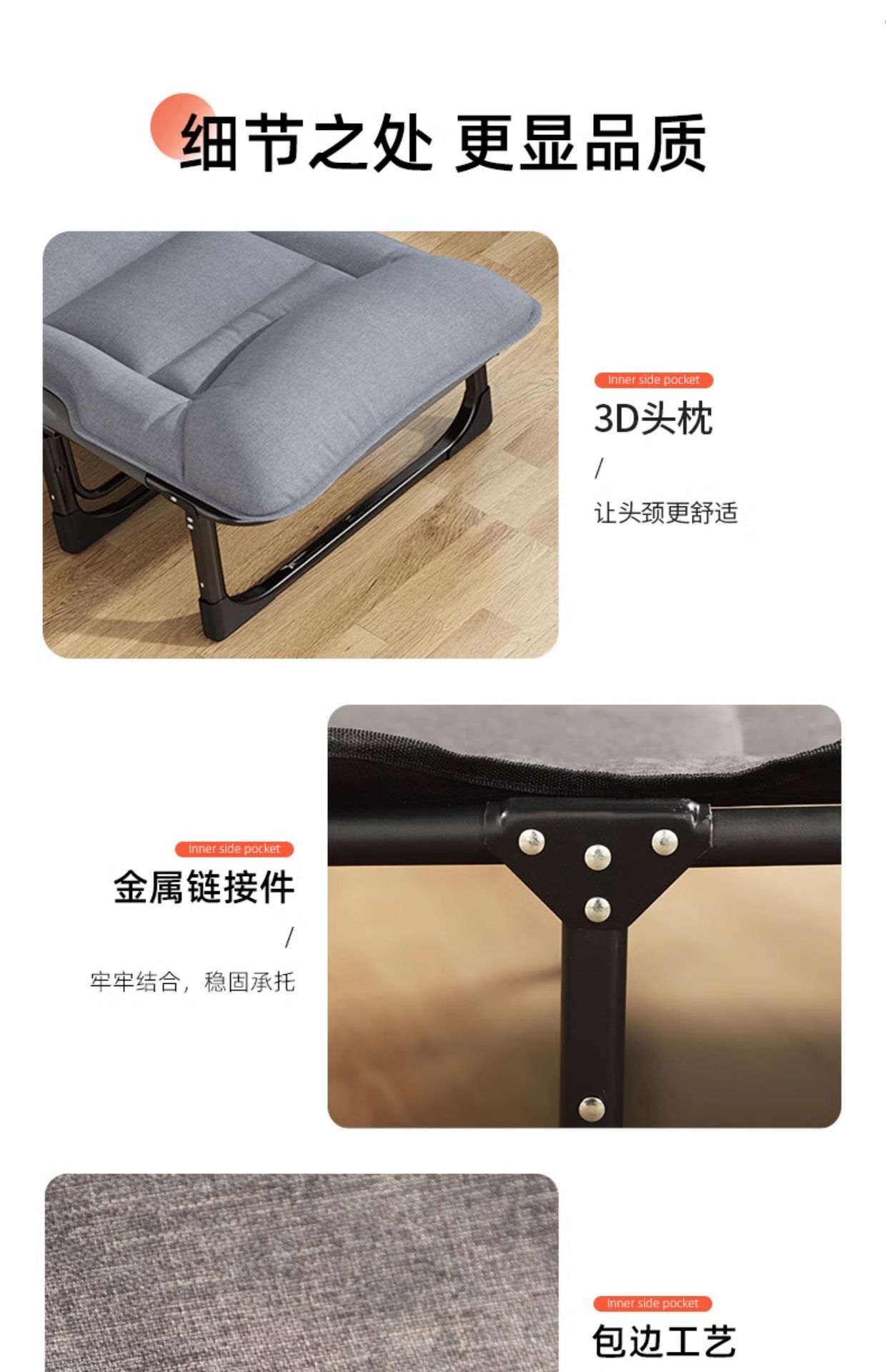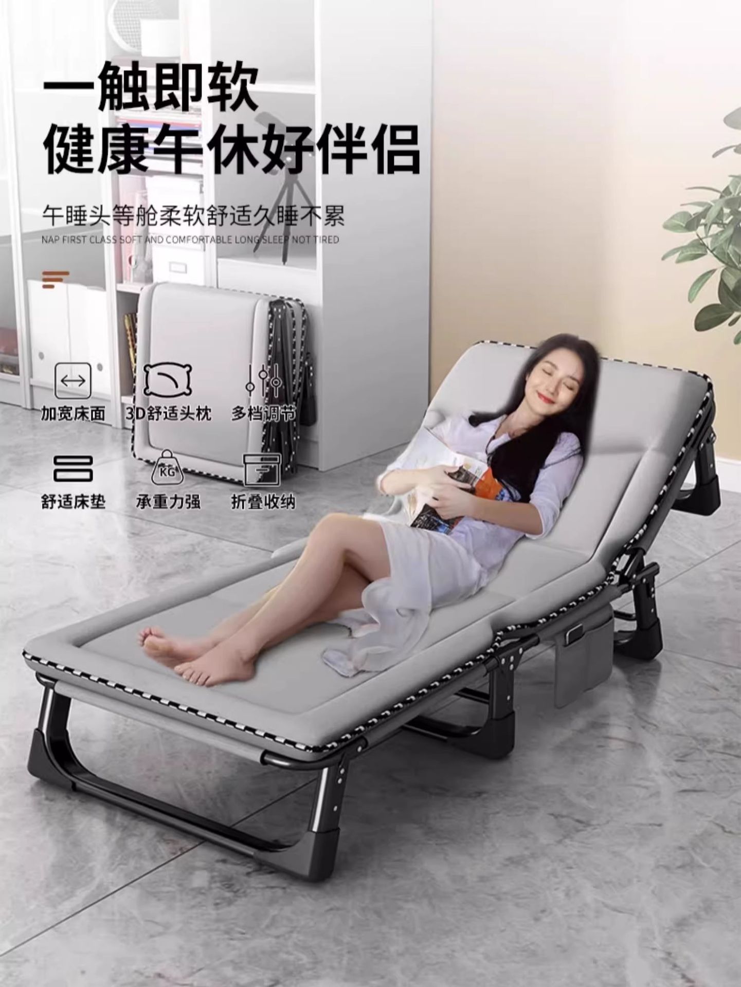 간단한 3 꿈 접는 침대 싱글 침대 사무실 점심 휴식 리라이너 휴대용 병원 동반 육군 침대 성인 낮잠스토어 가기