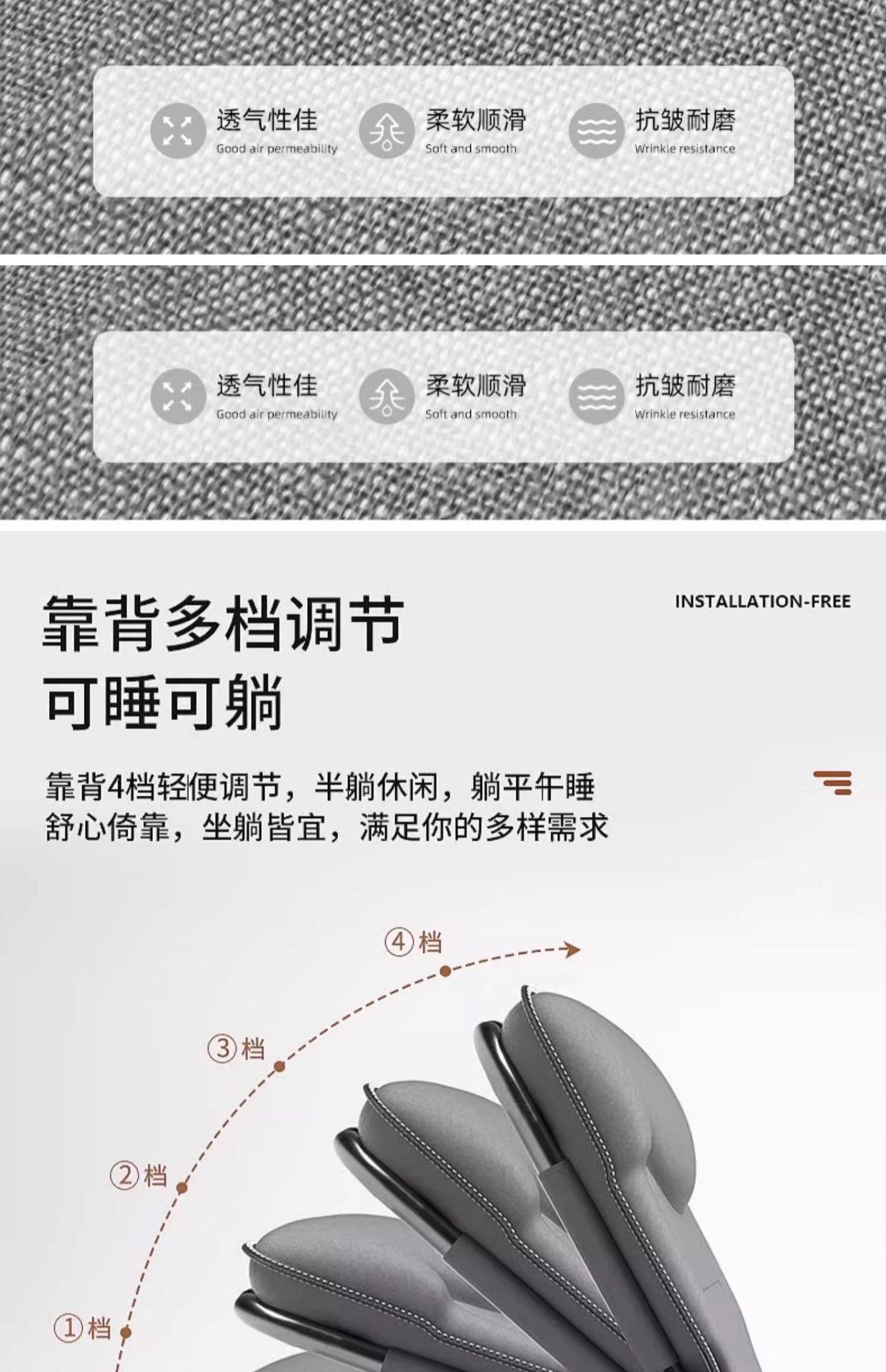 • 170*56CM 면, 린넨 [매트리스 일체형/머리받침대 포함] 클래식 그레이
