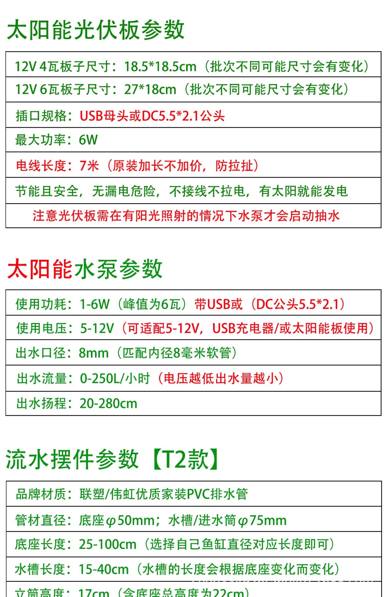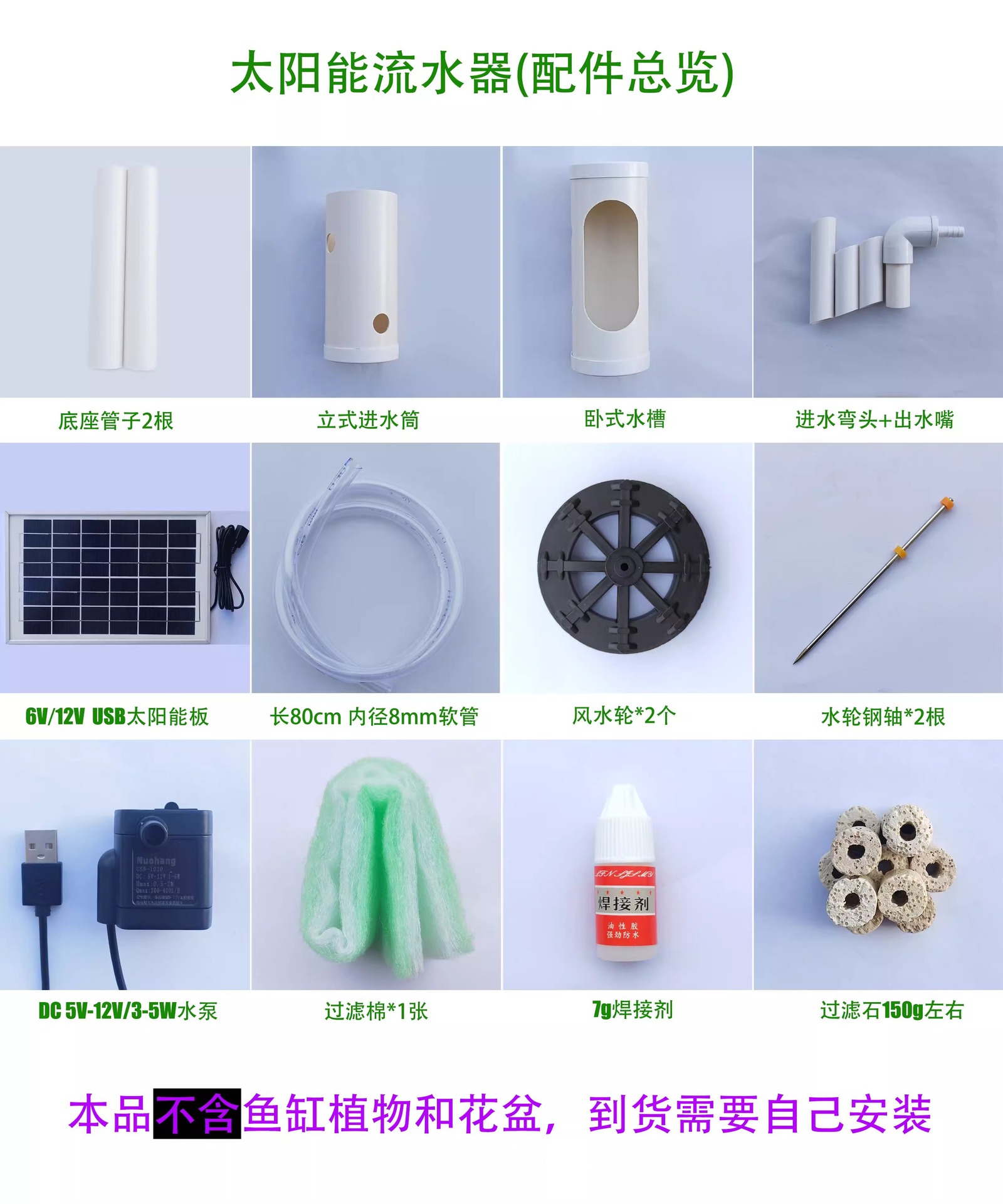• 12V 4와트 패널 + 3와트 USB 워터펌프 + 45cm 길이의 장식품