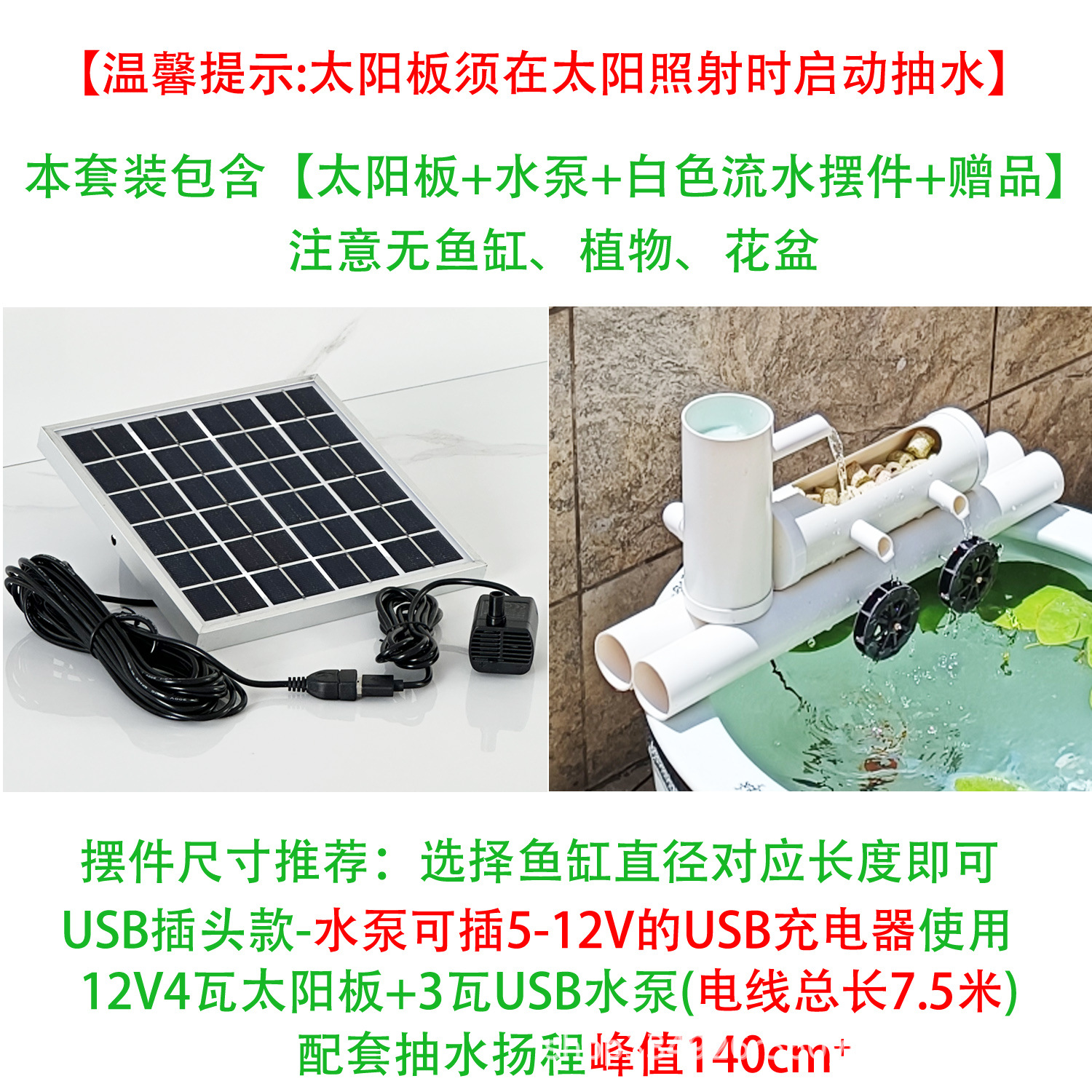 • 12V 4와트 패널 + 3와트 USB 워터펌프 + 25cm 길이의 장식품
