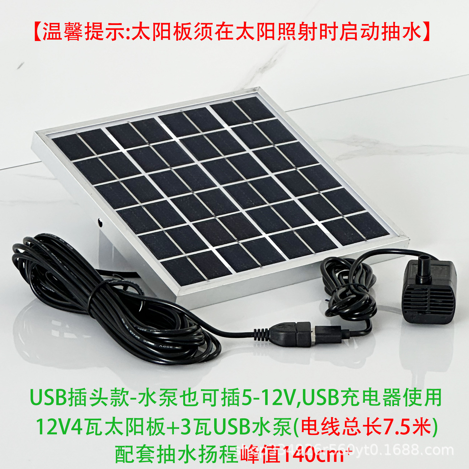 • 12V 4와트 보드 + 3와트 USB 워터 펌프 [리프트 1.4m / 라인 길이 7.5m ]