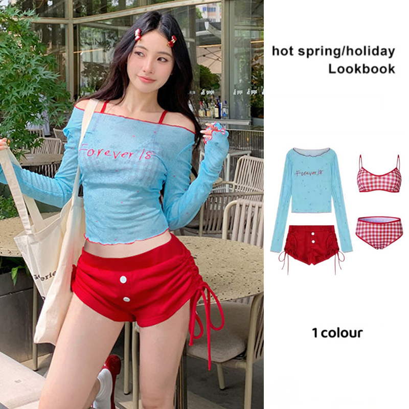 수영복 여성 스플릿 4 피스 세트 보수적 슬림 룩 소녀의 작은 가슴 모임 한국식 Ins 온천 하이 엔드 수영복스토어 가기