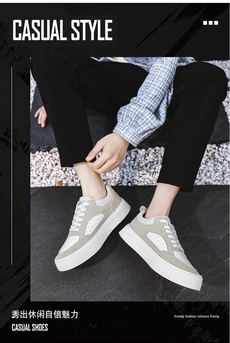 한국 남자 신발 2025 봄 새로운 하이 엔드 올 매치 화이트 신발 통기성 경량 트렌디 두꺼운 밑창 캐주얼 스니커즈