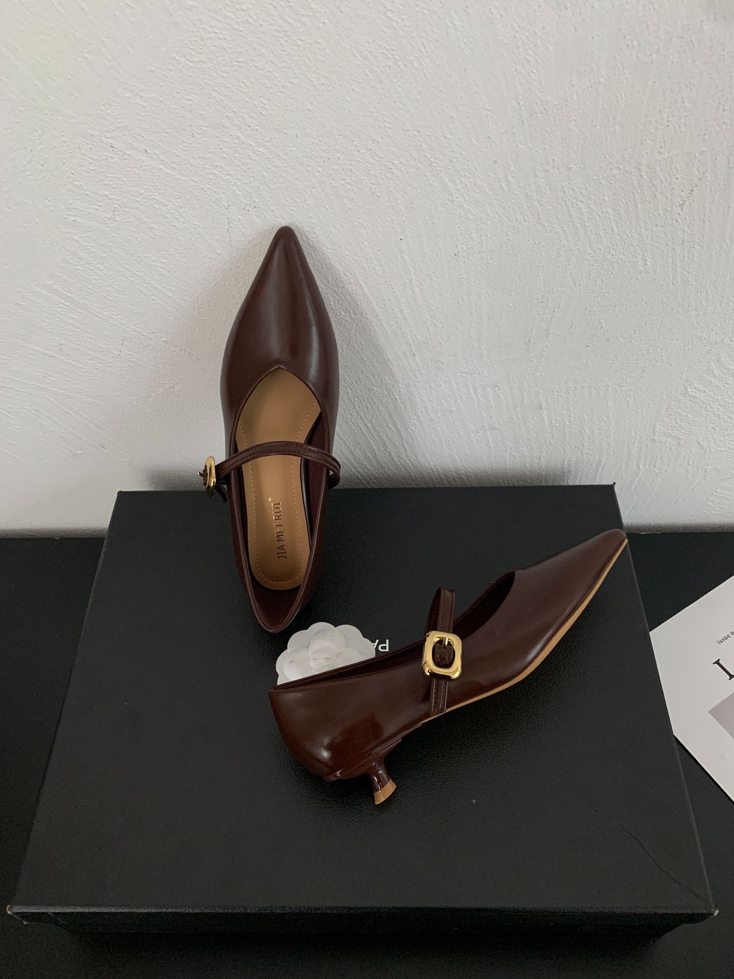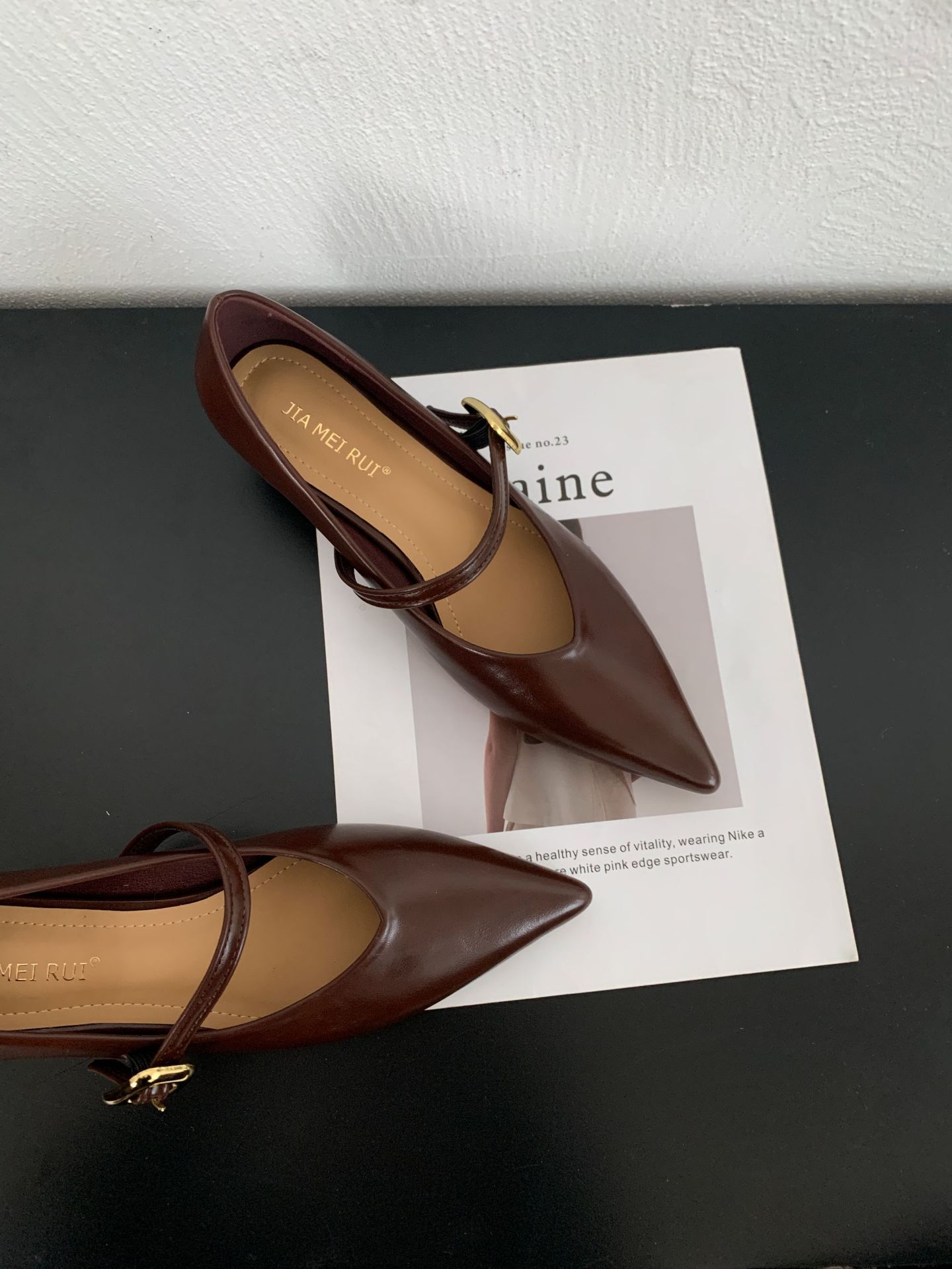 기질 포인팅 심야 싱글 신발 여성 신발 2025 봄 새로운 레드 웨딩 신발 작은 하이힐 통근 작업 신발스토어 가기