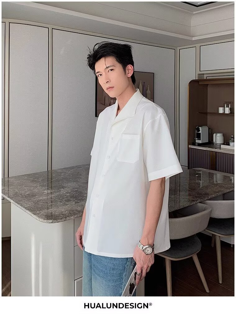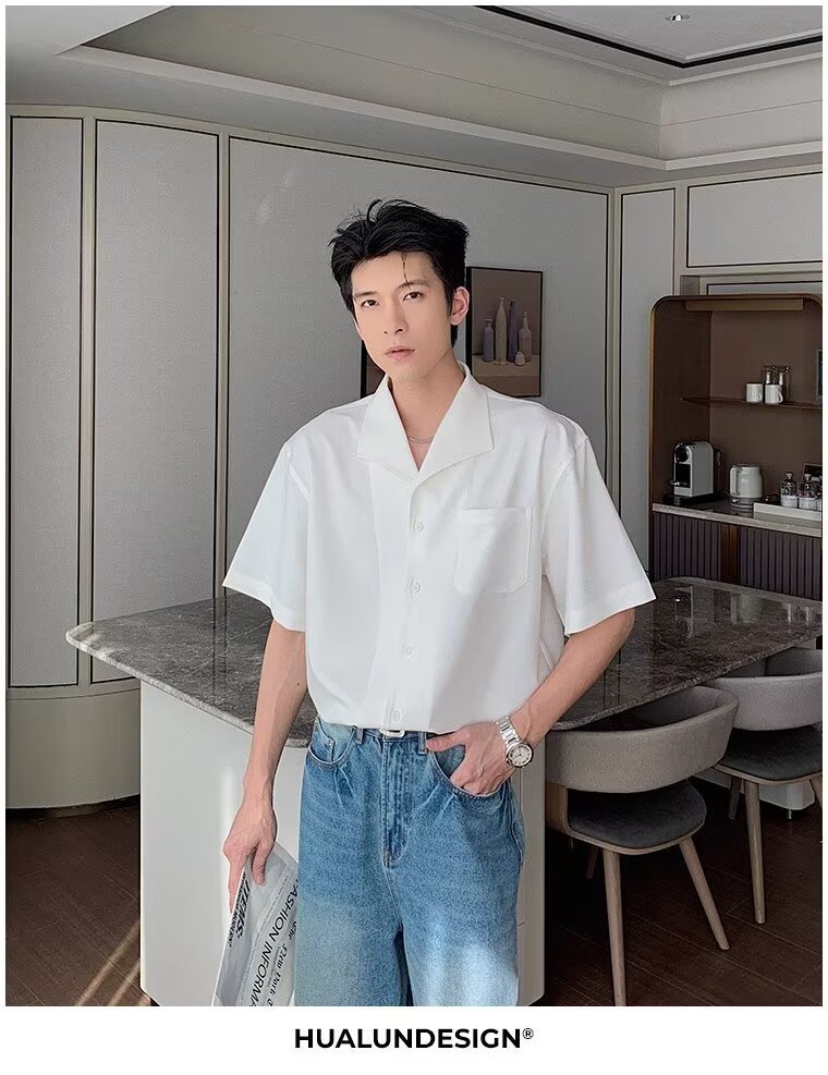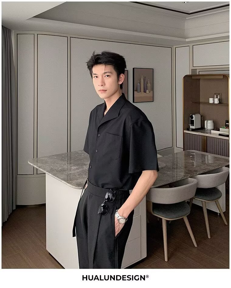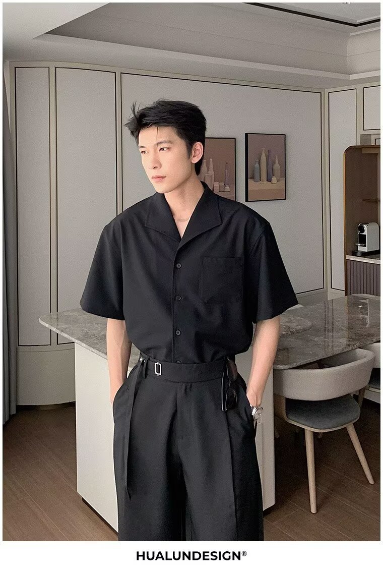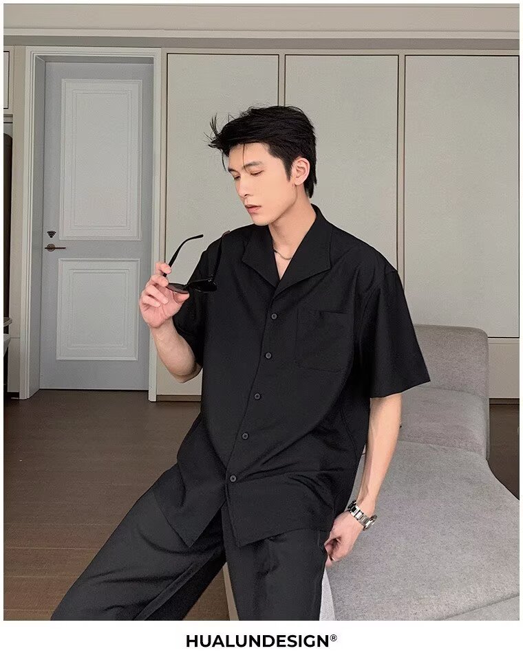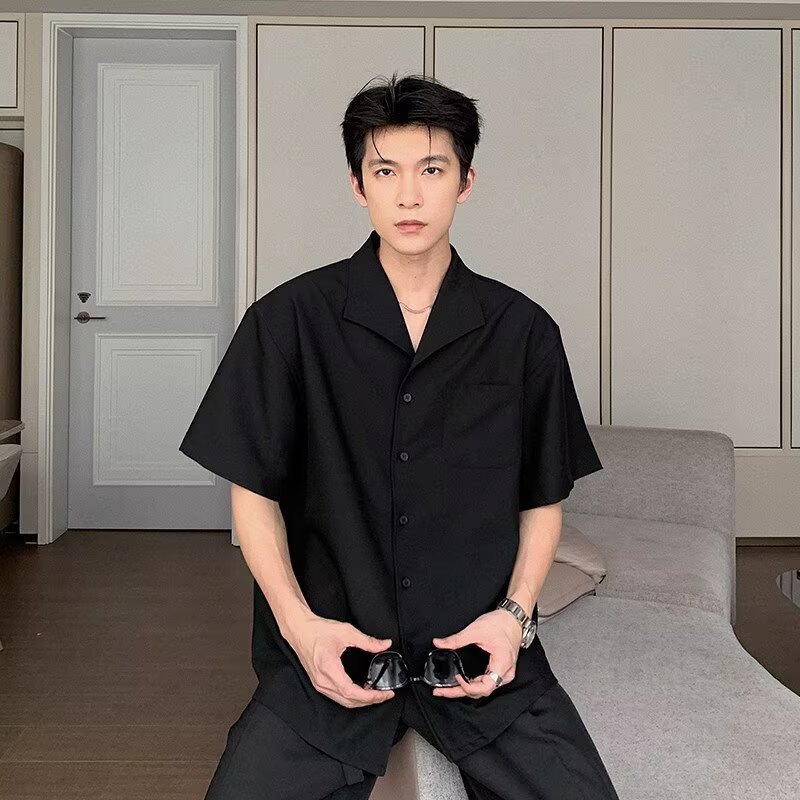 2025 봄과 여름 소년을위한 새로운 중국 스타일 셔츠 남성용 하이 엔드 반팔 더피 핸섬 블랙 패셔블 루즈 셔츠스토어 가기