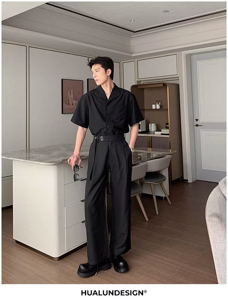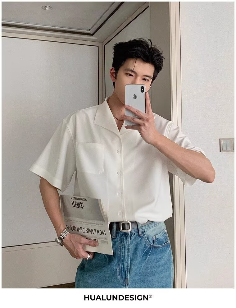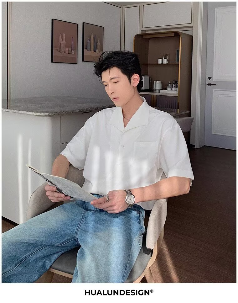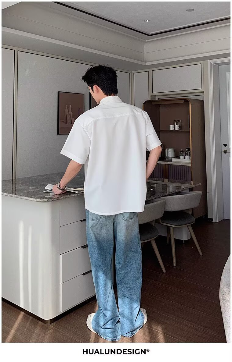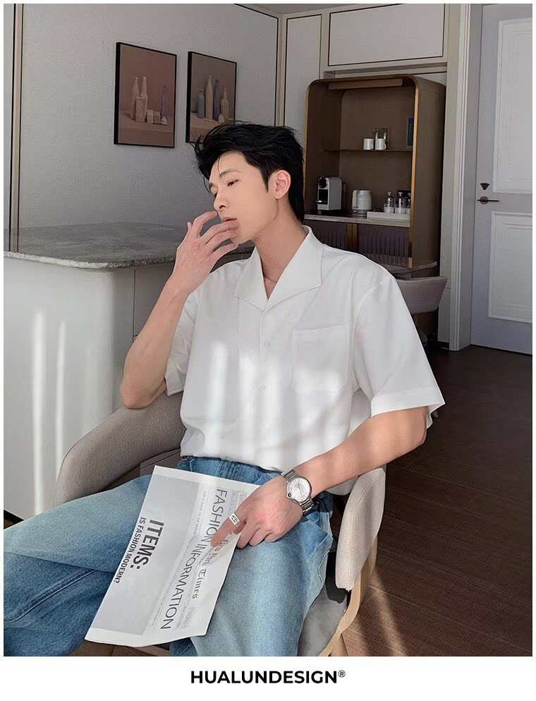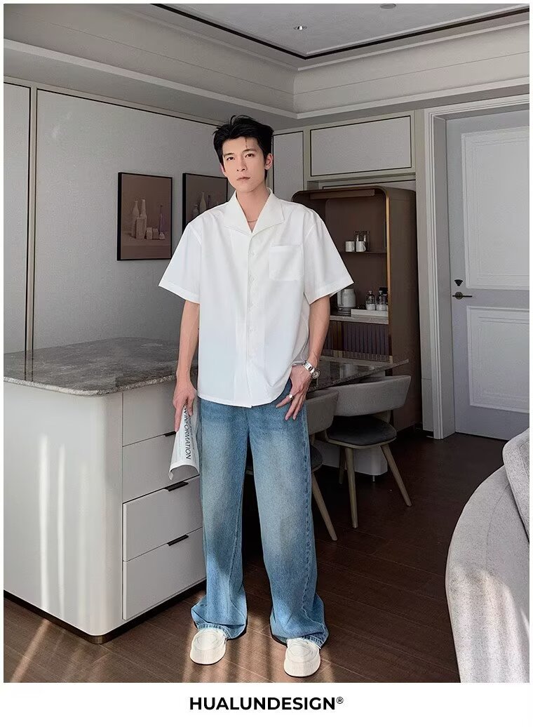2025 봄과 여름 소년을위한 새로운 중국 스타일 셔츠 남성용 하이 엔드 반팔 더피 핸섬 블랙 패셔블 루즈 셔츠스토어 가기