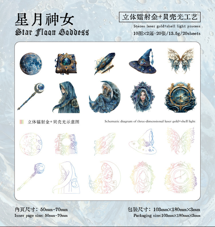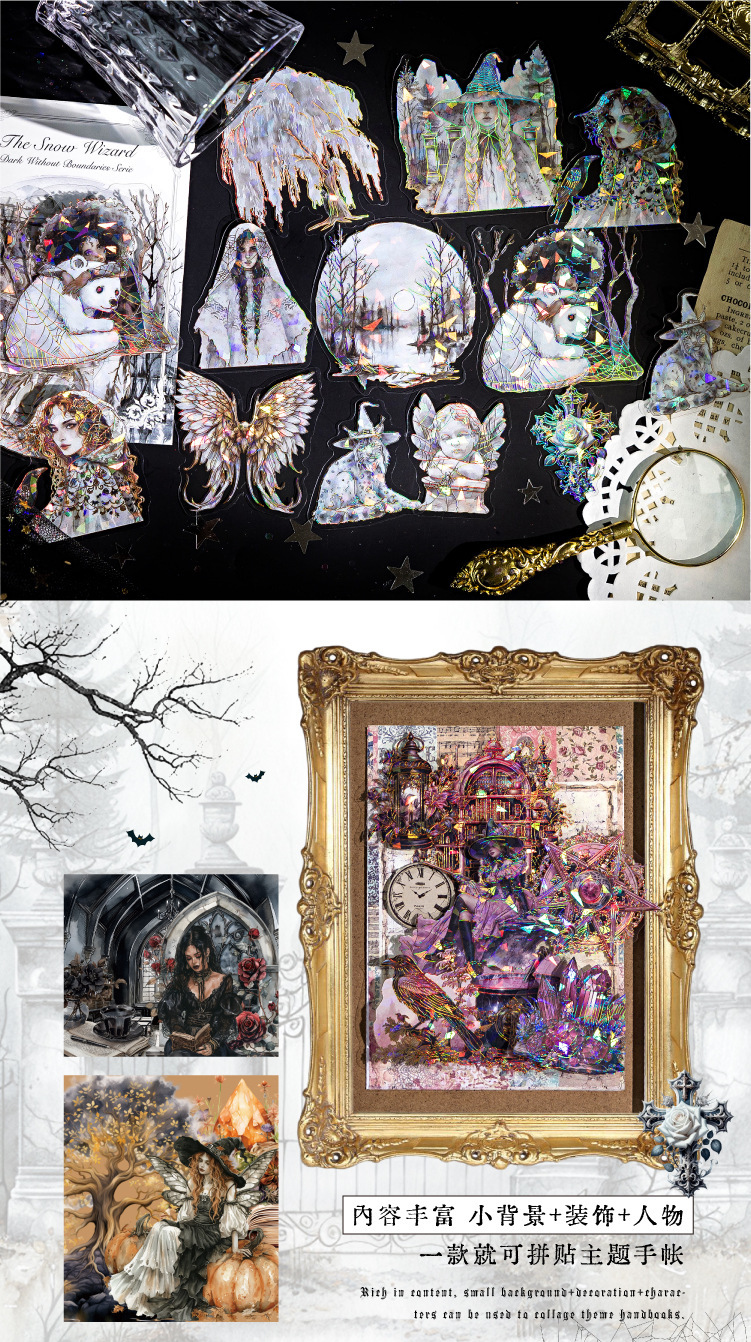 모 잉크 PET 스티커 가방 무제한 다크 시리즈 쉘 라이트 레이저 골드 복고풍 손 계정 DIY 장식 재료 스티커