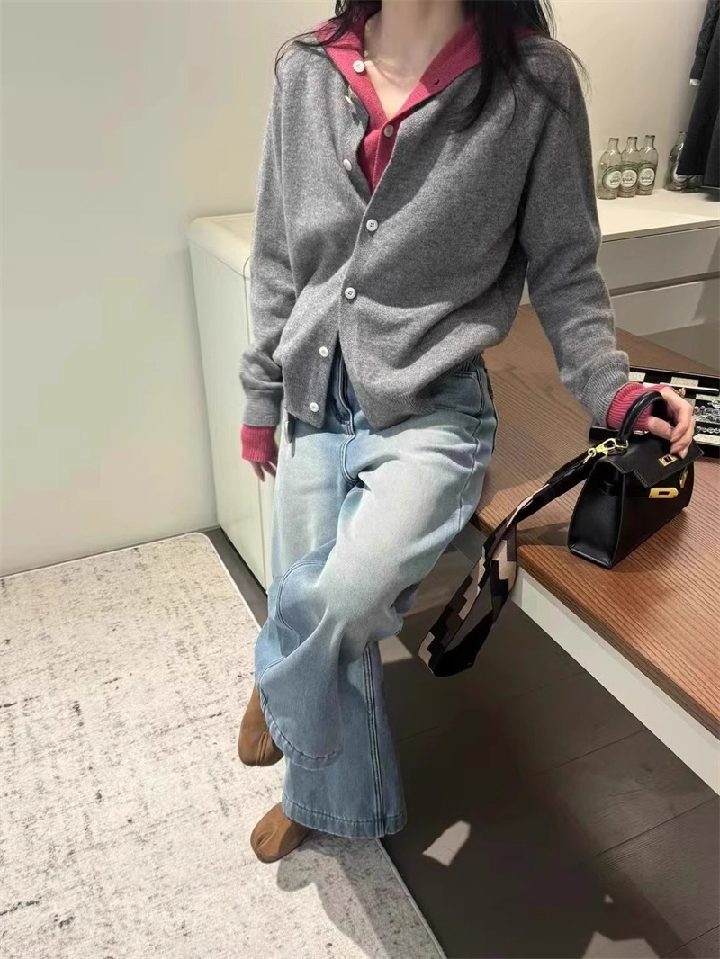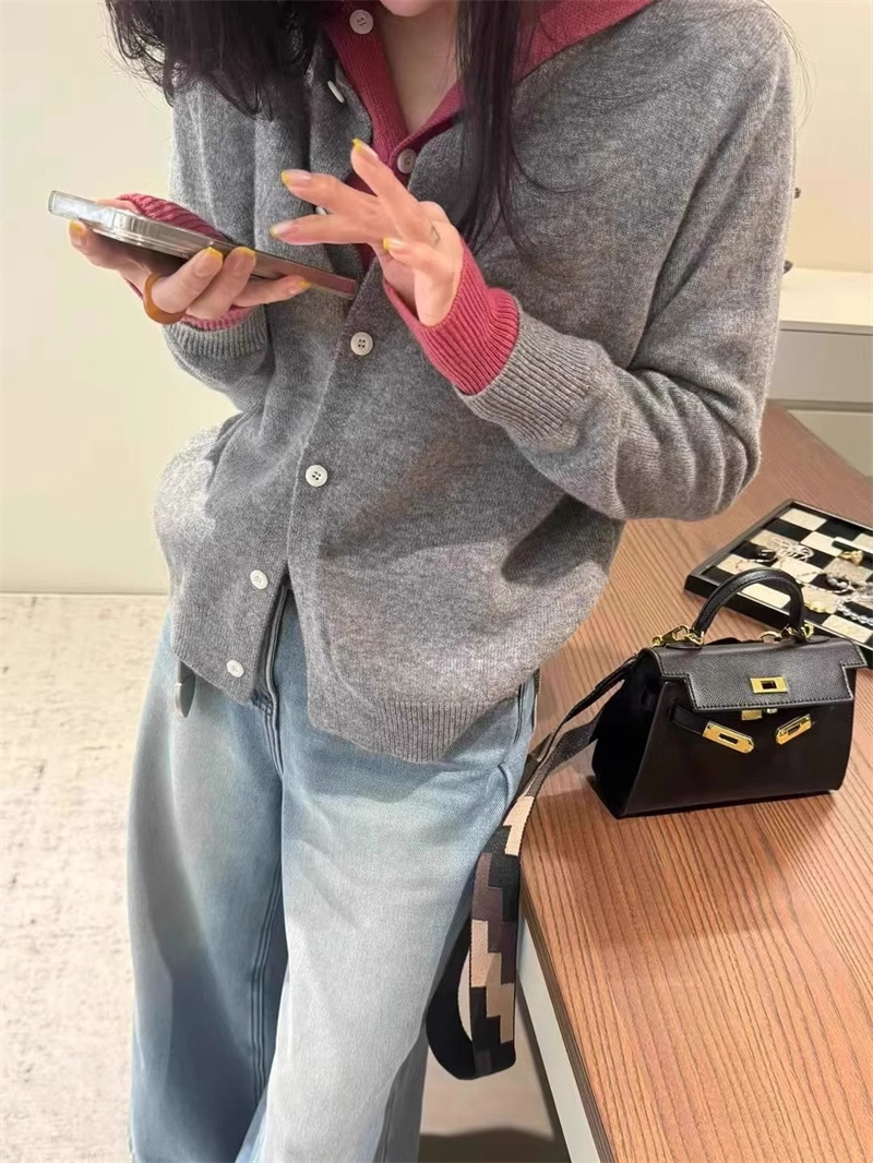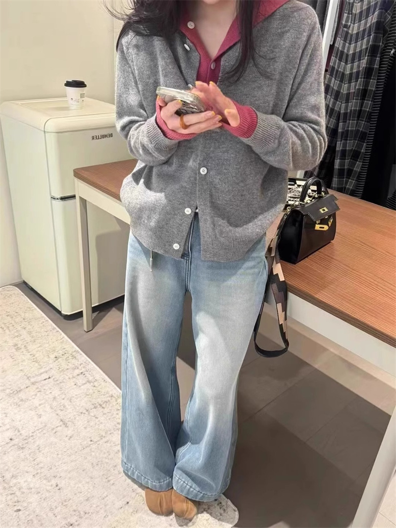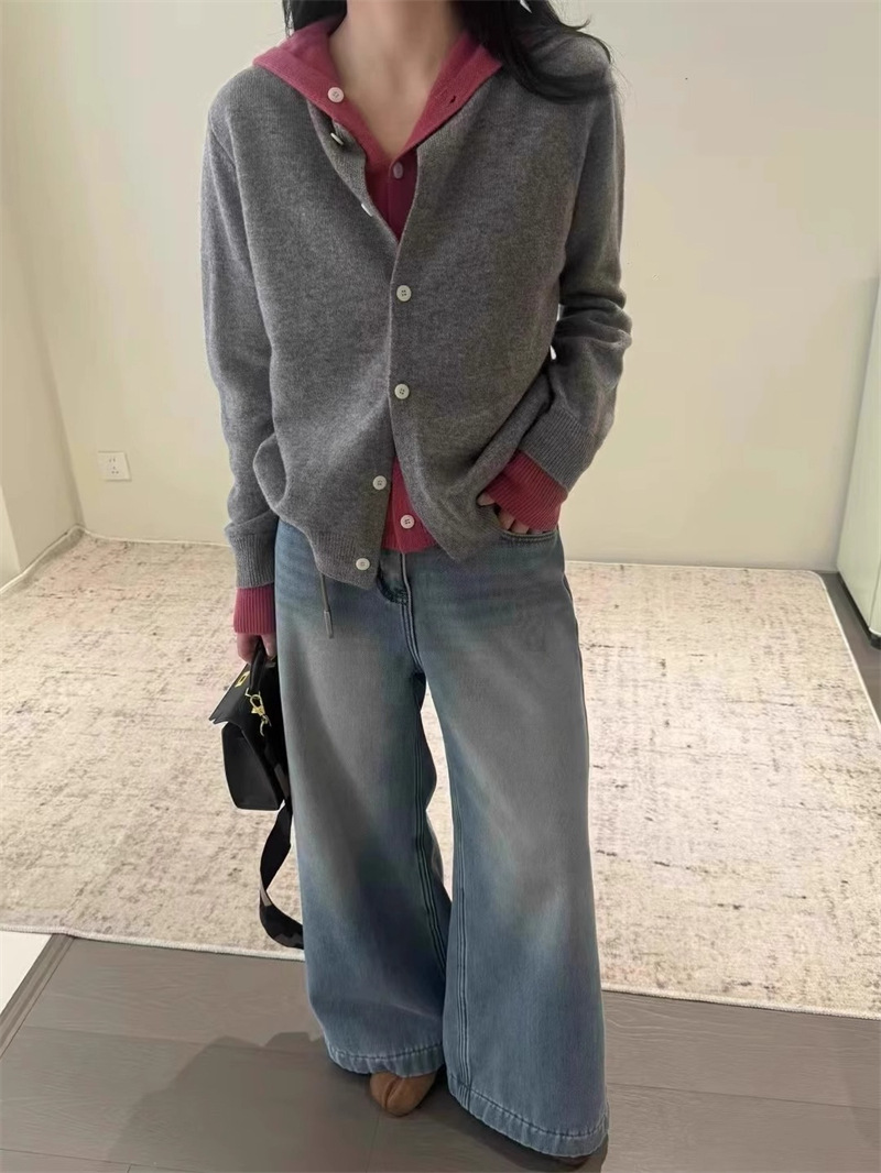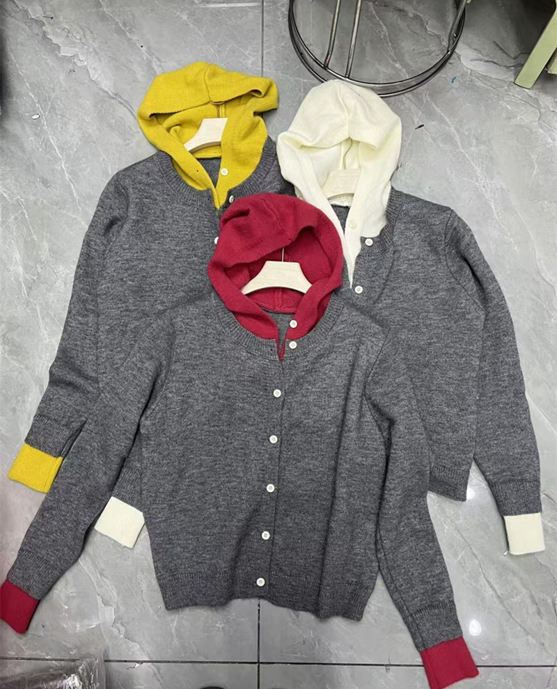 한국 스타일 가짜 투피스 컬러 매칭 후드 니트 카디건 여자 2025 봄 뉴 루즈 캐주얼 올 매치 스웨터 재킷스토어 가기