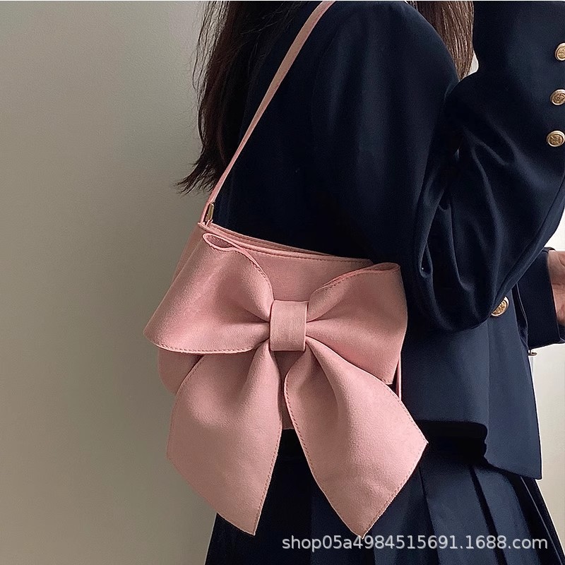 큰 활 어깨 휴대용 여성용 가방 달콤한 쿨 스파이스 언더암 가방 새로운 2023 인기있는 틈새 새로운 여성 헤어스토어 가기