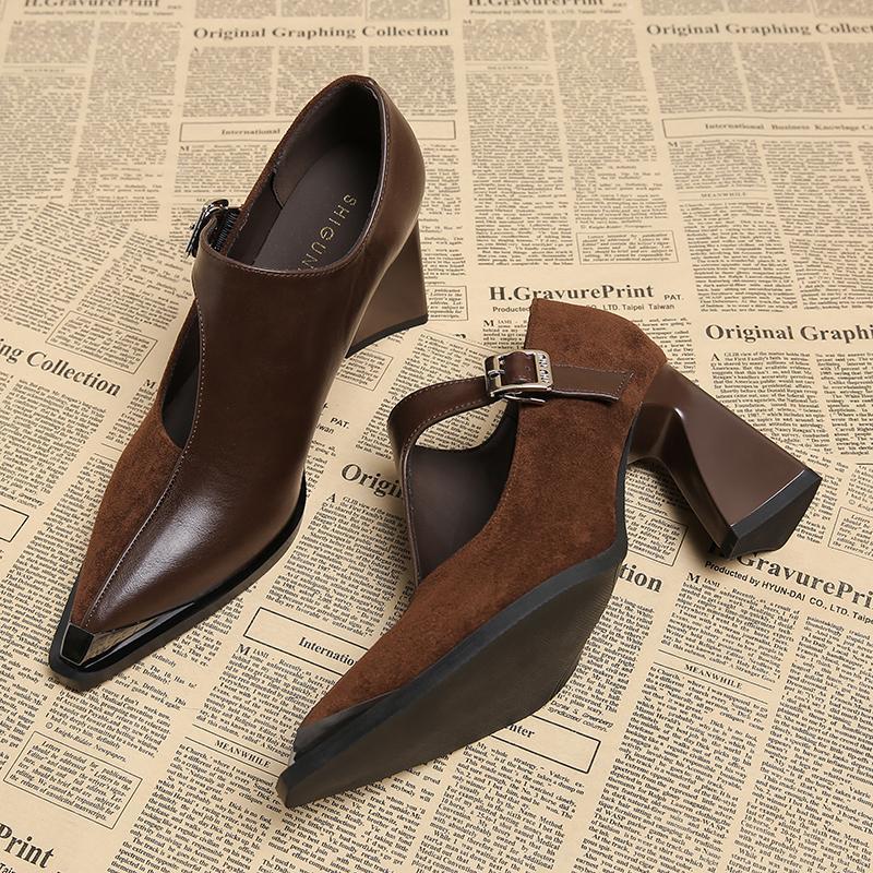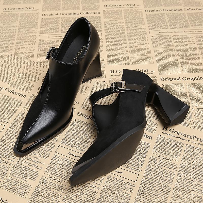 55425-1 뾰족한 발가락 싱글 신발 여성의 봄 메리 제인 작은 가죽 신발 빈티지 여성 신발 하이힐 Huidong Daling 신발스토어 가기