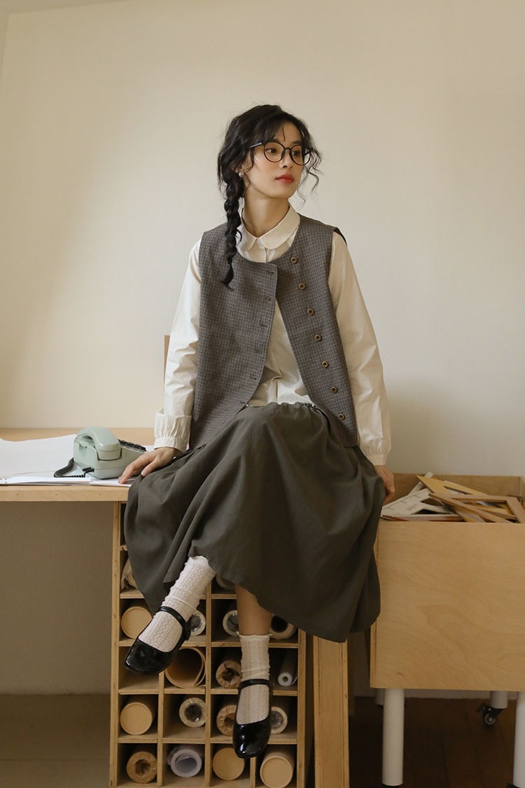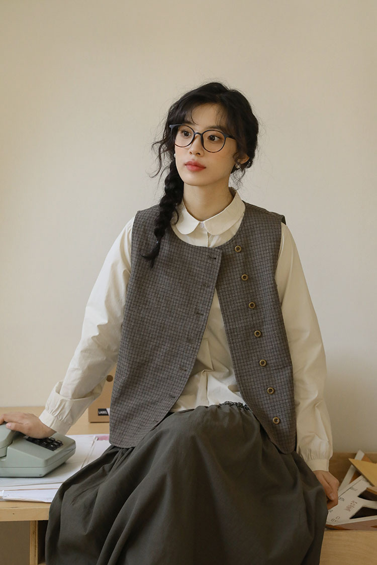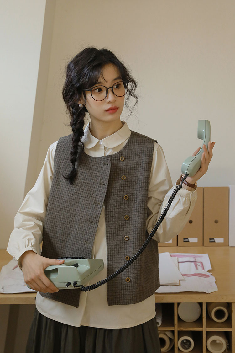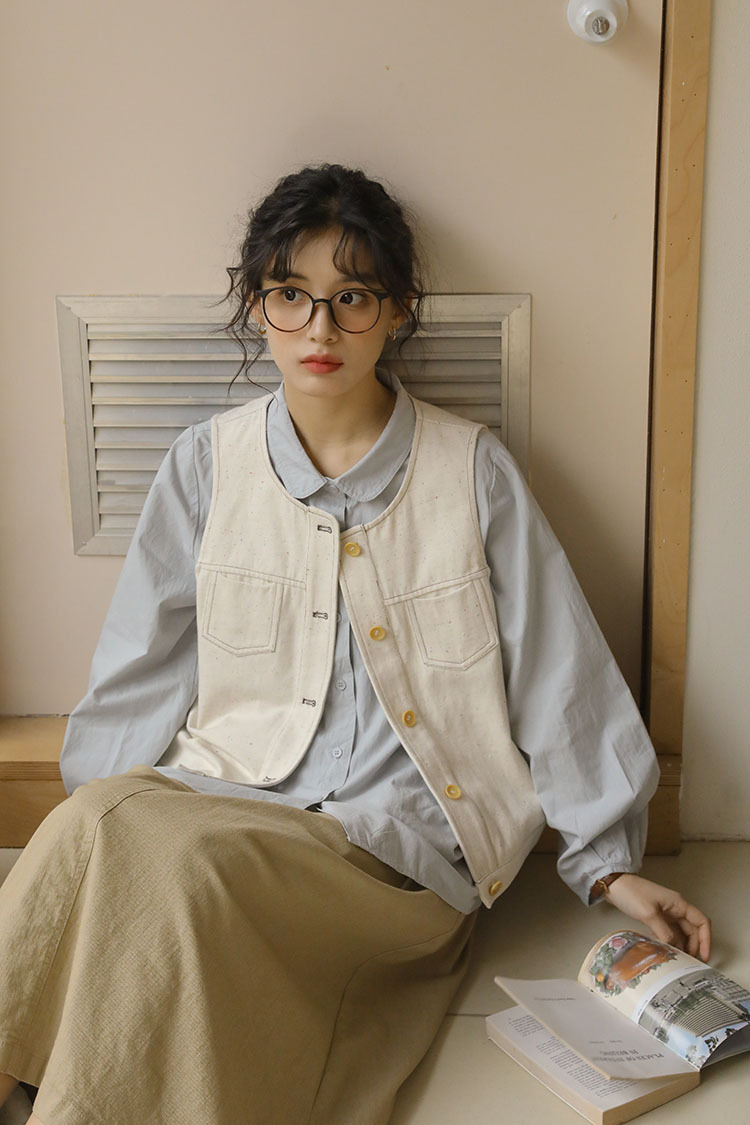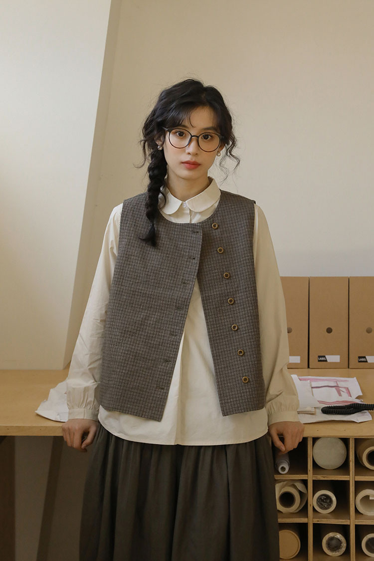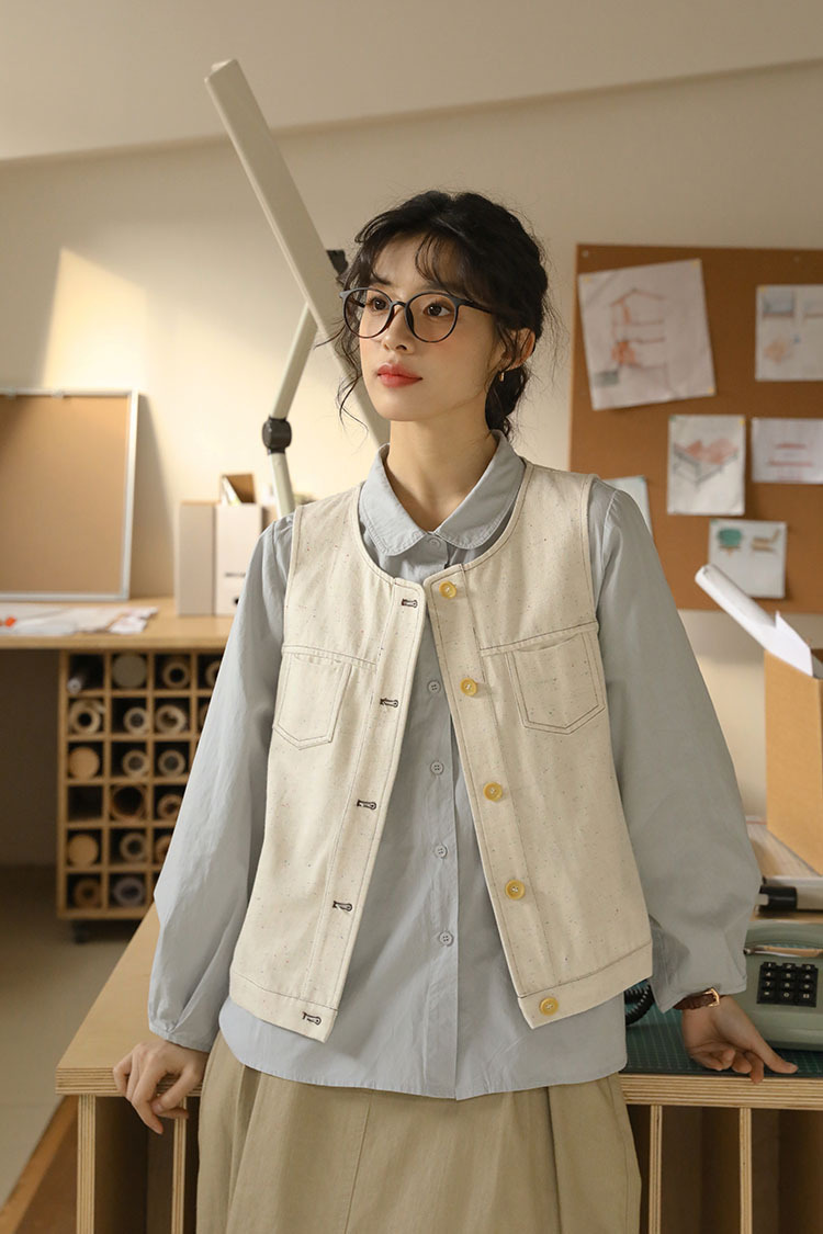 2025 봄과 여름 새로운 예술적 레트로 일본 스타일 간단한 디자인 센스 작은 라셀 스타킹 셔츠 탑스토어 가기