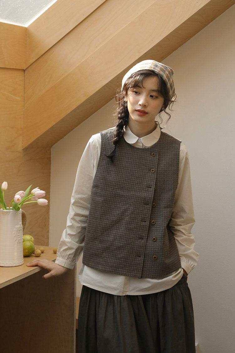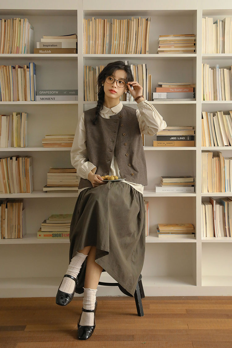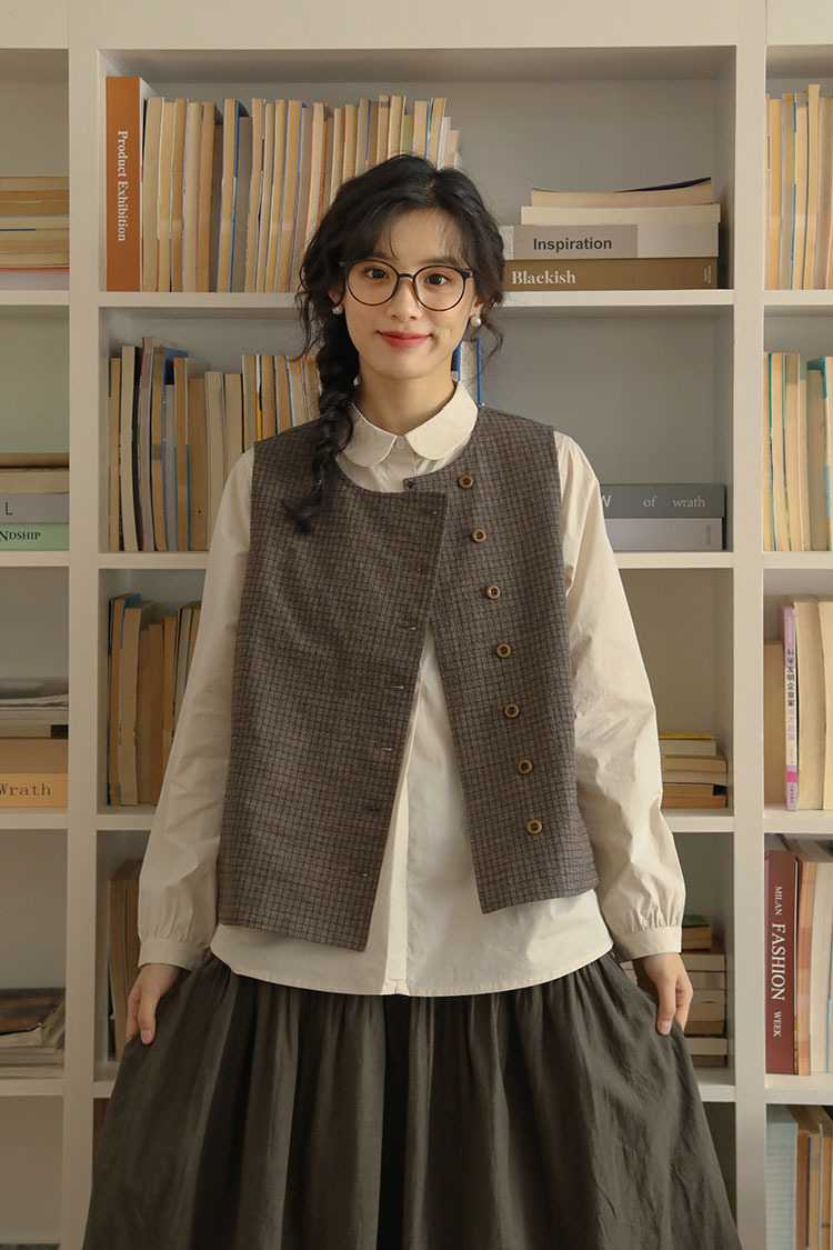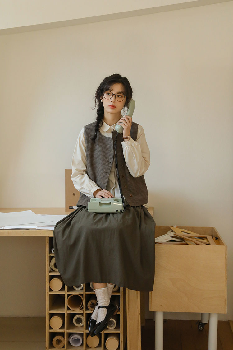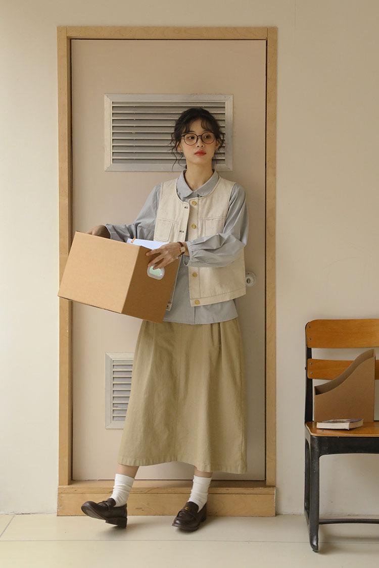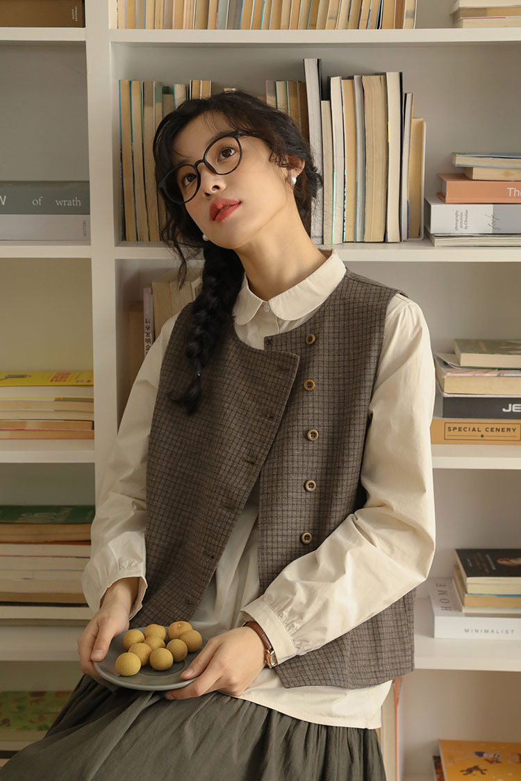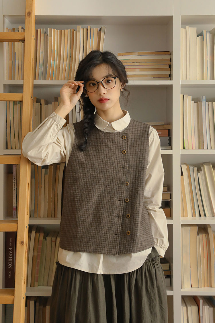 2025 봄과 여름 새로운 예술적 레트로 일본 스타일 간단한 디자인 센스 작은 라셀 스타킹 셔츠 탑스토어 가기