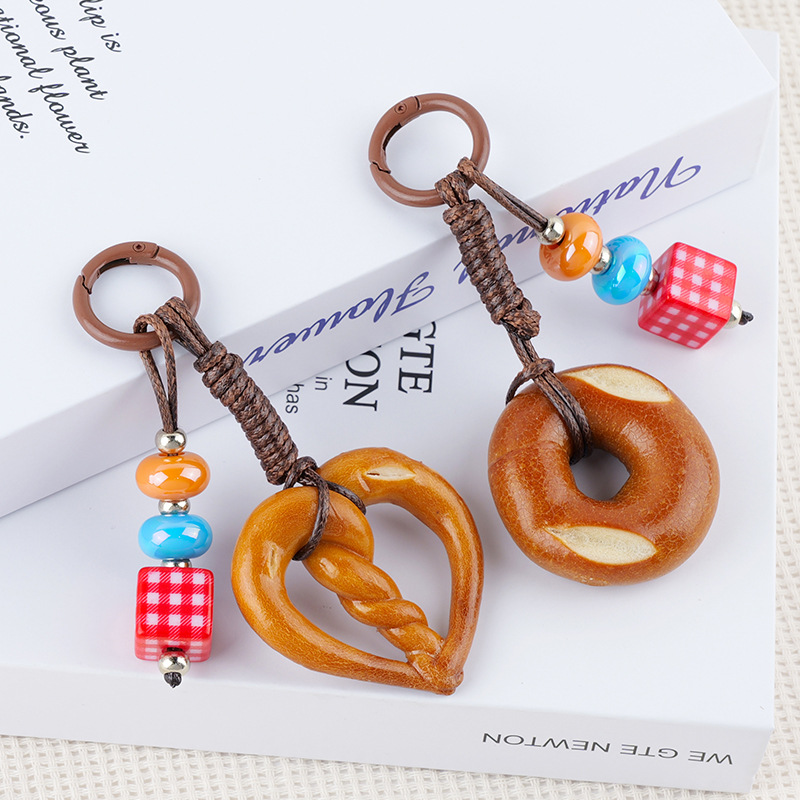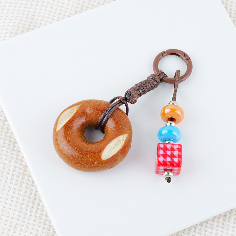 창의적인 시뮬레이션 음식 모양 키 체인 하트 모양의 부리 토 베이글 컬러 구슬 스퀘어 슈퍼 귀여운 펜던트 패션 올 매치