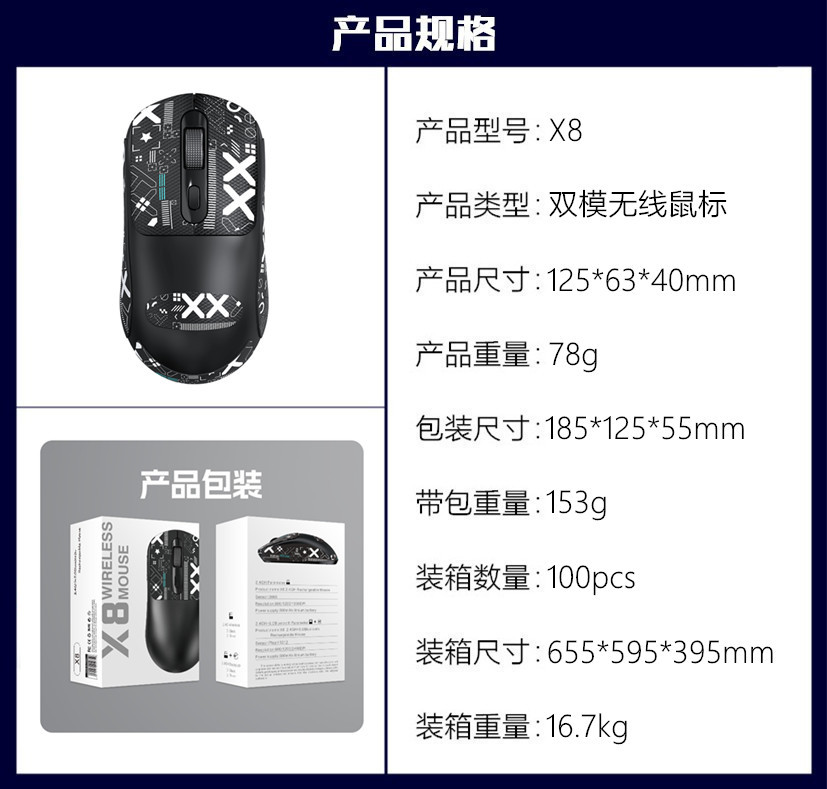 새로운 T-WOLF Thunder Wolf X8 듀얼 모드 무선 마우스, 미끄럼 방지 스티커가 있는 블루투스 마우스 e-스포츠 게임
