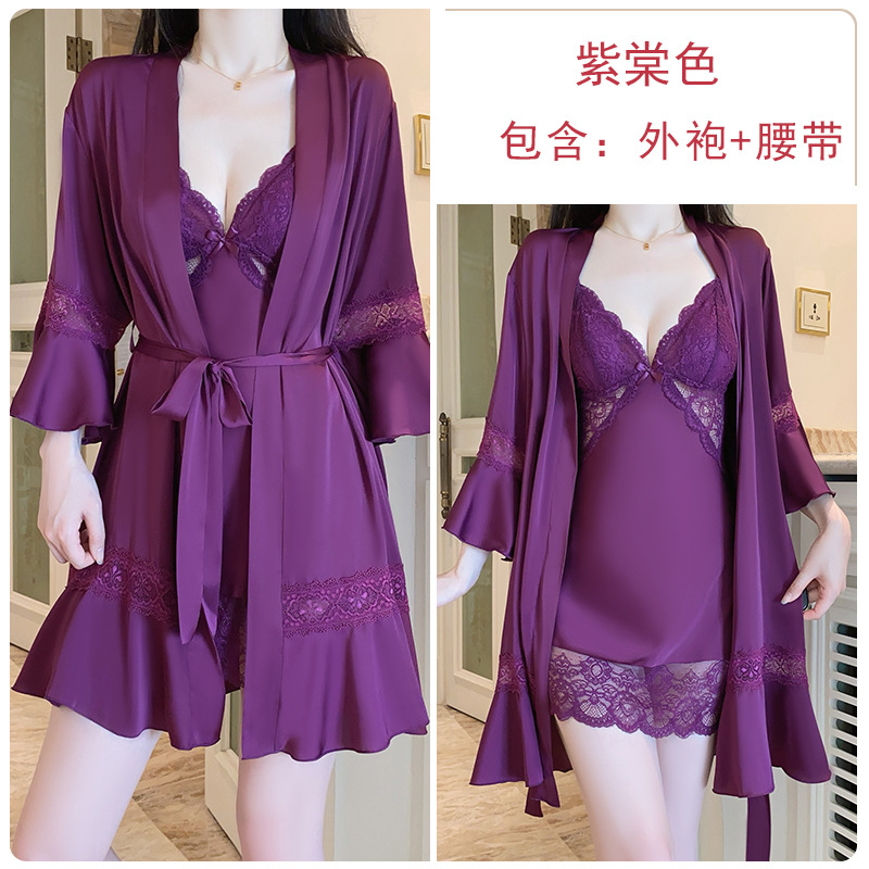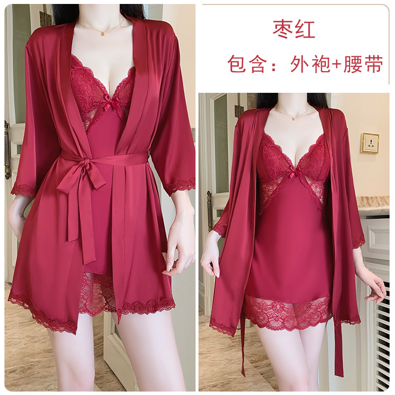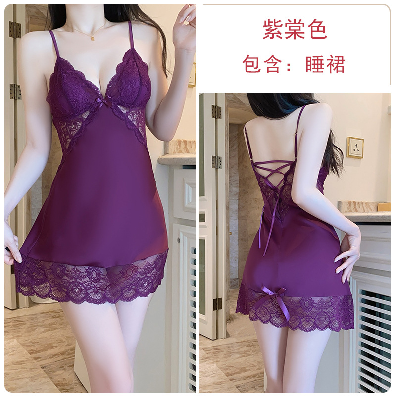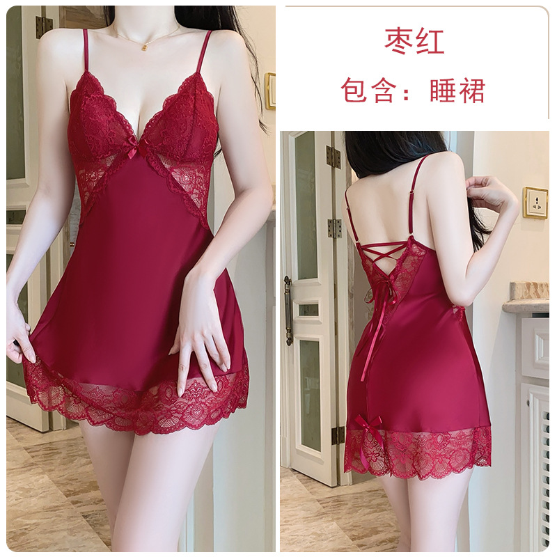 DZ Guiruo 달콤하고 부드러운 새틴 속옷 딥 V 가죽 플러스 가슴 패드 섹시한 잠옷 홈 세트 5054스토어 가기