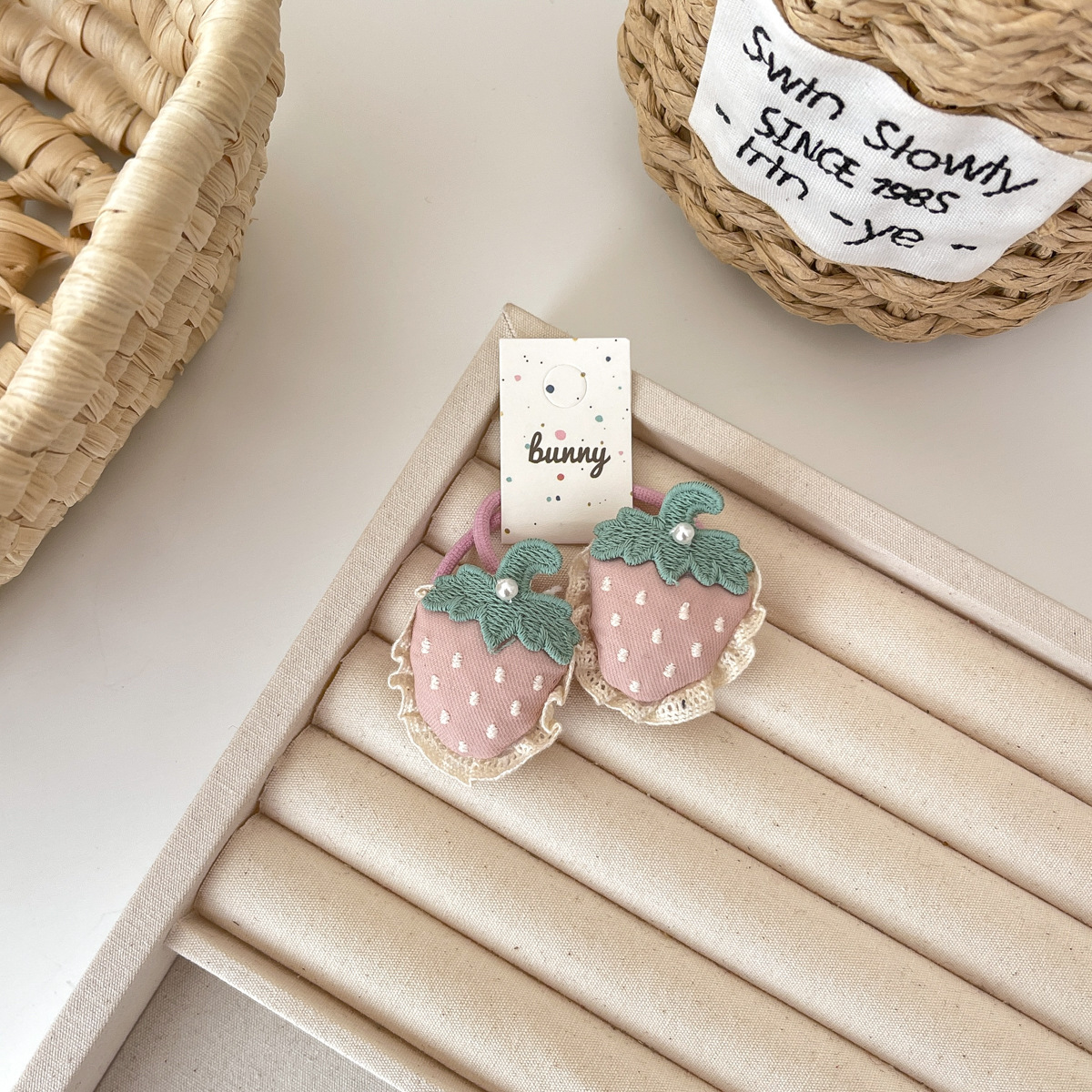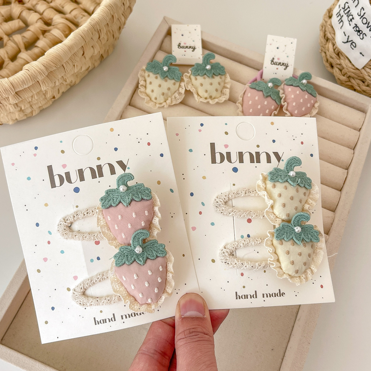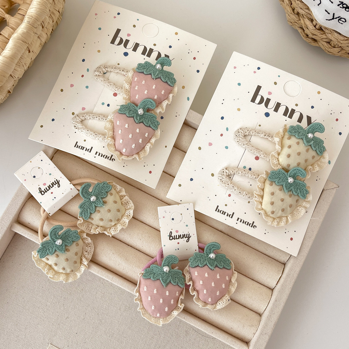 2025 봄 새로운 레이스 딸기 어린이 헤어핀 귀여운 소녀 과일 헤드웨어 헤어 액세서리 헤어 밴드 고무 밴드 여성용