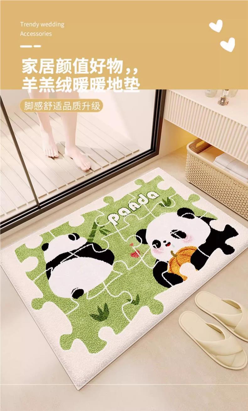 만화 팬더 바닥 매트 거실 소파 화장실 욕실 문 앞 카펫 미끄럼 방지 흡수성 침실 모조 캐시미어 발 매트스토어 가기