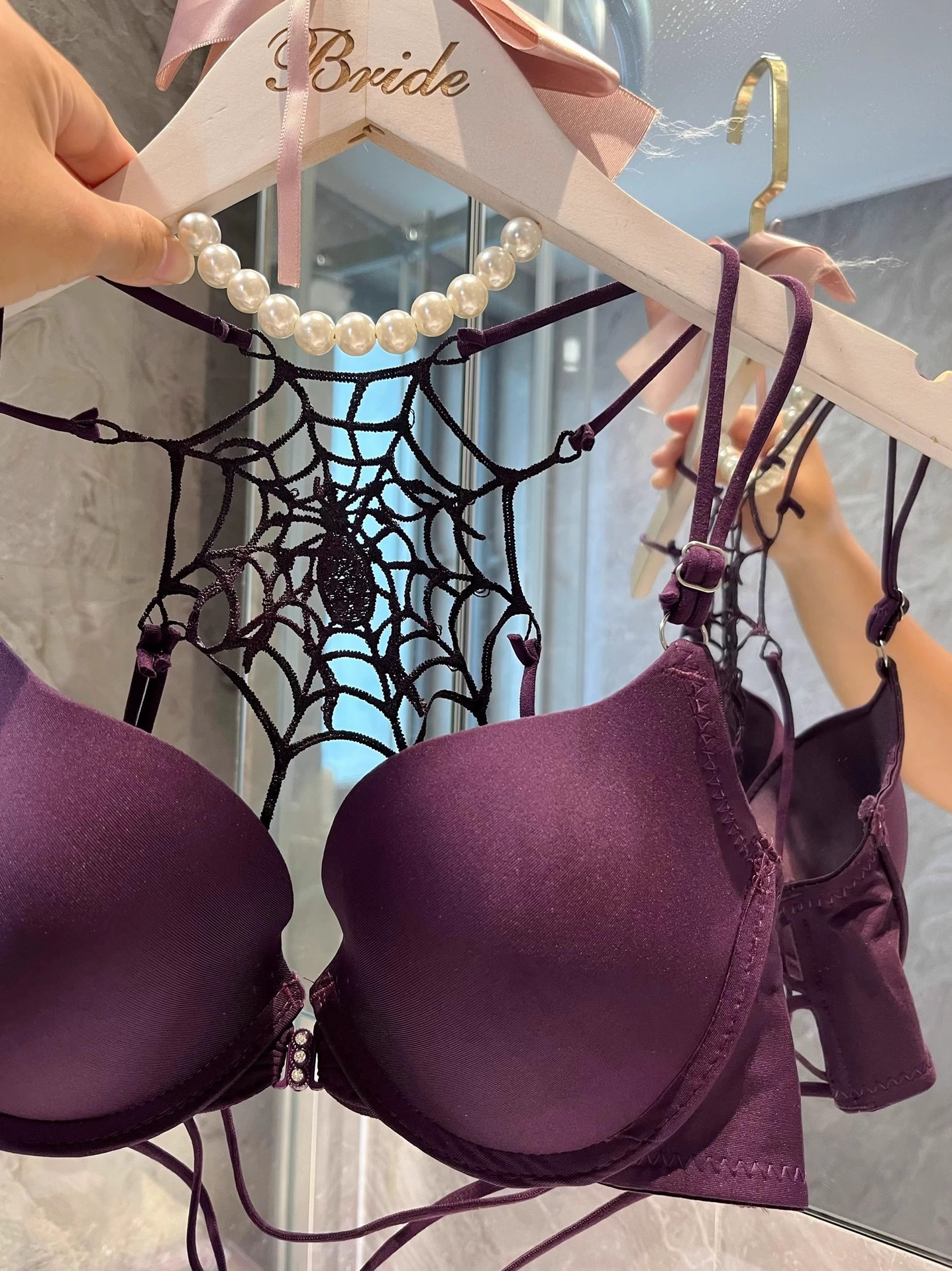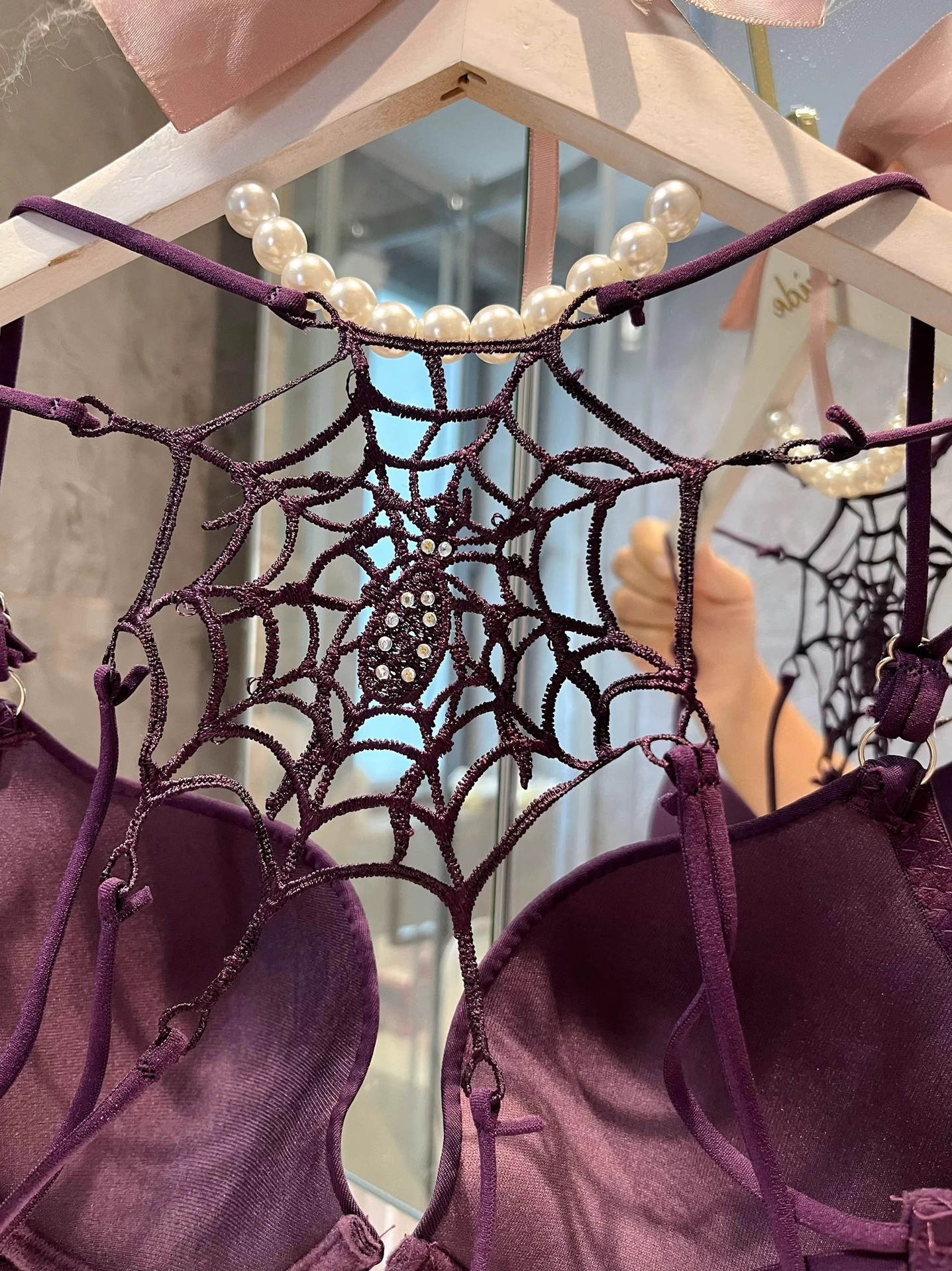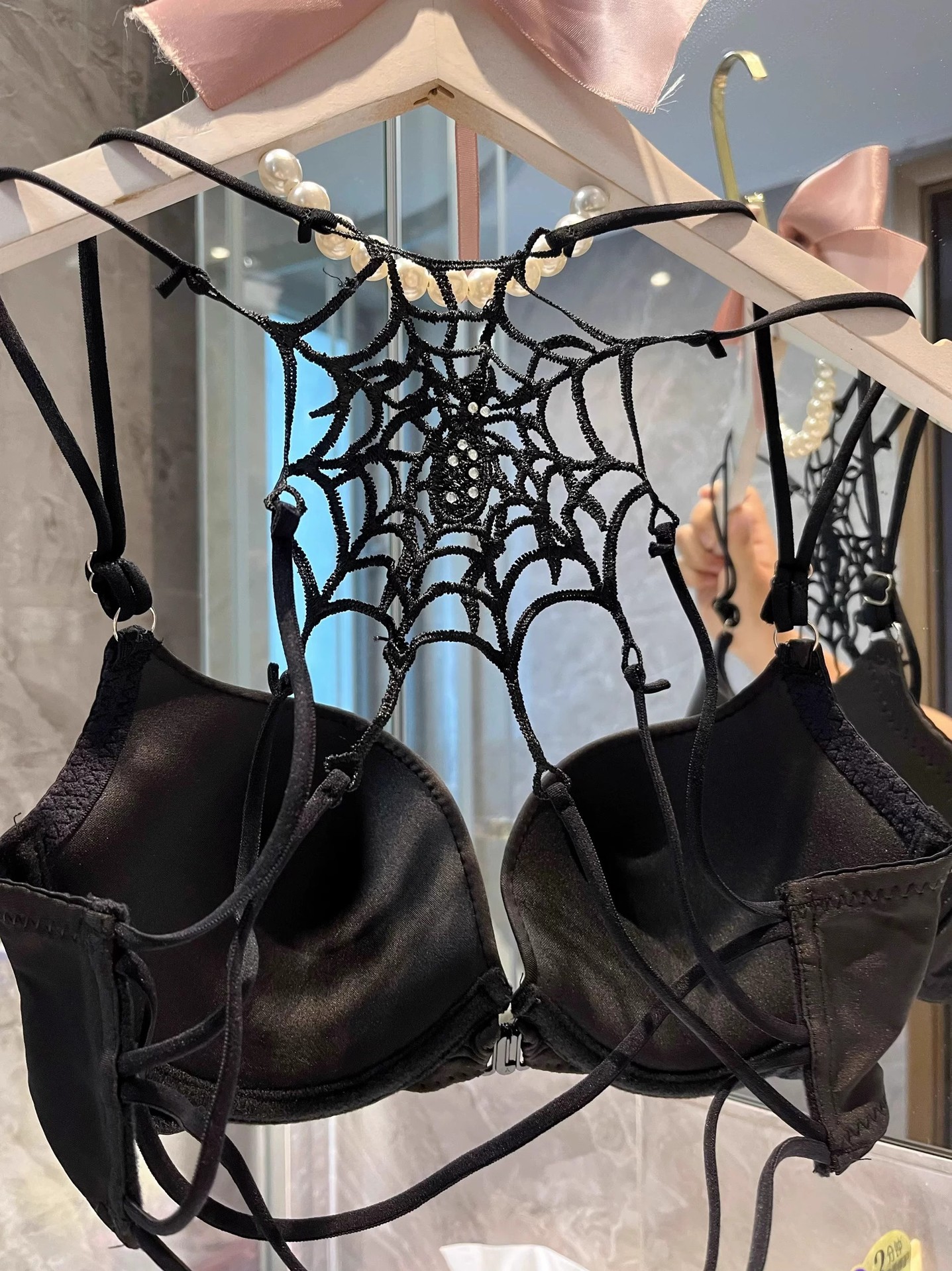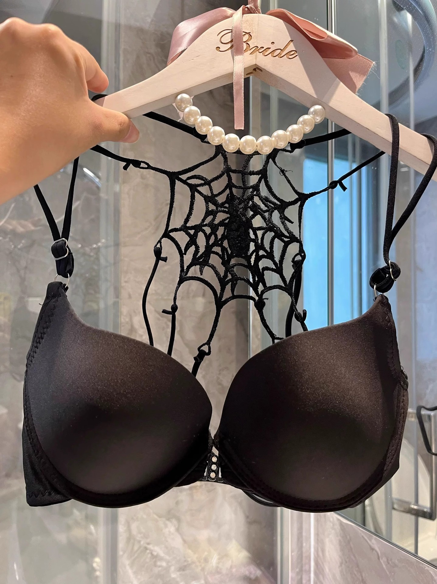 프론트 버클 아름다운 백 스파이더 웹 브라 교수형 넥 레이스 순수한 욕망 섹시한 속옷 여성의 얇은 벨트 크로스 모임 슬링 아우터 싱글