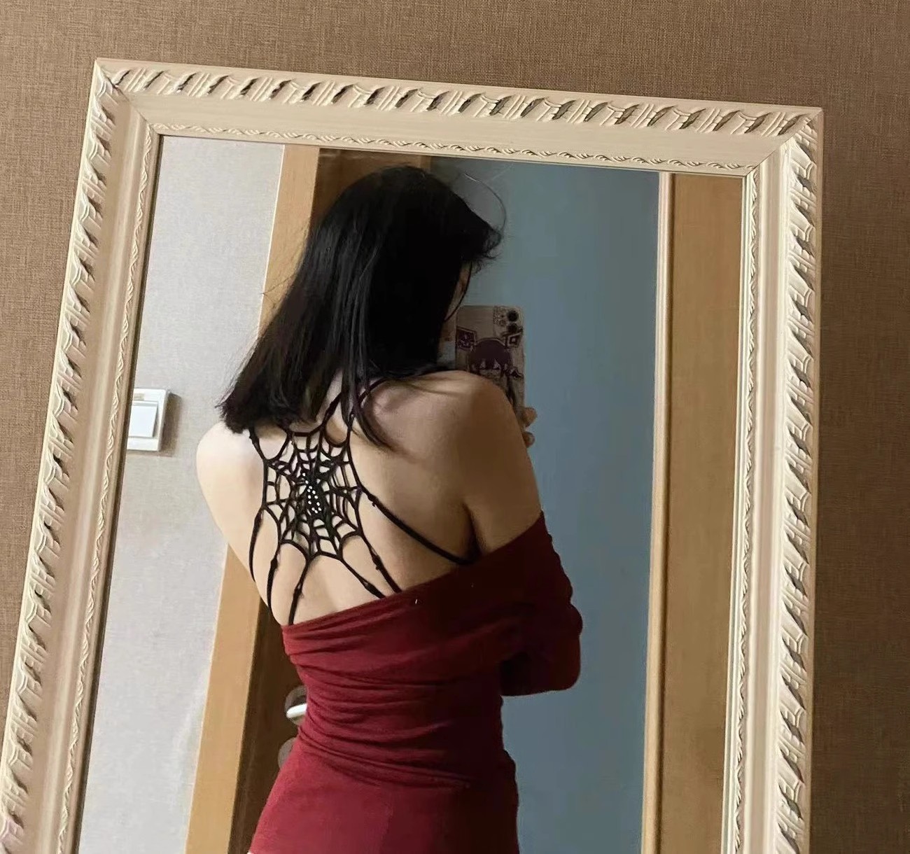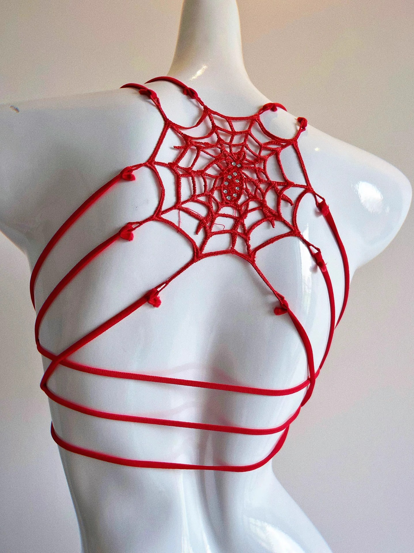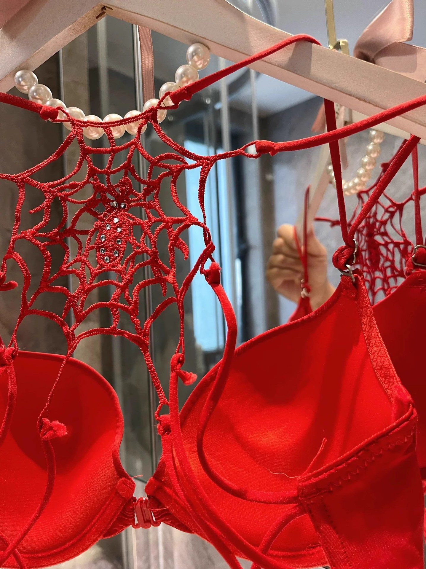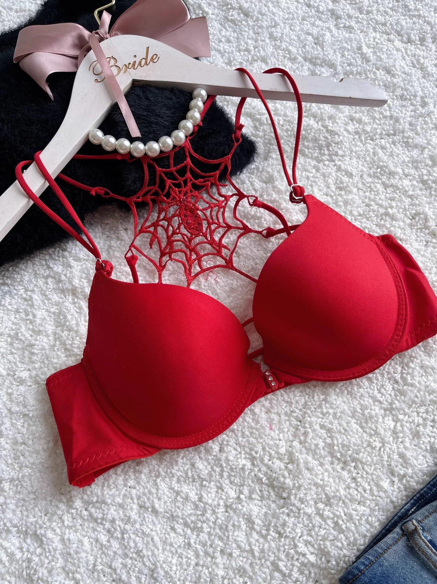 프론트 버클 아름다운 백 스파이더 웹 브라 교수형 넥 레이스 순수한 욕망 섹시한 속옷 여성의 얇은 벨트 크로스 모임 슬링 아우터 싱글